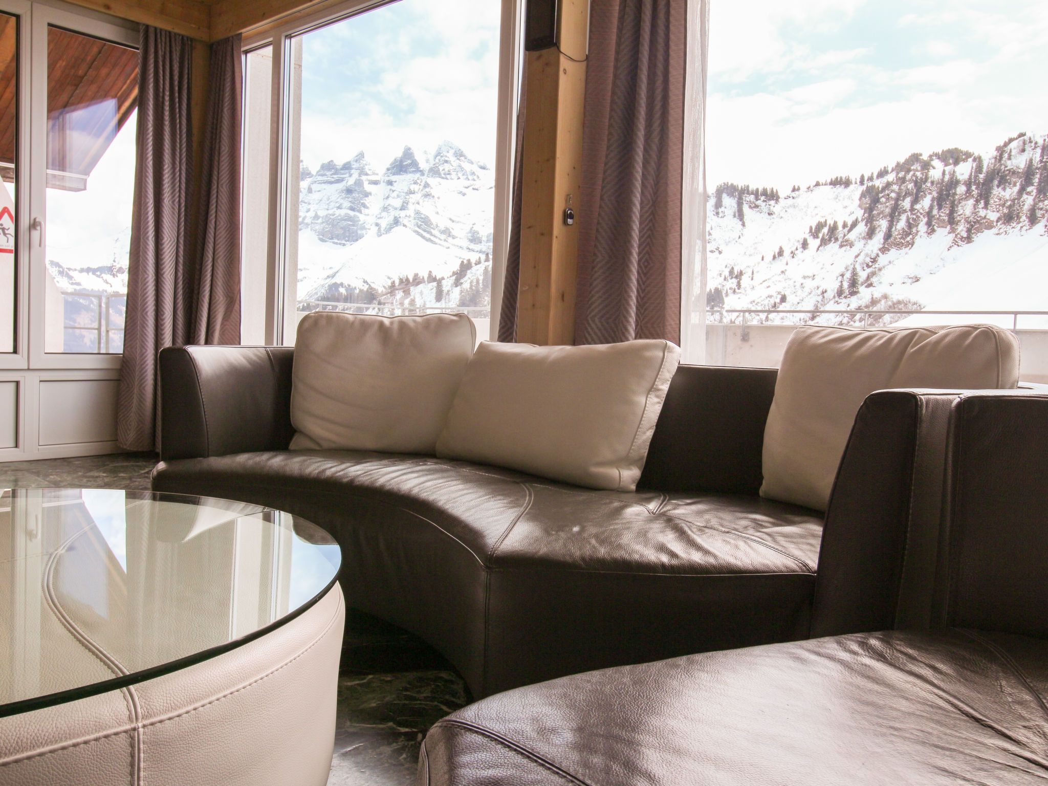 Les Cimes, 5-Zimmer-Wohnung 160 m2 auf 3 Stockwerken, im Erdgeschoss. Geschmackvoll und gemütlich eingerichtet: Wohn-/Esszimmer. 1 Zimmer mit 1 Bett und 1 x 2 Etagenbetten. Kleine Galerie, Deckenhöhe 135 cm mit 1 Bett (120 cm). 1 Zimmer mit 1 Doppelbett (160 cm). Grosse, offene Küche (Backofen, Geschirrspüler, 4 Glaskeramikplatten, 1 Induktionskochplatten, Mikrowelle, Tiefkühler, elektrische Kaffeemaschine, Racletteofen, Fondue Set (Käse)). Dusche/WC. Ölheizung. Unteres Geschoss: Bad, 2 Duschen, 2 sep. WC's, Sauna. Obergeschoss: 1 Zimmer mit 3 Betten. Galerie, Deckenhöhe 80 - 165 cm mit 2 Betten. 1 Zimmer mit 2 Betten. Galerie, Deckenhöhe 100 - 160 cm mit 1 franz. Bett. Dusche/WC. Kleiner Balkon, grosse Terrasse. Balkonmöbel. Herrliche Sicht auf die Berge, die Skipiste und die Landschaft. Zur Verfügung: Internet (Wireless LAN, gratis). Bitte beachten: Nichtraucher-Unterkunft. Eigener Eingang, Feuerlöscher. Anstelle eines abgeschlossenen Schlafzimmers befinden sich manche Schlafplätze in einem offenen Bereich (Galerie, Nische etc.).