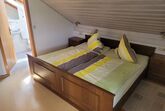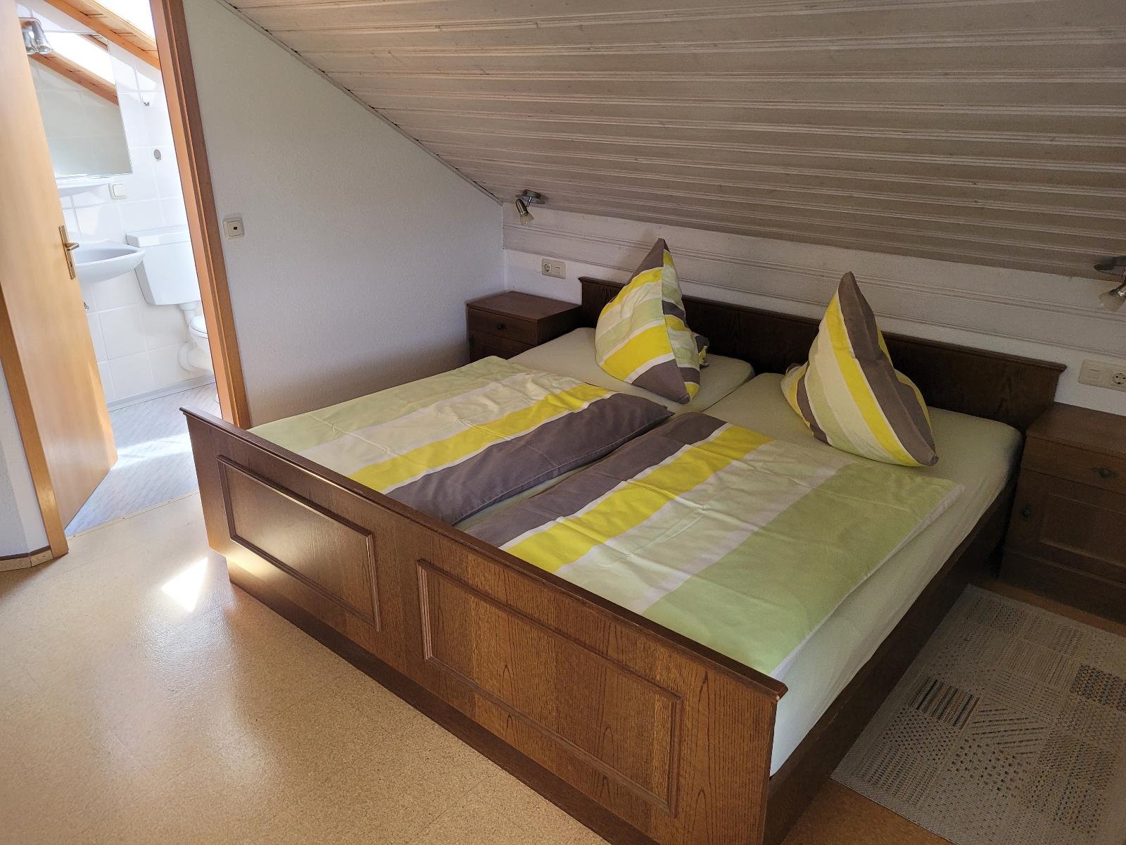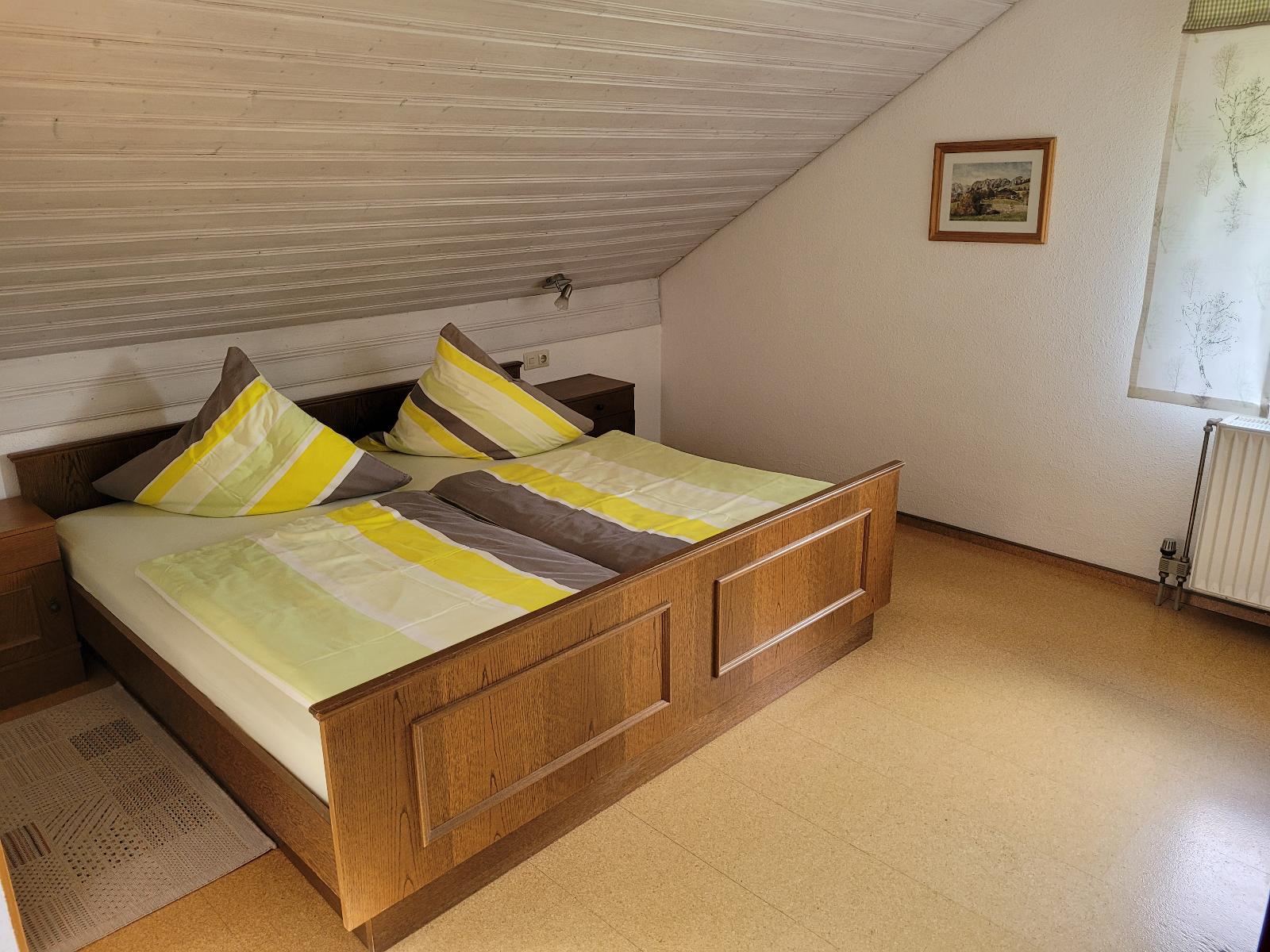 Das Doppelbett sorgt für einen erholsamen Schlaf.