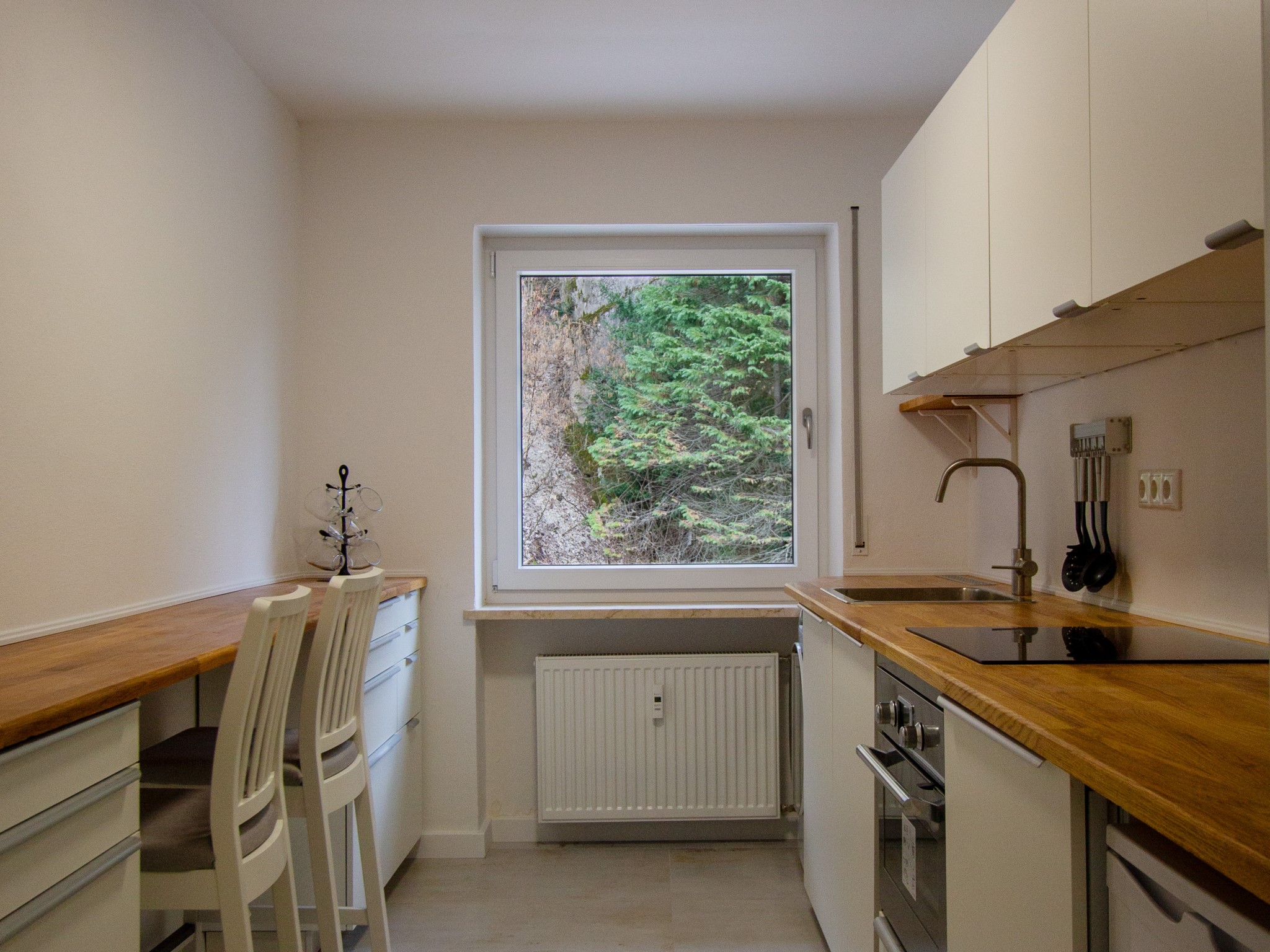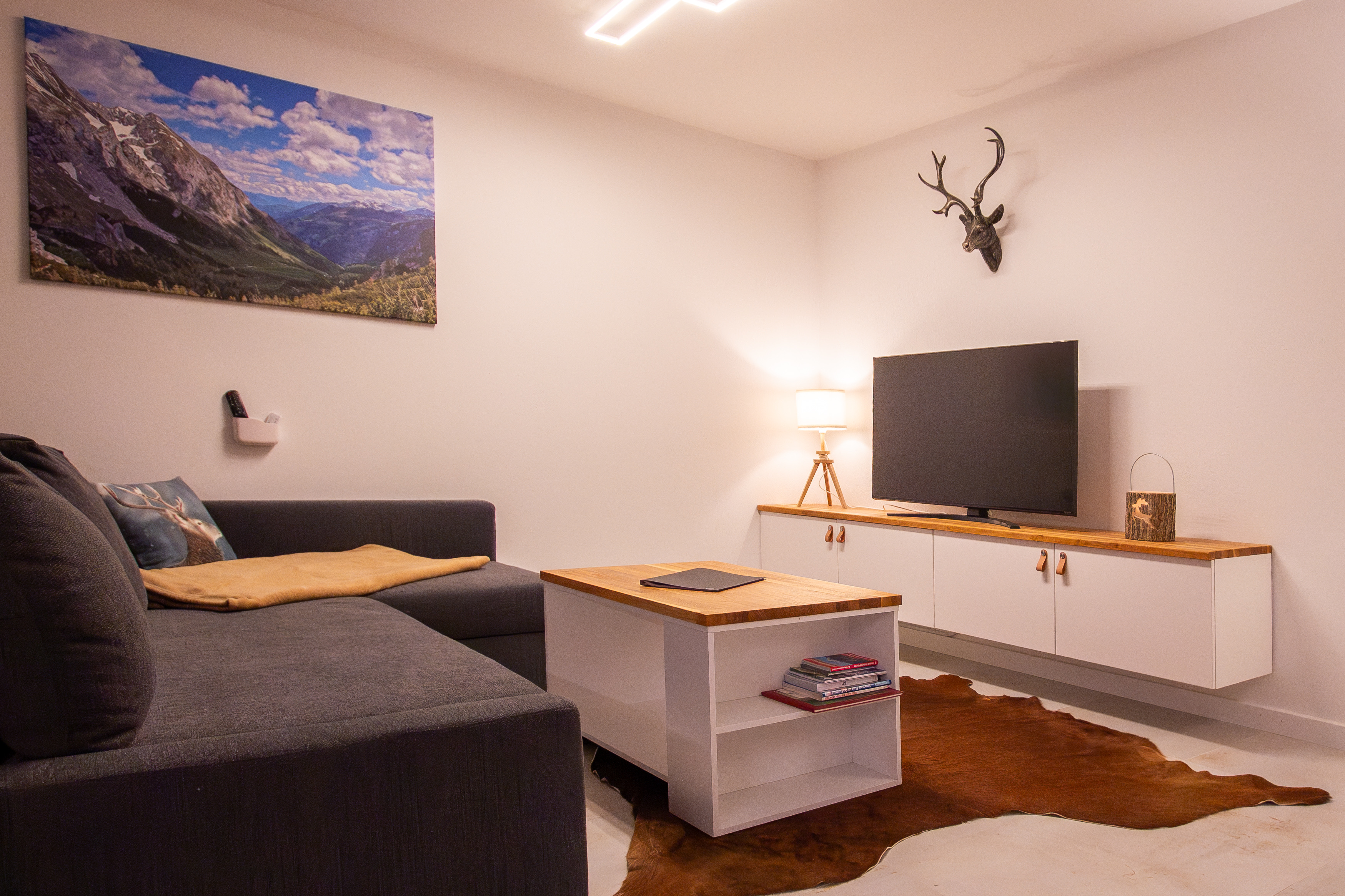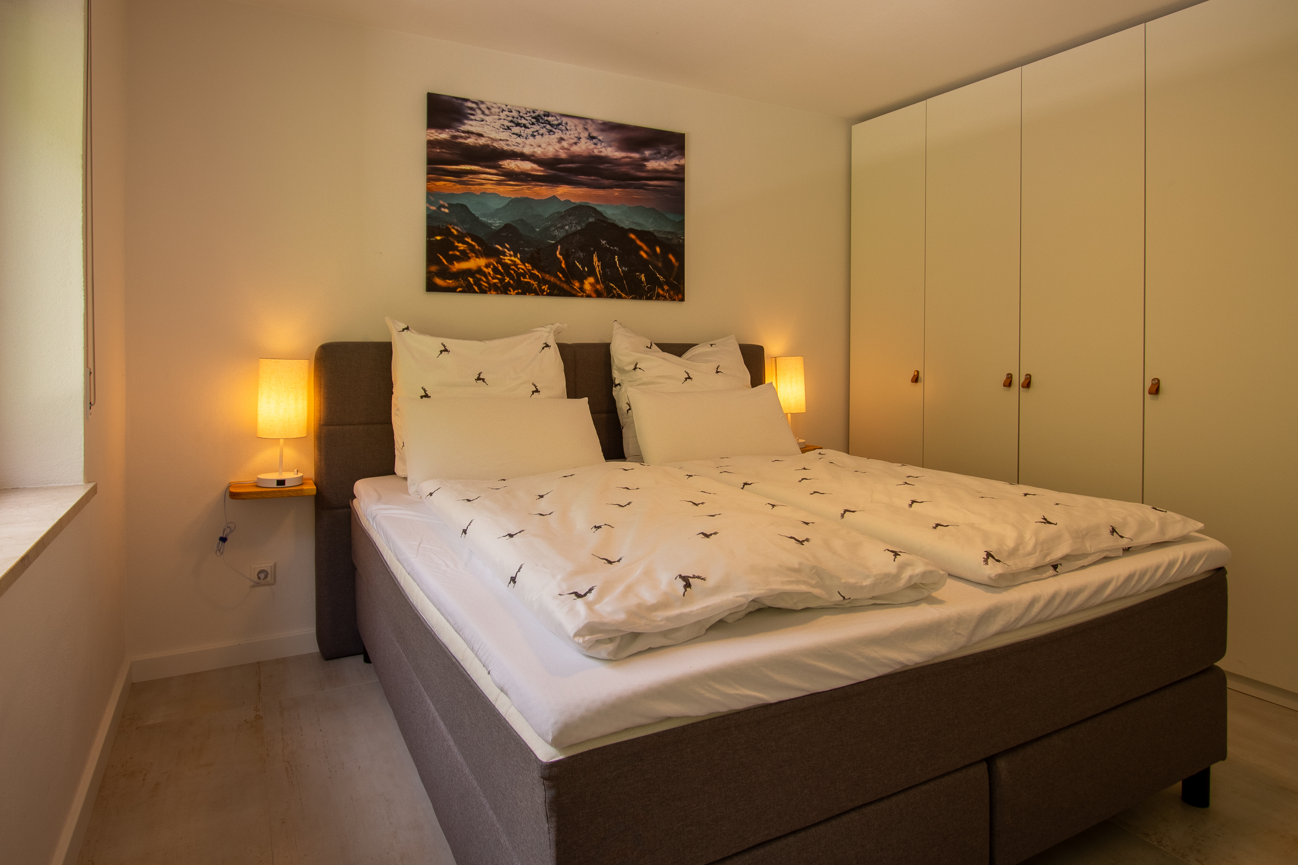 Willkommen in dieser geräumigen 70m² Ferienwohnung, die Platz für eine vierköpfige Familie bietet oder auch ideal ist, um alleine zu arbeiten und zu wohnen. Das Schlafzimmer verfügt über ein Doppelbett und ein Etagen-Wandbett, beide mit hochwertigen Matratzen, Kissen und Decken ausgestattet. Die Wohnung wurde im Jahr 2024 komplett renoviert und neu eingerichtet, mit modernen Annehmlichkeiten wie Induktionsherd, Geschirrspüler, Waschmaschine, Trockner, Kühlschrank, Gefrierschrank, Boxspring-Bett und Sofa. Hier können Sie Arbeit und Urlaub kombinieren und eine längere Auszeit genießen. Der Arbeitsplatz in der Ferienwohnung ist optimal ausgestattet mit einem elektrisch höhenverstellbaren Tisch, Stehhocker, großem ultra-wide Monitor, Webcam, Tastatur und Maus - schließen Sie einfach Ihren Laptop an und arbeiten Sie komfortabel und produktiv, um sich dann einen frühen Feierabend in den Alpen zu gönnen. Willkommen in Ihrem perfekten Rückzugsort für Arbeit und Entspannung!