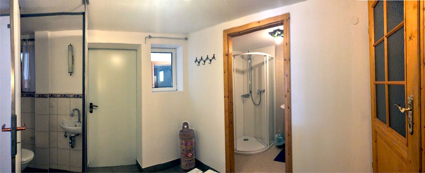 - erstes Stockwerk mit fünf Doppelbettschlafzimmer, eines davon im eigenem überdachten s/o-seitigem Balkon, separate Duschraum und WC;