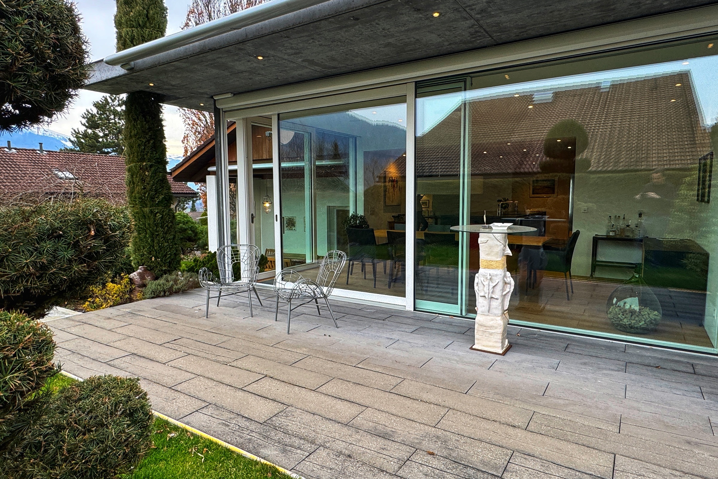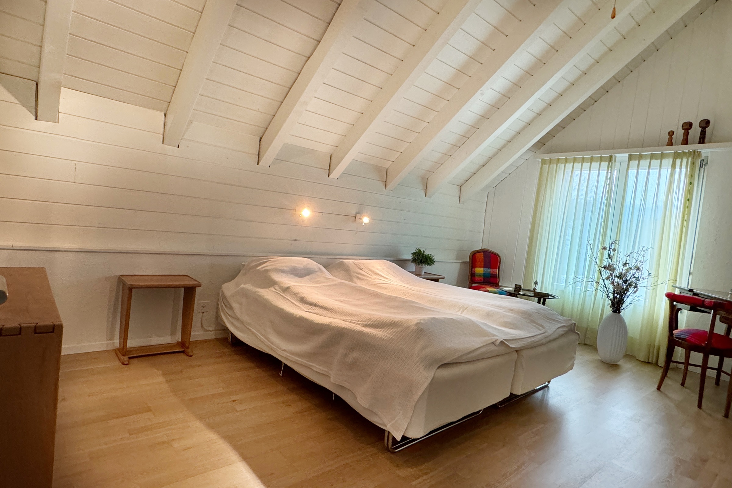 Die Ferienwohnung ist modern und gemütlich eingerichtet. Die angrenzende Terrasse mit einem grosszügigen Garten verfügt über zwei Liegemöglichkeiten und ein vollausgestatteter Holzkohlegrill. Vor dem Haus stehen vier Aussenparkplätze zur Verfügung.