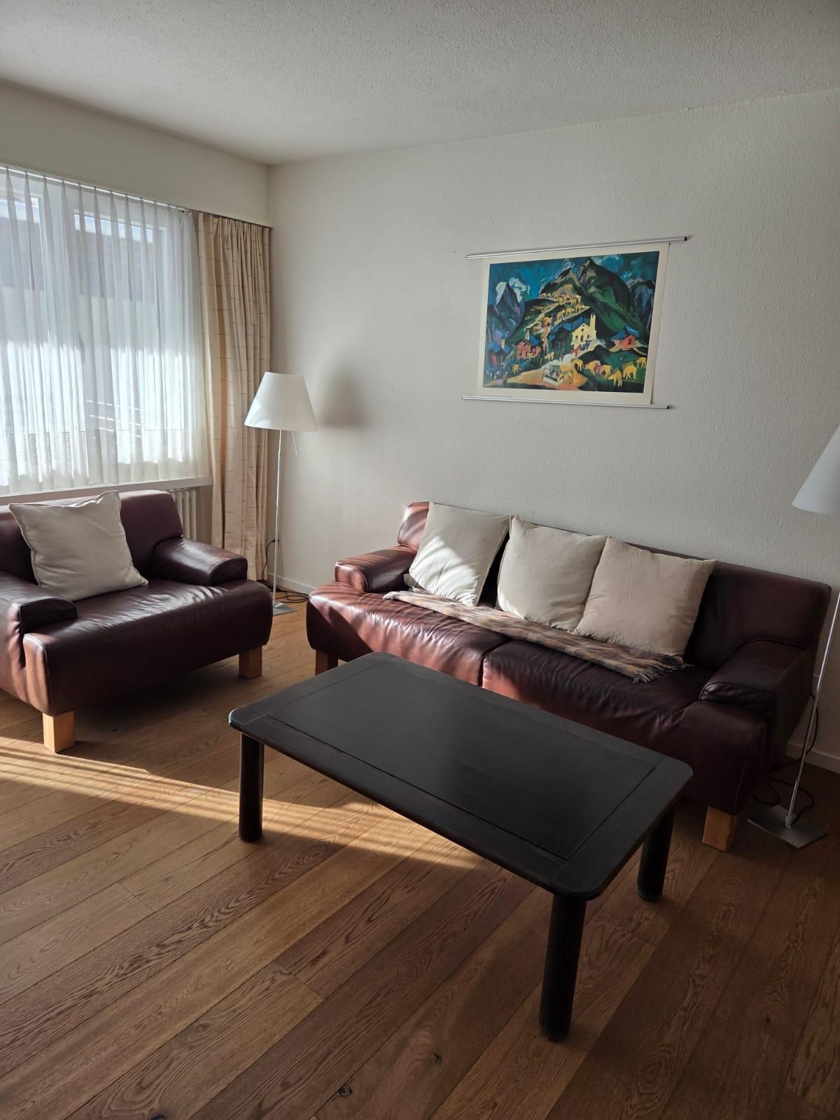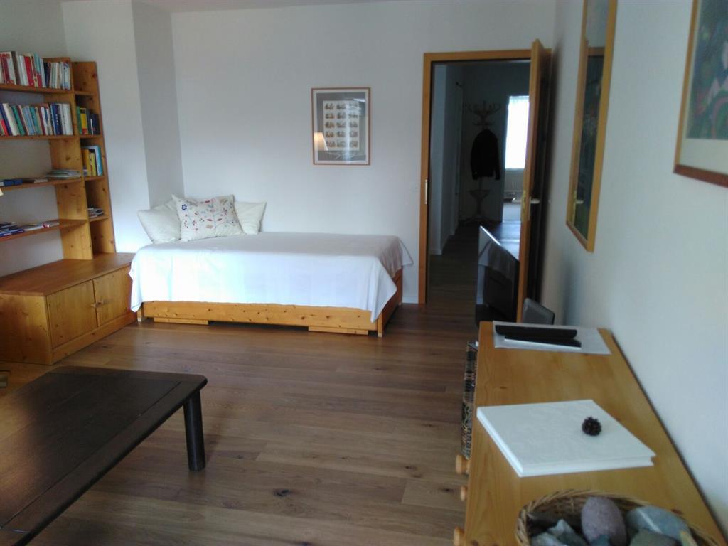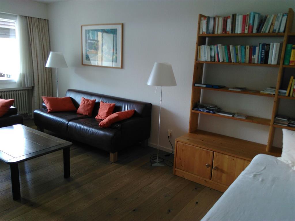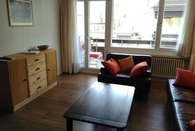 An zentraler Lage vermieten wir eine sehr helle und grosse 2 ½ -Zimmerwohnung in der 2. Etage des Quellenhofs (ca. 65m2); für 4 Personen geeignet *; Wohnzimmer mit Ledersofa, Ledersessel und einem stapelbaren Bett (für 2 Pers.), TV, WLAN, grosse Auswahl an Büchern; Südbalkon mit Tisch, vier Stühlen und zwei Liegestühlen; Fahrstuhl/Lift; separates Schlafzimmer mit einem Doppelbett (2 Matratzen) und einem Wandschrank; die renovierte, offene und geräumige Wohnküche ist grosszügig ausgestattet und sehr hell (zwei Fenster), Glaskeramik-Kochfeld, Backofen, Kühlschrank mit Tiefgefrierfach, Geschirrspüler; Badezimmer mit Lavabo,Dusche, WC, ein grosser Spiegelschrank; Bettwäsche, Frotteewäsche; Nichtraucherwohnung; Haustiere sind nicht gestattet; abschliessbarer Skischrank im Skiabstellraum (Parterre); Waschmaschine; Hallenbad (gratis) sowie eine Sauna (CHF 7.- pro Person und Voranmeldung) stehen für die Feriengäste zur Verfügung. Ein Parkplatz (Tiefgarage) kann beim Hauswart reserviert werden: (CHF 50.- pro Woche).
