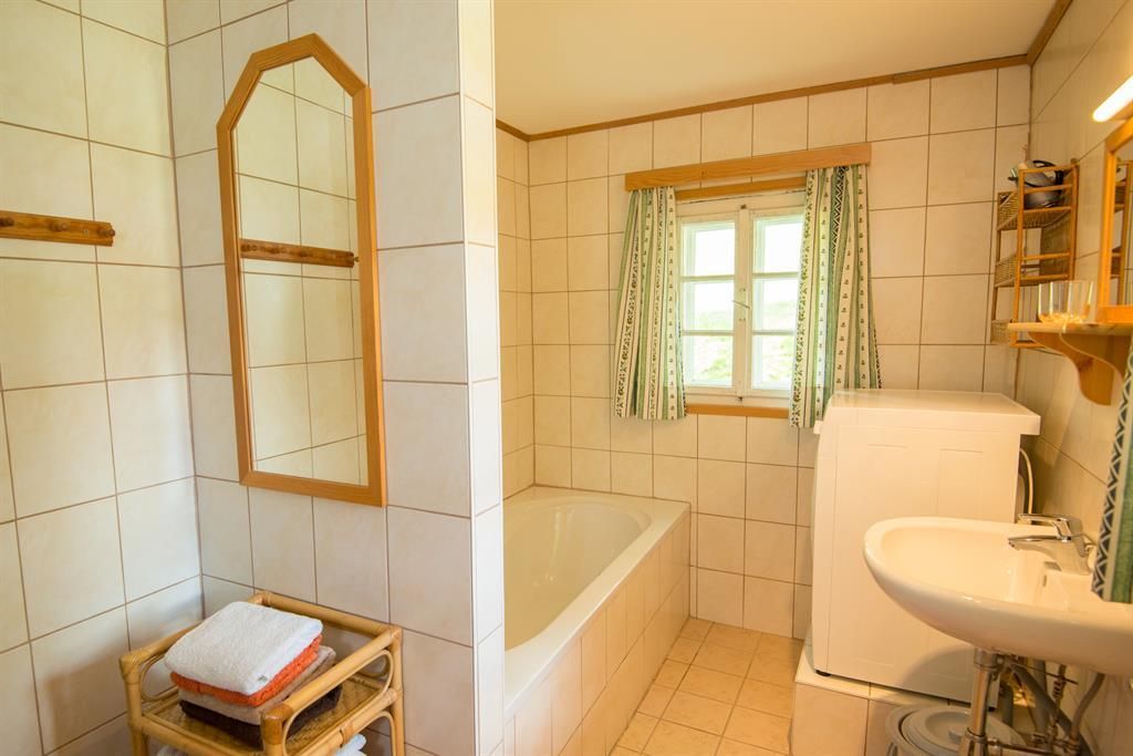 Großes Familienzimmer mit Doppelbett und Schlafsofa. Kleines Kinderzimmer mit Stockbett. Dazwischen die Küche: Herd mit Backrohr, Kühlschrank, Kaffeemaschine, Wasserkocher, Geschirrspüler.