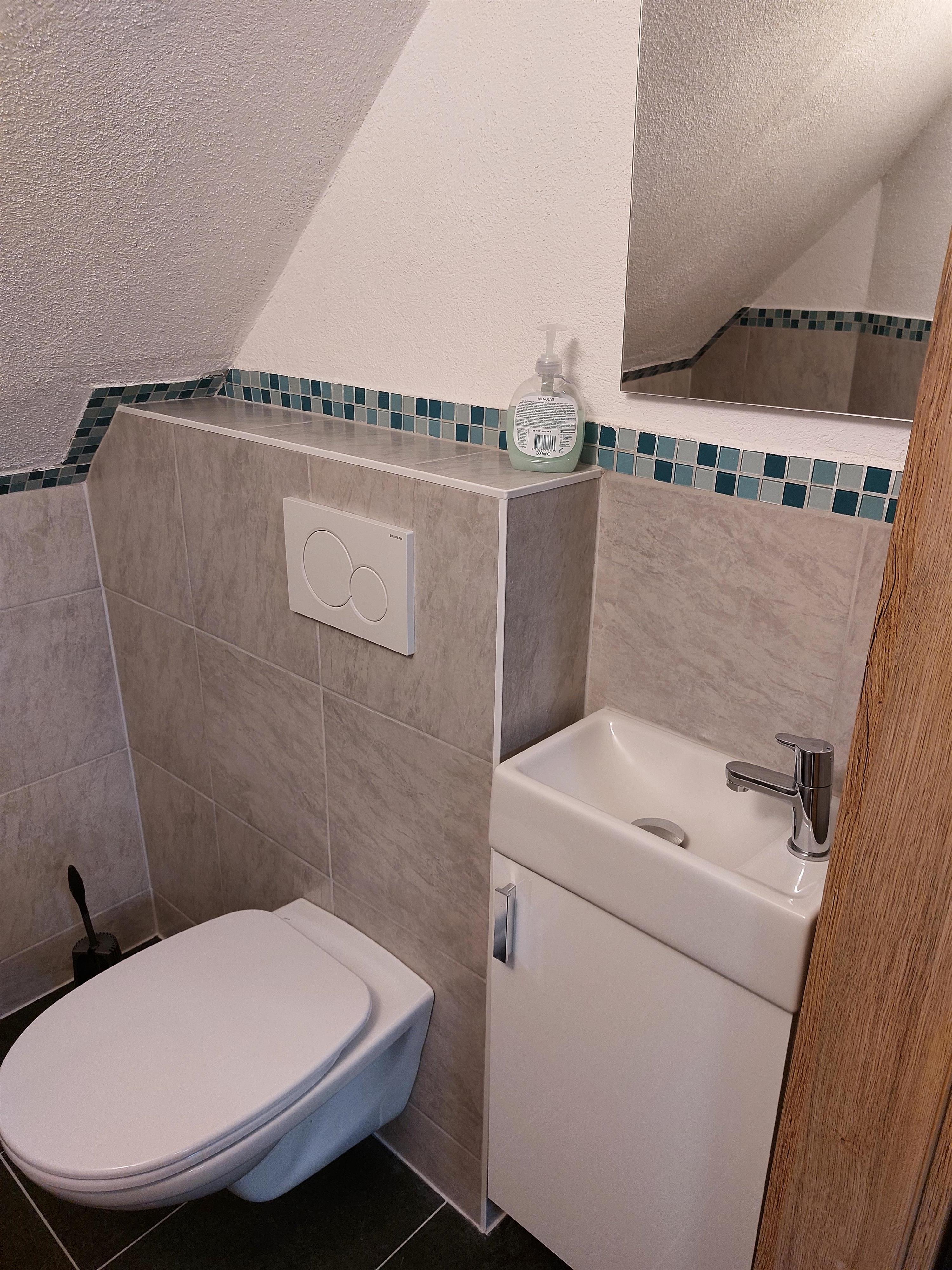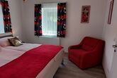 Die Ferienwohnung 2 mit 95m² befindet sich im 1. Stock mit separatem Zugang (Außenstiege) mit kleiner Balkonsitzecke.