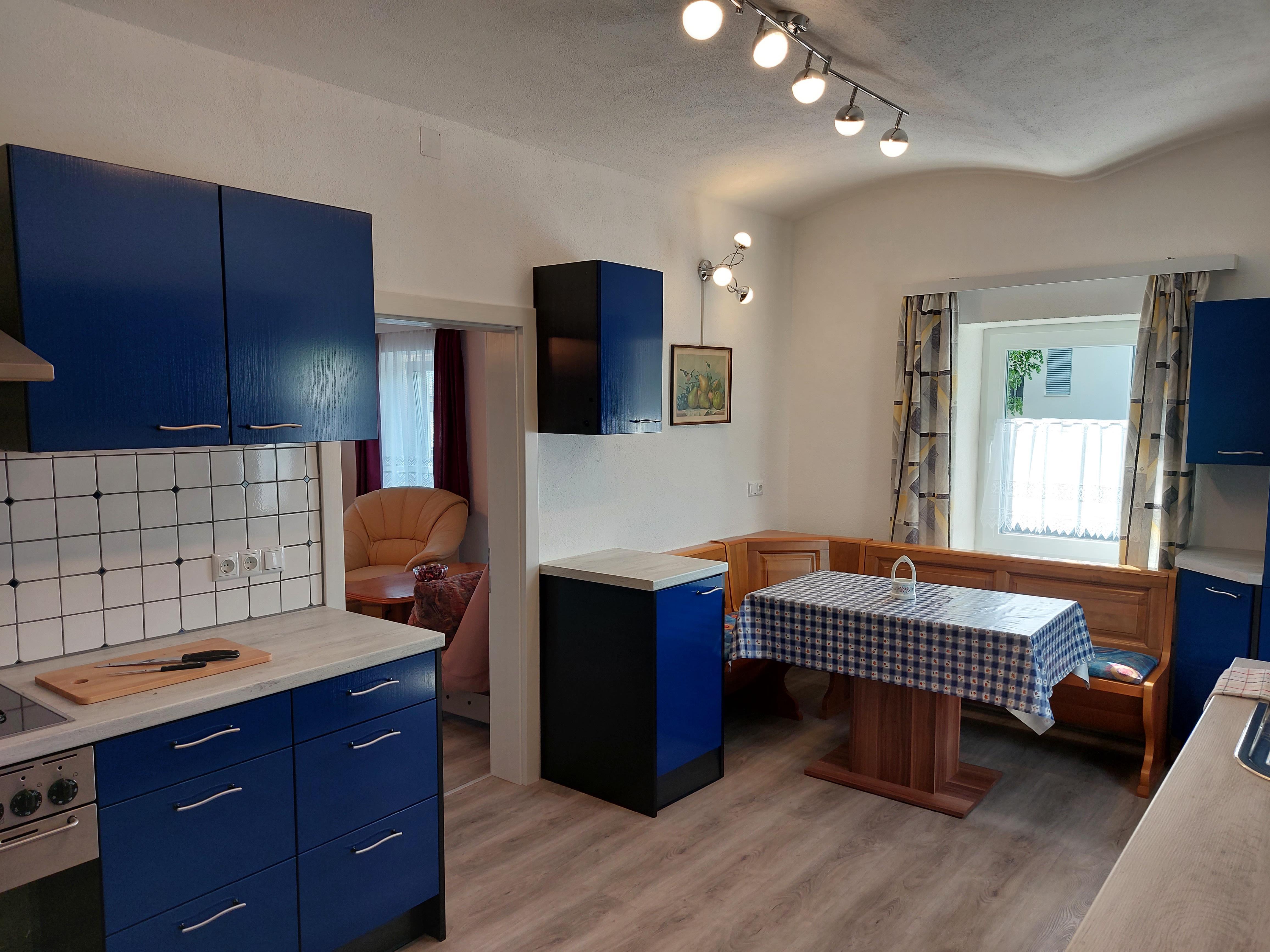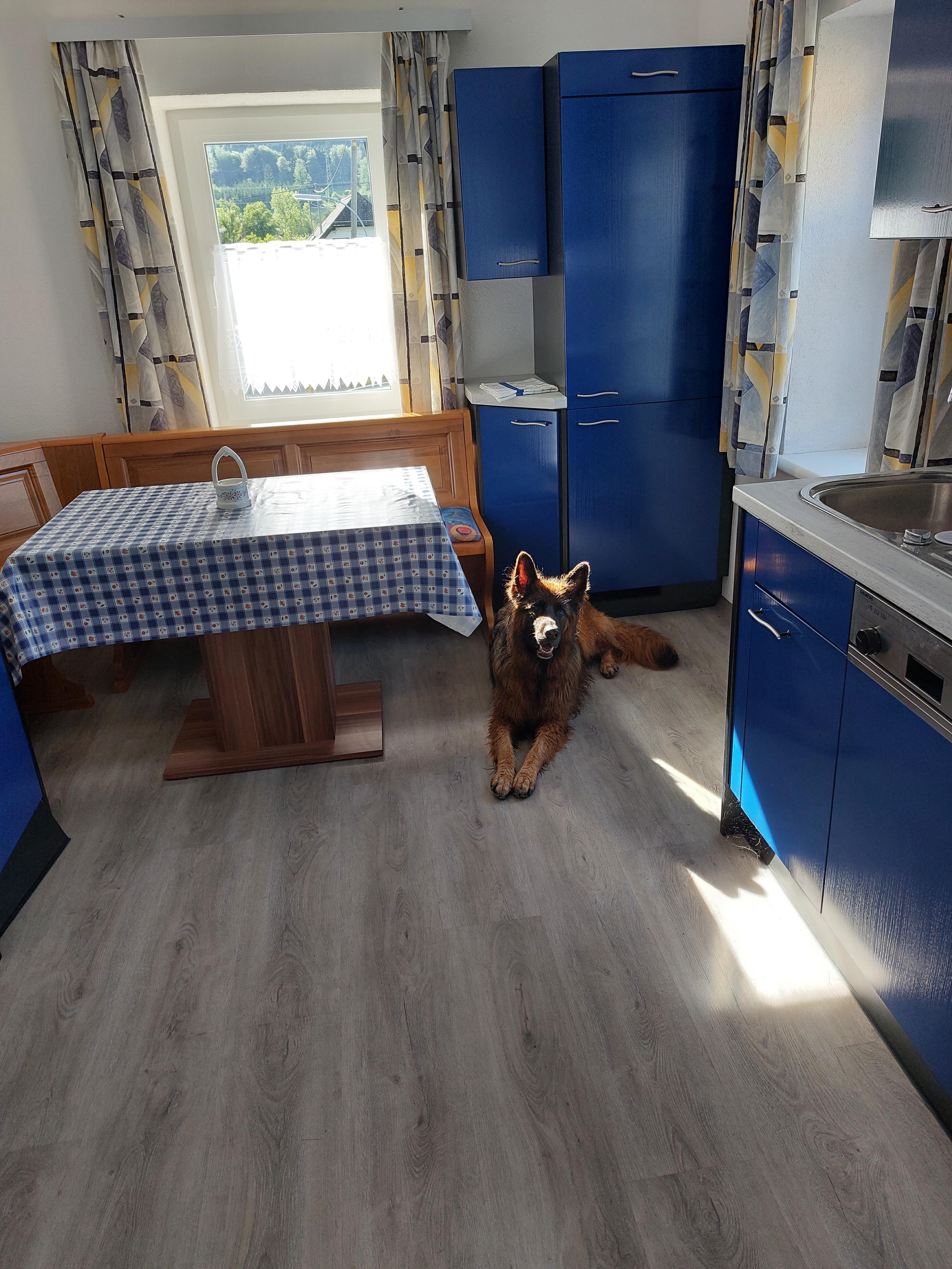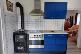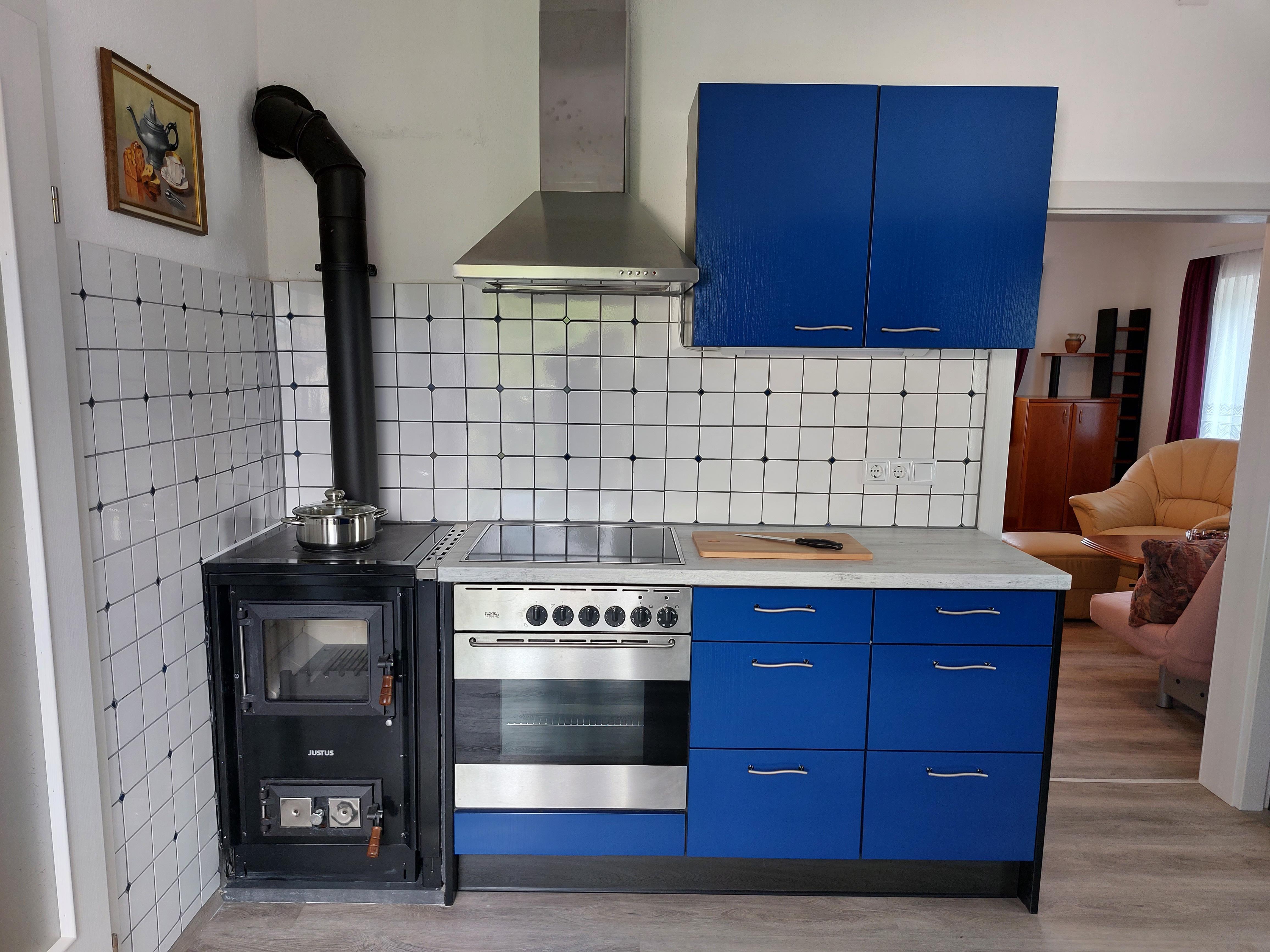 1 voll ausgestattete Wohnküche mit unserem heylight einen romantischen Holz - Kohle Ofen mit Sichtfenster zum Feuer und kleiner Kochstelle. Eine Essecke in der Küche, Herd mit Backrohr, Mikrowelle, Kühlschrank mit Gefrierteil, Toaster, Kaffeemaschine, Wasserkocher, Geschirrspühler, Küchentücher, Geschirr, Besteck, Gläser....