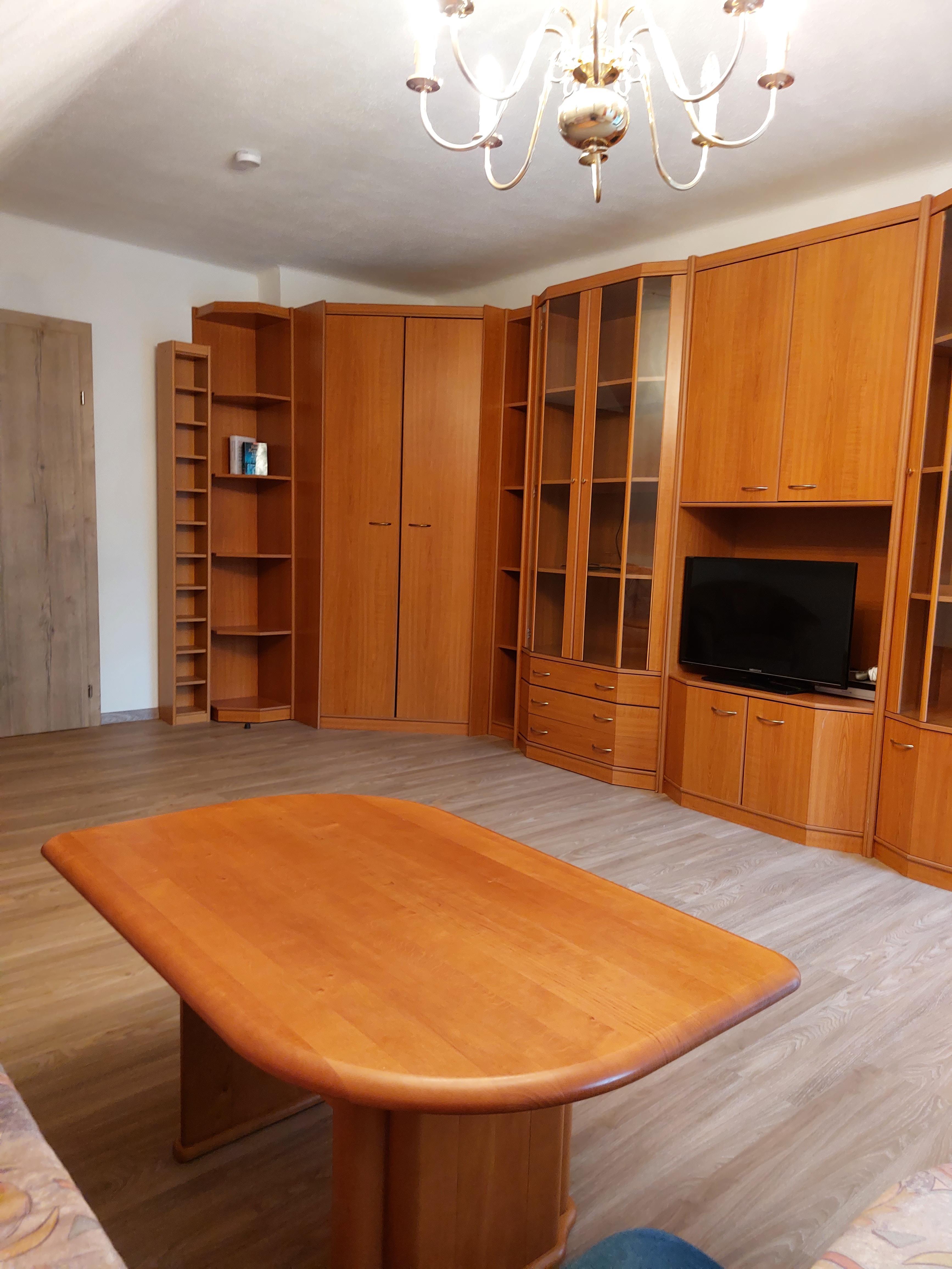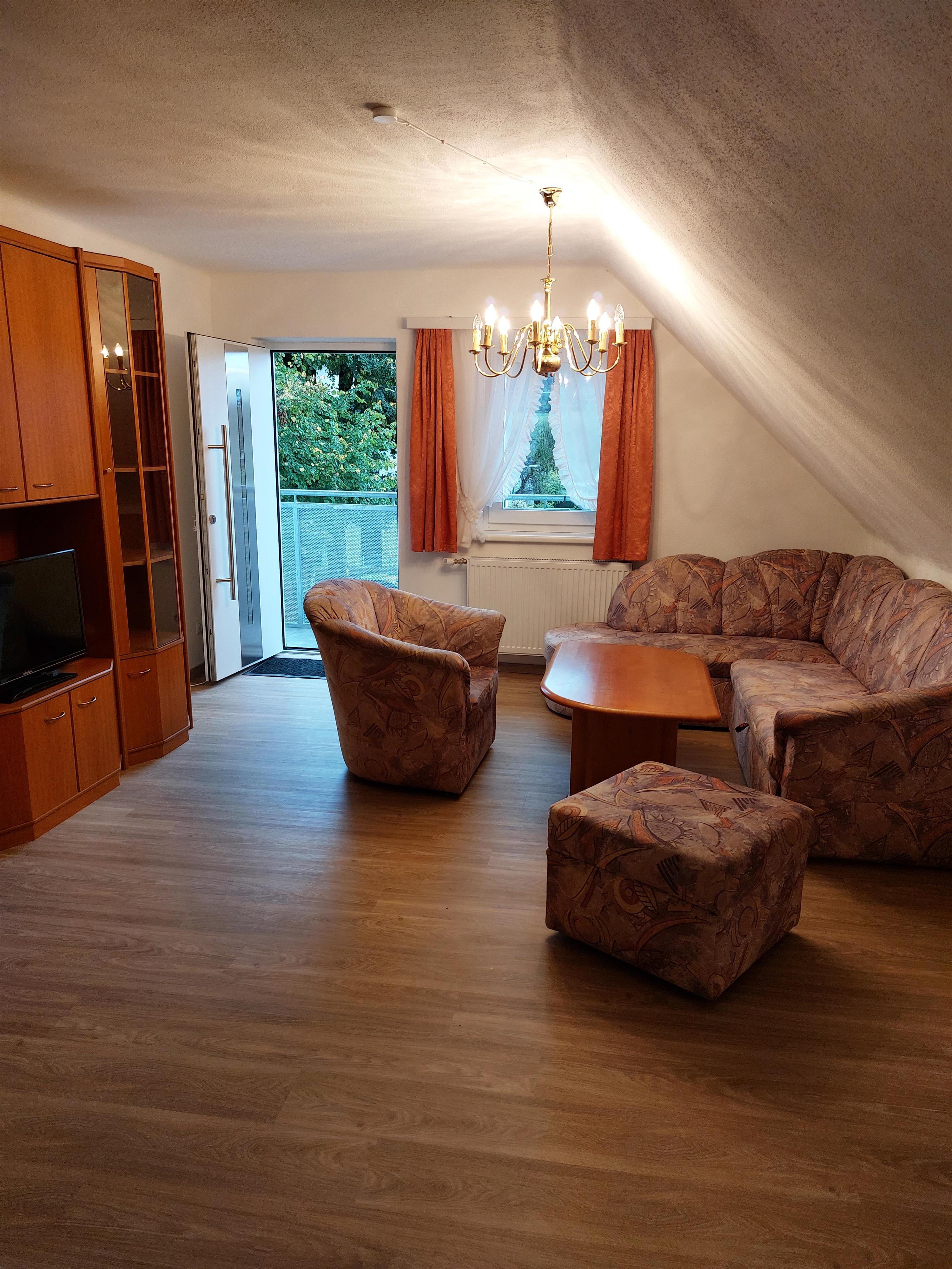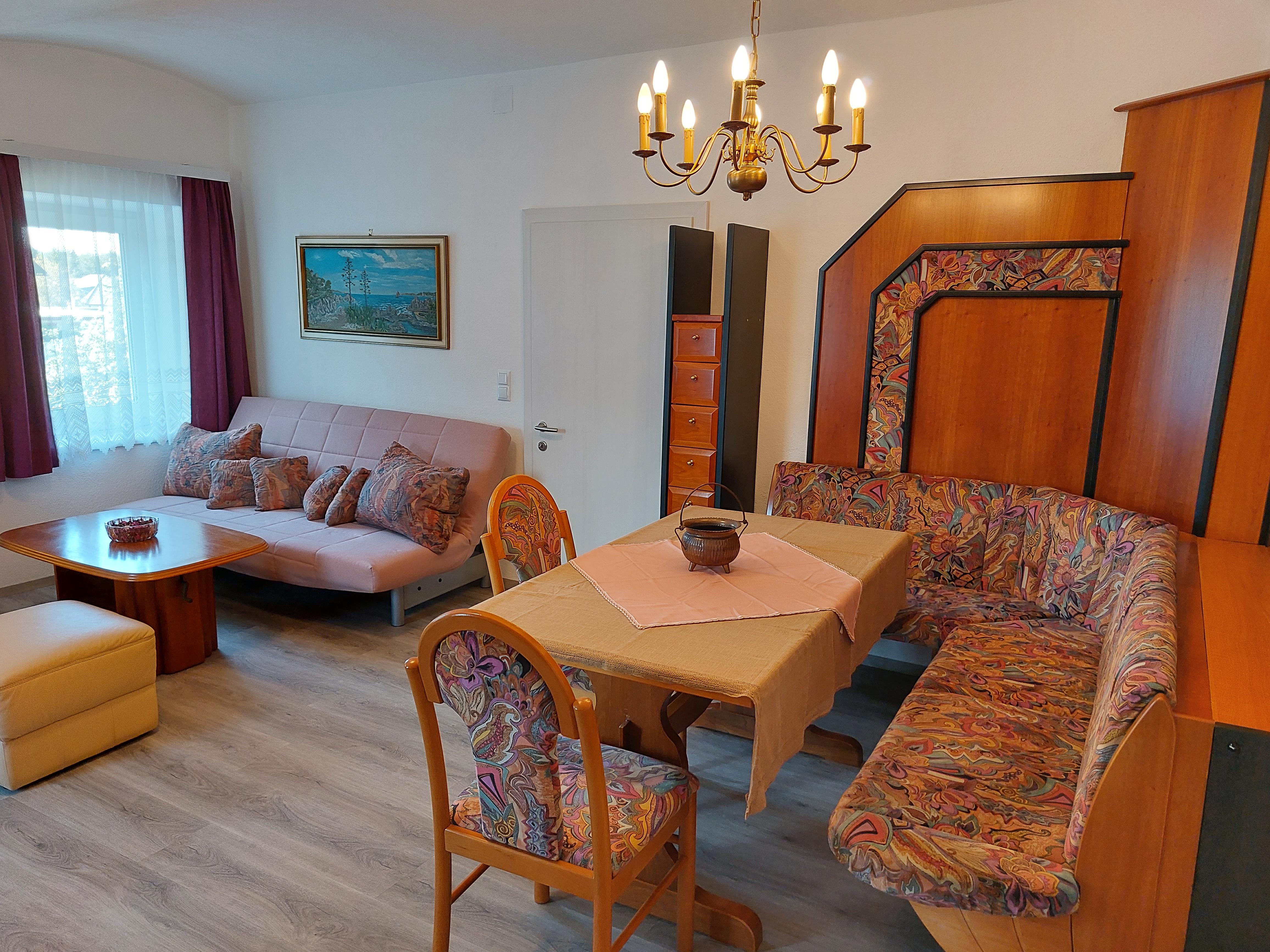 1 großes Wohnzimmer mit einer gemütlichen Essecke, ausziehbarer Couch, Lederfernsehsessel, SAT TV