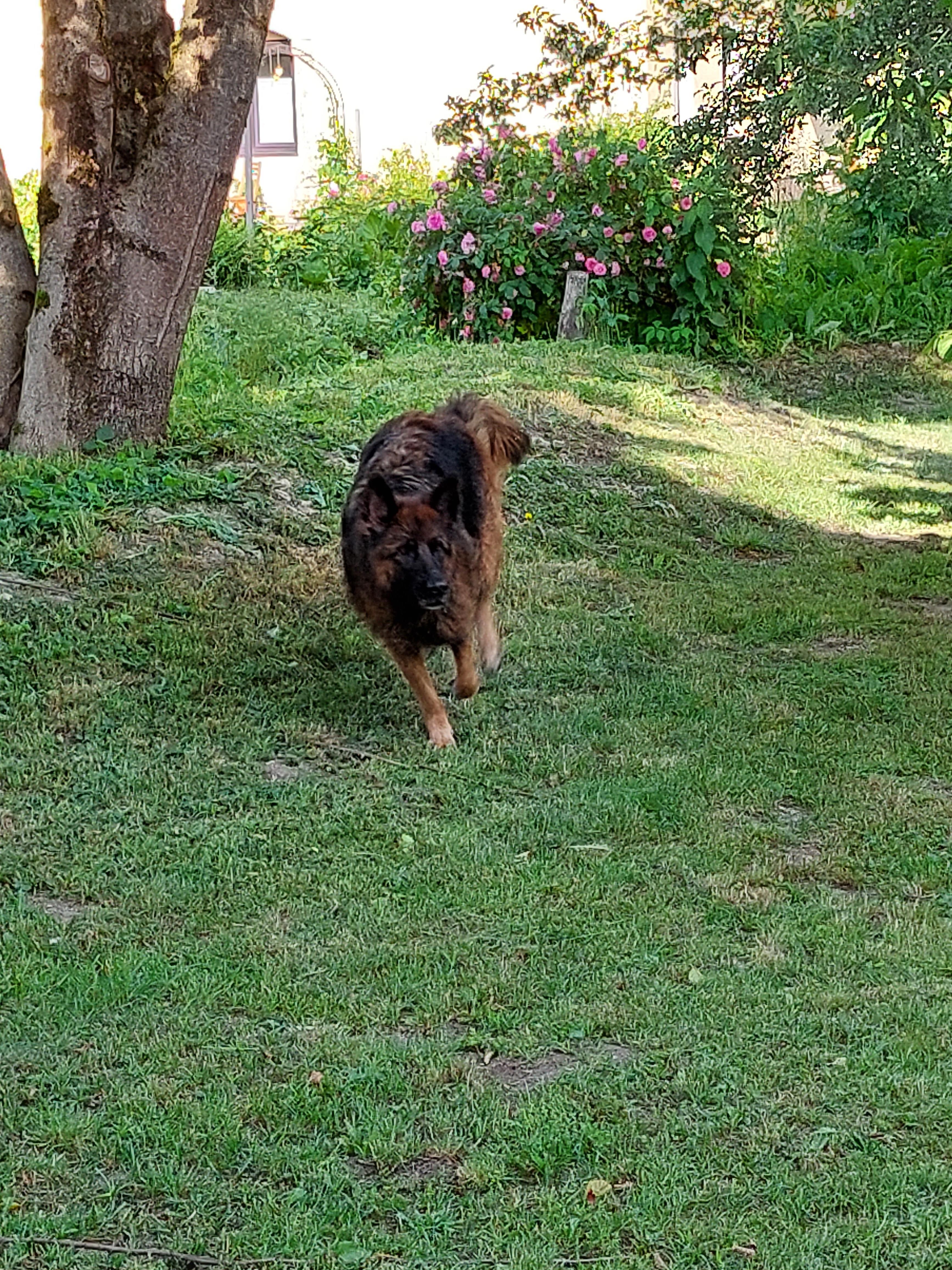 Für Hunde steht eine Hundehütte im Garten falls sich ein Hund ein schattiges oder warmes Plätzchen sucht.