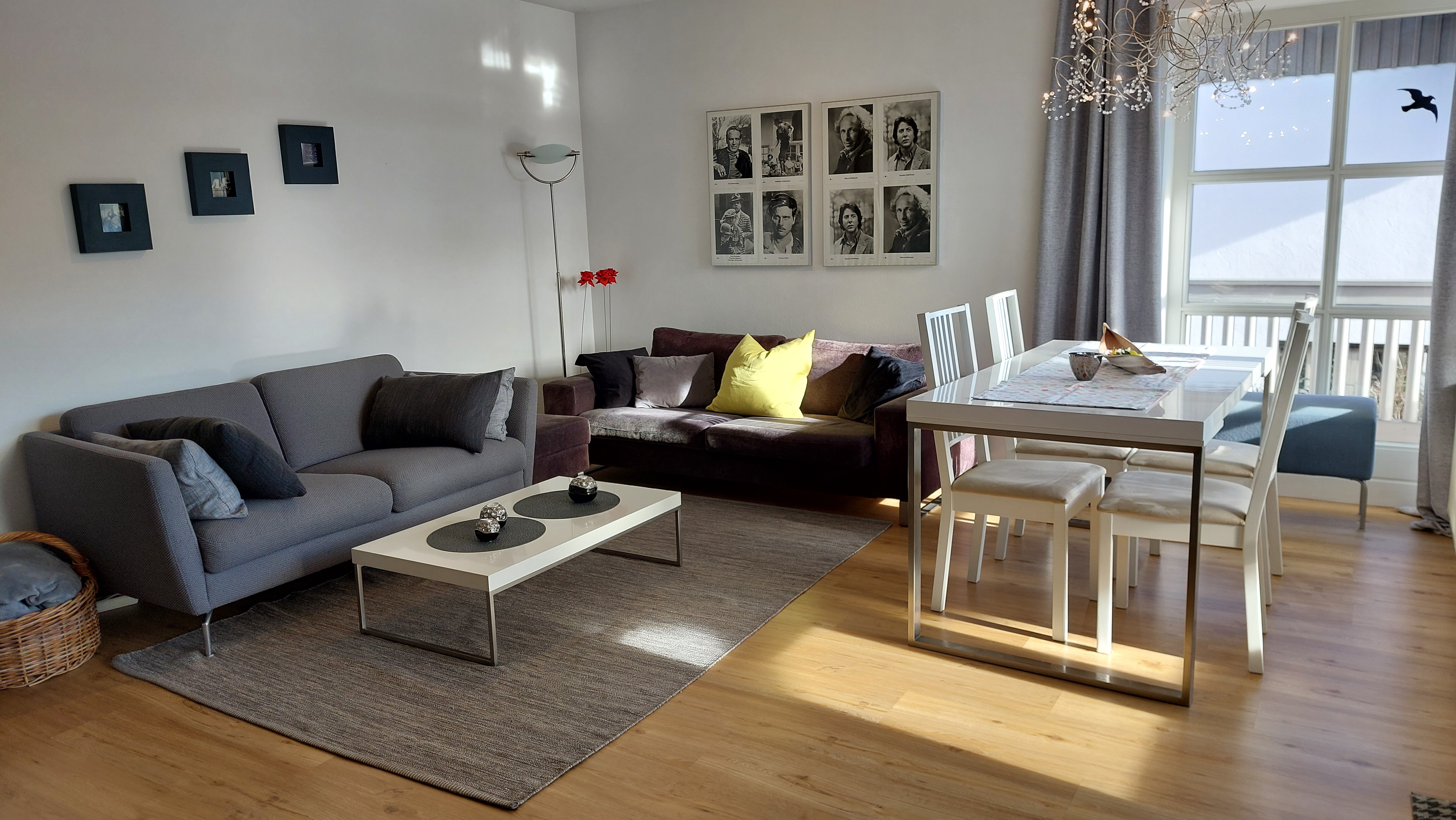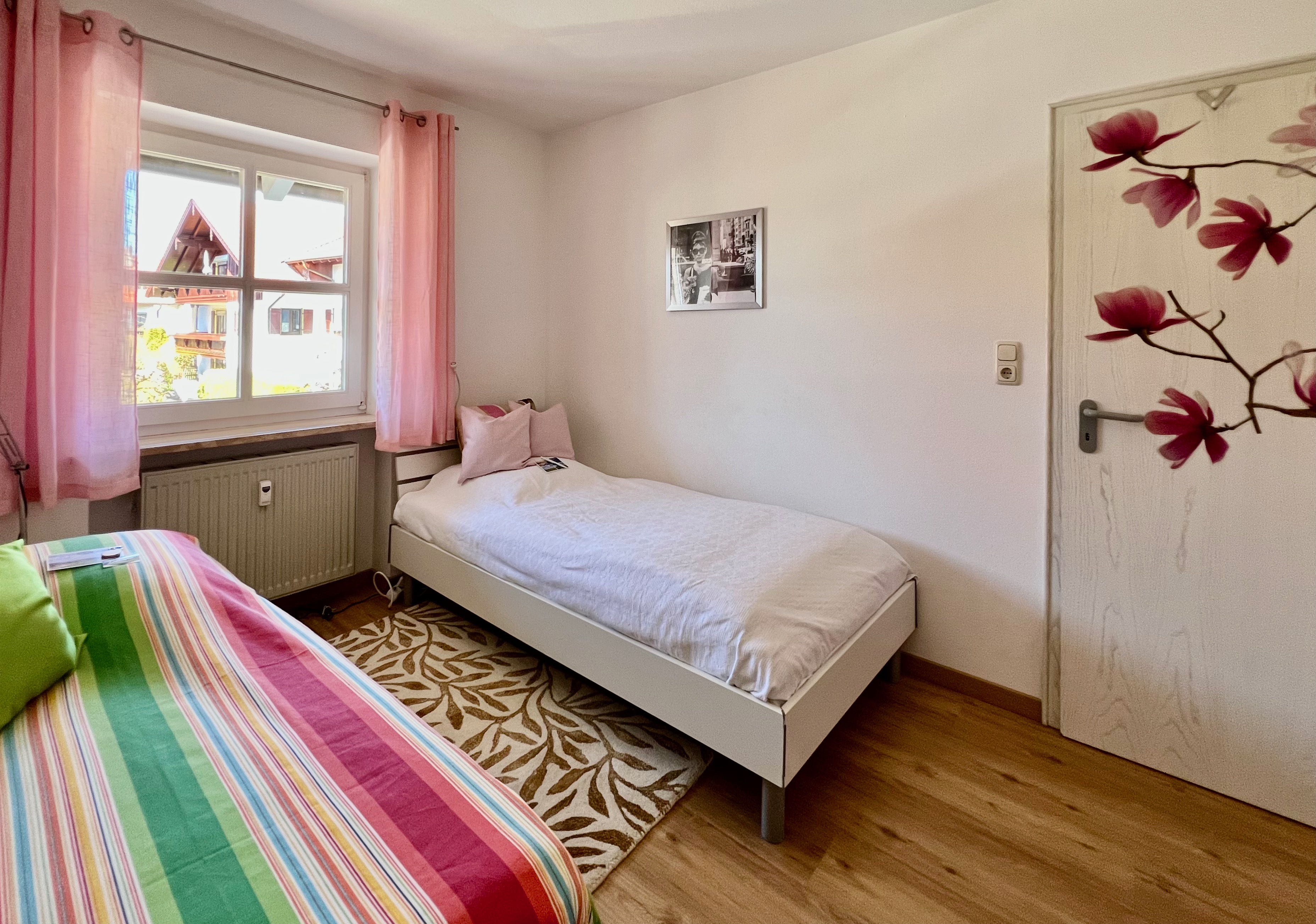 Die top ausgestattete Ferienwohnung besticht durch das lichtdurchflutete, geräumige Wohn-/Esszimmer mit großer, bodentiefer Fensterfront sowie einem überdachtem 15 qm großen Süd- sowie Ostbalkon (incl. Balkonmöbel sowie einer Sonnenliege) mit Blick auf die Berge rund um die Kampenwand. Ein 40-Zoll-Flat-TV und ein schneller WLAN-Anschluss ist selbstverständlich. Im großen Wohnbereich mit 2 Designer Sofas von BoConcept und einem modernen Esstisch mit Aussicht findet auch eine 4-köpfige Familie ausreichend Platz. Die Designer-Einbauküche von NOLTE ist komplett mit Siemens Geräten ausgestattet (Backofen mit Ceran-Kochfelder, Spülmaschine, großer Kühlschrank mit Gefrierfach). Außerdem sind weitere Küchengeräte wie Toaster, Kaffeemaschine, Wasserkocher sowie eine umfangreiche Geschirr-Ausstattung vorhanden. Der gemütliche Küchen-Essplatz an der Fensterfront bietet sich zum Frühstücken bestens an. Das großzügige Schlafzimmer ist u.a. mit einem 1,80 m breiten Doppelbett (2 Einzelbetten mit hochwertigen Matratzen: 1 weiche Matratze, eine härtere Matratze), Schrank und 2 Kommoden ausgestattet. Im Gäste- bzw. Kinderzimmer befinden sich 2 Einzelbetten, die bei Bedarf auch zusammen gestellt werden können (1 1m breites Bett mit mittelfester Matratze sowie ein 90 cm breites Bett mit weicher Matratze).Neben einem geräumigen Bad mit Fenster, Wanne und Wellness-Dusche sowie Waschmaschine und WC gibt es noch ein separates Gäste-WC. Im Eingangsbereich befindet sich ein großer Schiebetüren-Schrank für Ihr Gepäck. Die gesamte Wohnung ist mit einem Design-Parkett-Boden in Eiche natur Optik verlegt.