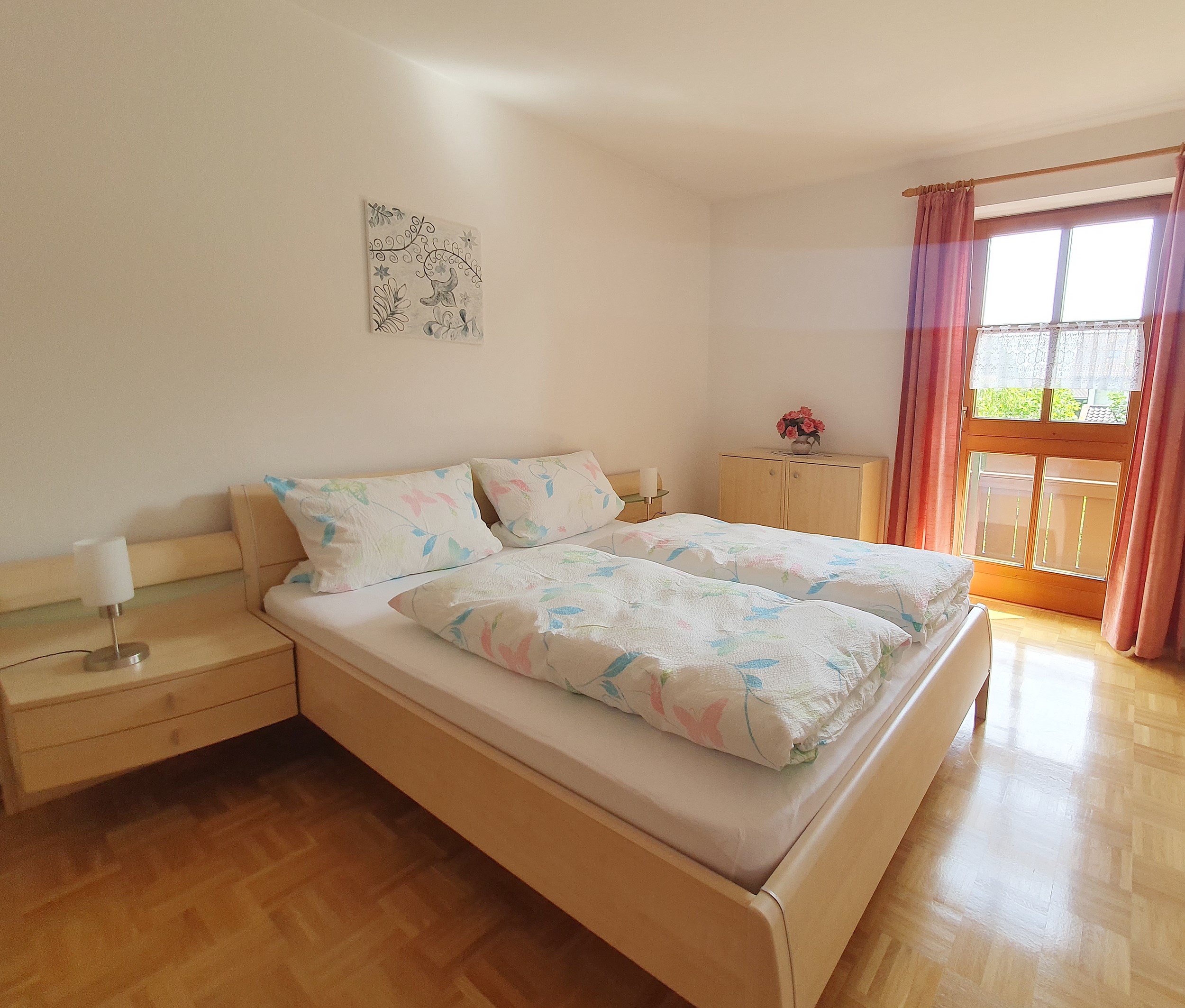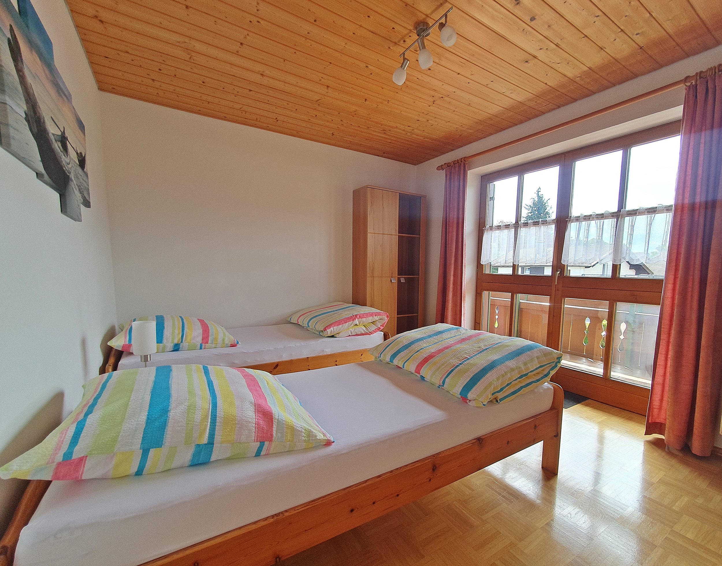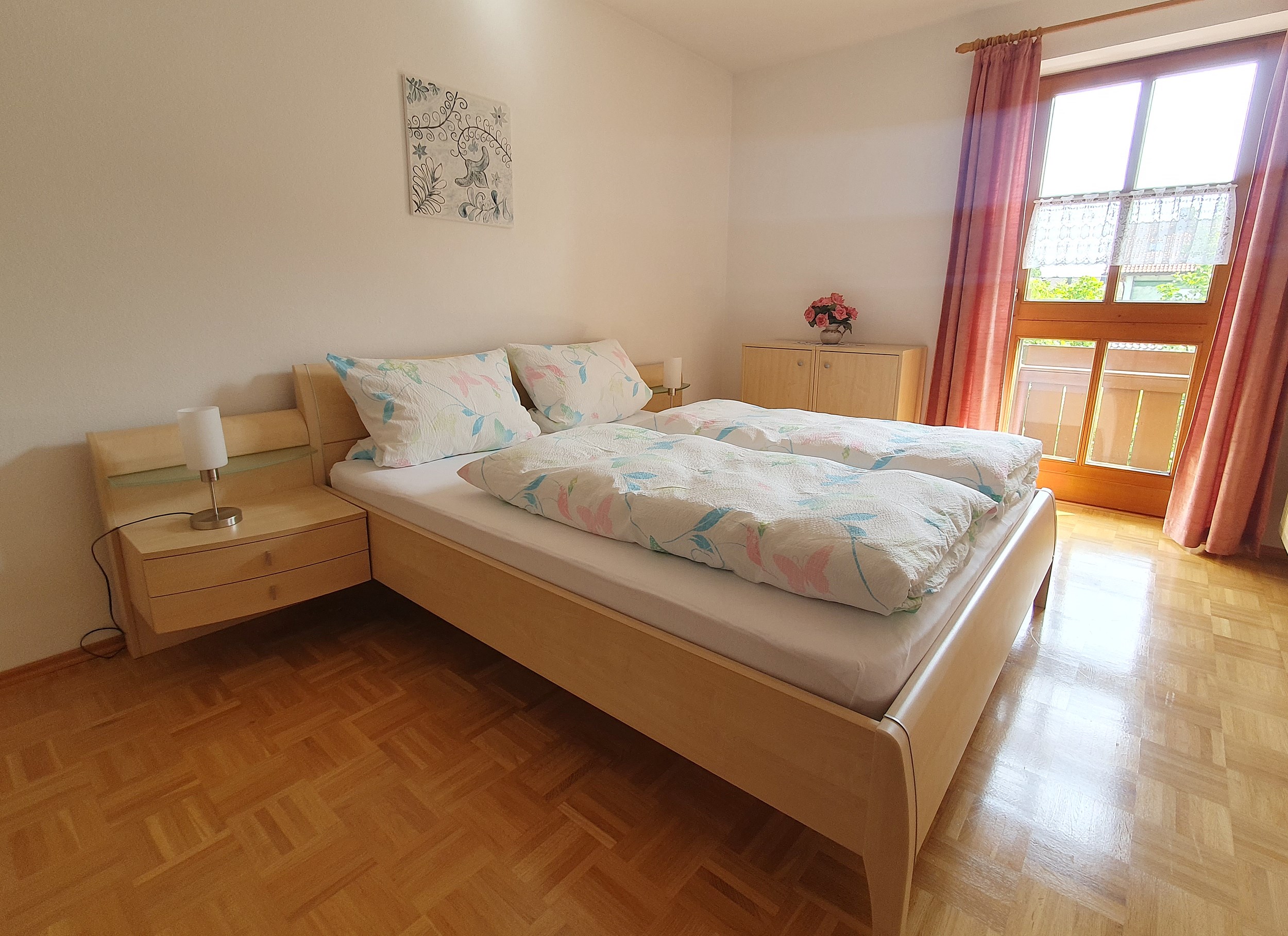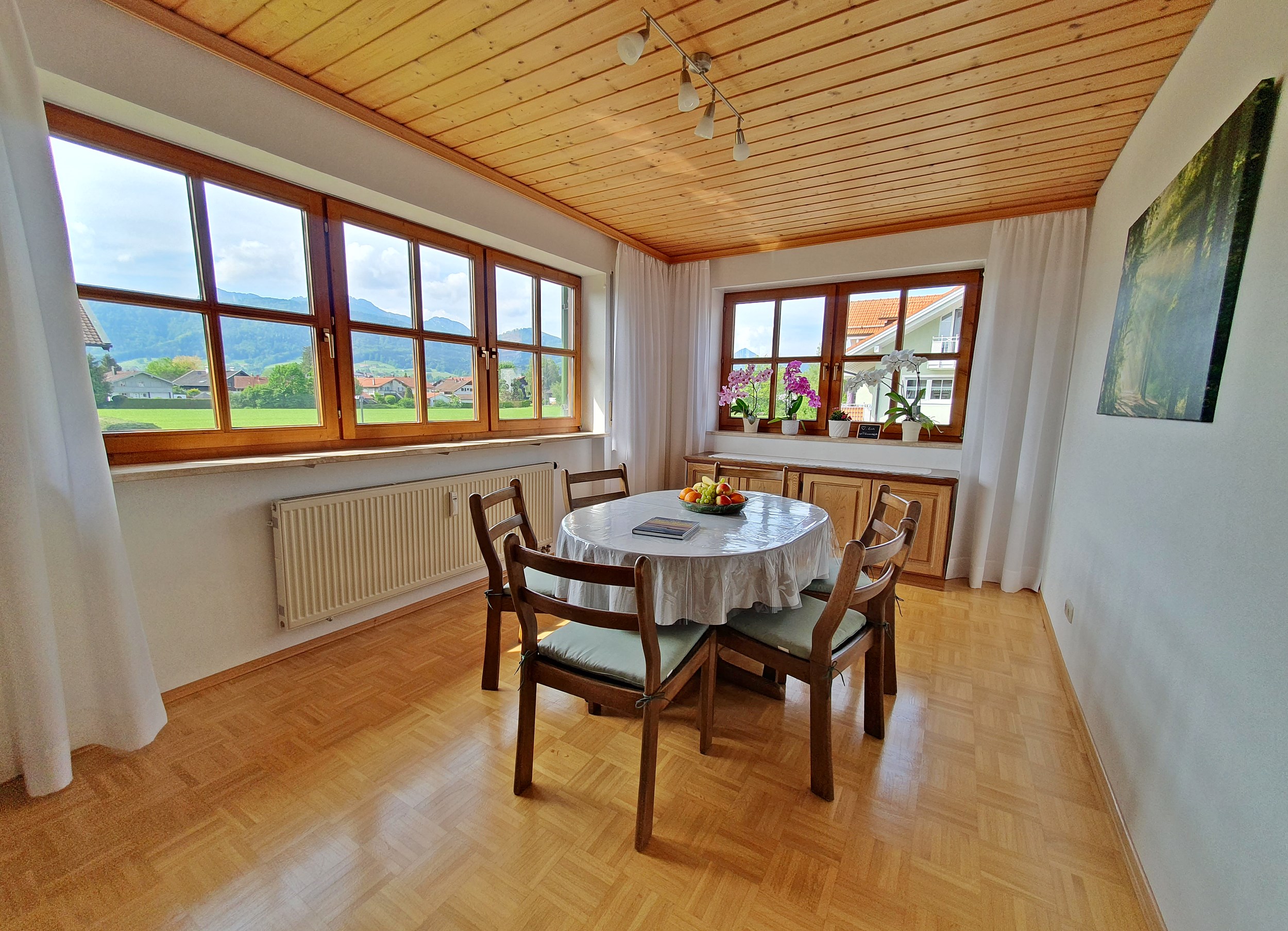 Verbringen Sie ein paar schöne Urlaubstage in der großzügig geschnittenen und lichtdurchfluteten Wohnung mit 120 qm im 1. Obergeschoss. Die Ferienwohnung verfügt über 3 Schlafzimmer, eines davon mit einem Doppelbett, die anderen mit Einzelbetten und einem zusätzlichen Kinderbett. Die 2022 neu eingebaute Küche ist ausgestattet mit einem Herd, Backofen, Kühlschrank, Geschirrspülmaschine, Wasserkocher, Kaffeemaschine, Toaster und einer Mikrowelle. Im Nebenzimmer befindet sich das Esszimmer mit Platz für die ganze Familie und Blick auf die Berge. Das Wohnzimmer mit der großen Eckcouch verfügt über einen SAT-TV. Vom Wohnzimmer und den Schlafzimmern haben Sie Zugang auf den Ost-/Südbalkon mit Blick auf die Chiemgauer Alpen. Das Badezimmer verfügt über eine Badewanne/Dusche, zwei Waschbecken und ein WC. In der Wohnung befindet sich noch ein zusätzliches WC. Ein Hauseigener Parkplatz wird Ihnen kostenfrei zur Verfügung gestellt. Kostenfreies WLAN ist in der Wohnung vorhanden. Haustiere sind nicht erlaubt. Für mitgebrachte Fahrräder steht Ihnen eine abschließbare Garage zur Verfügung.