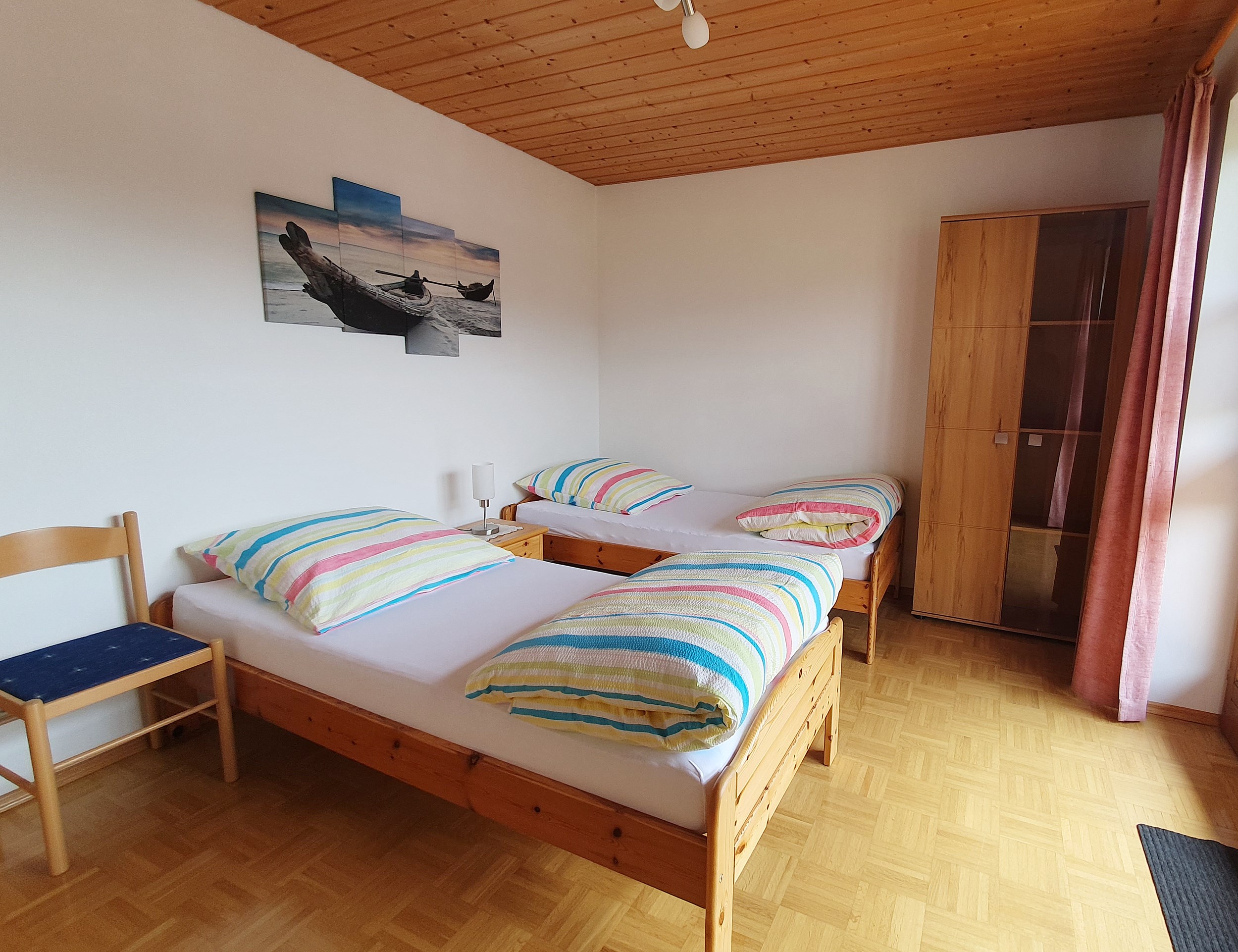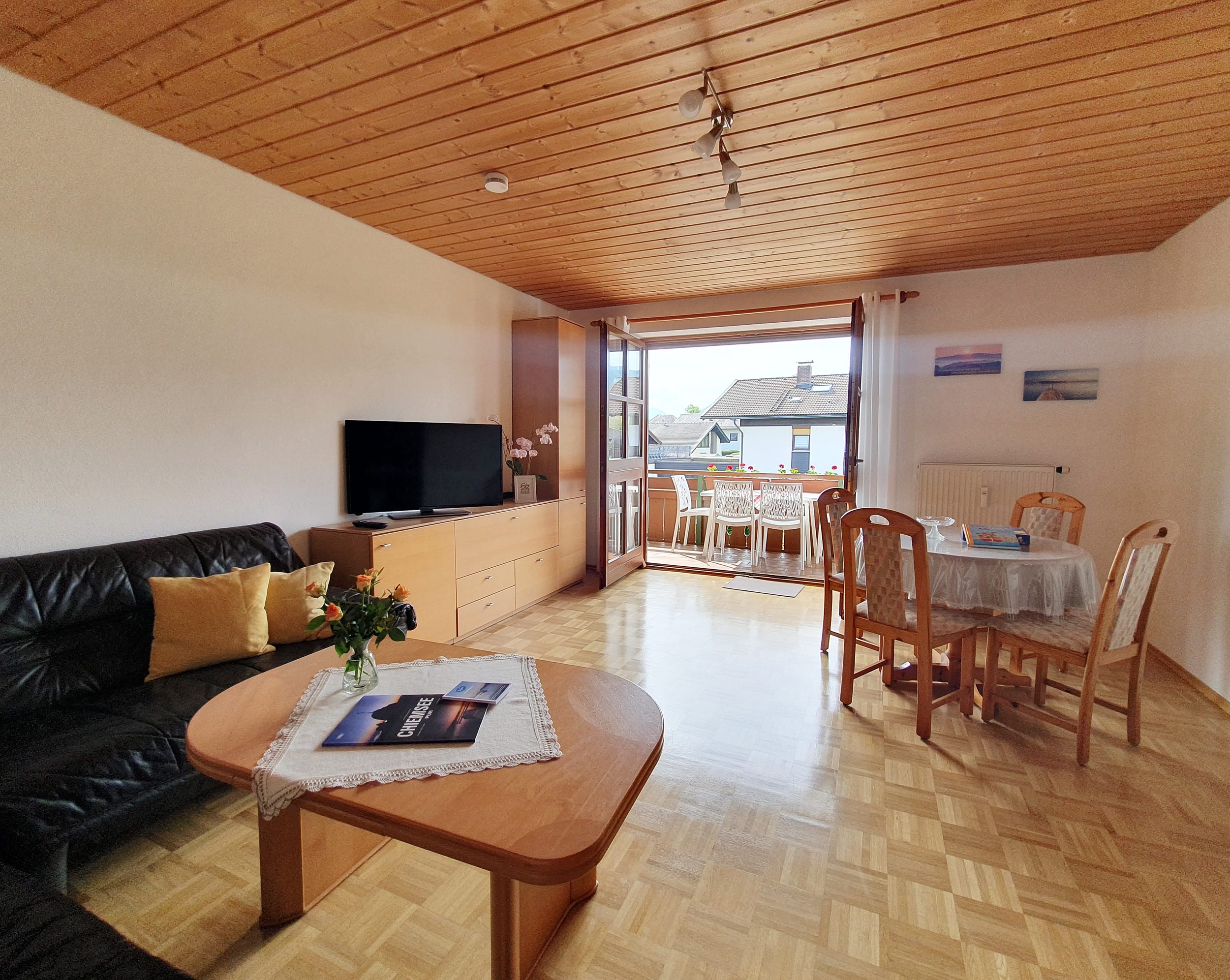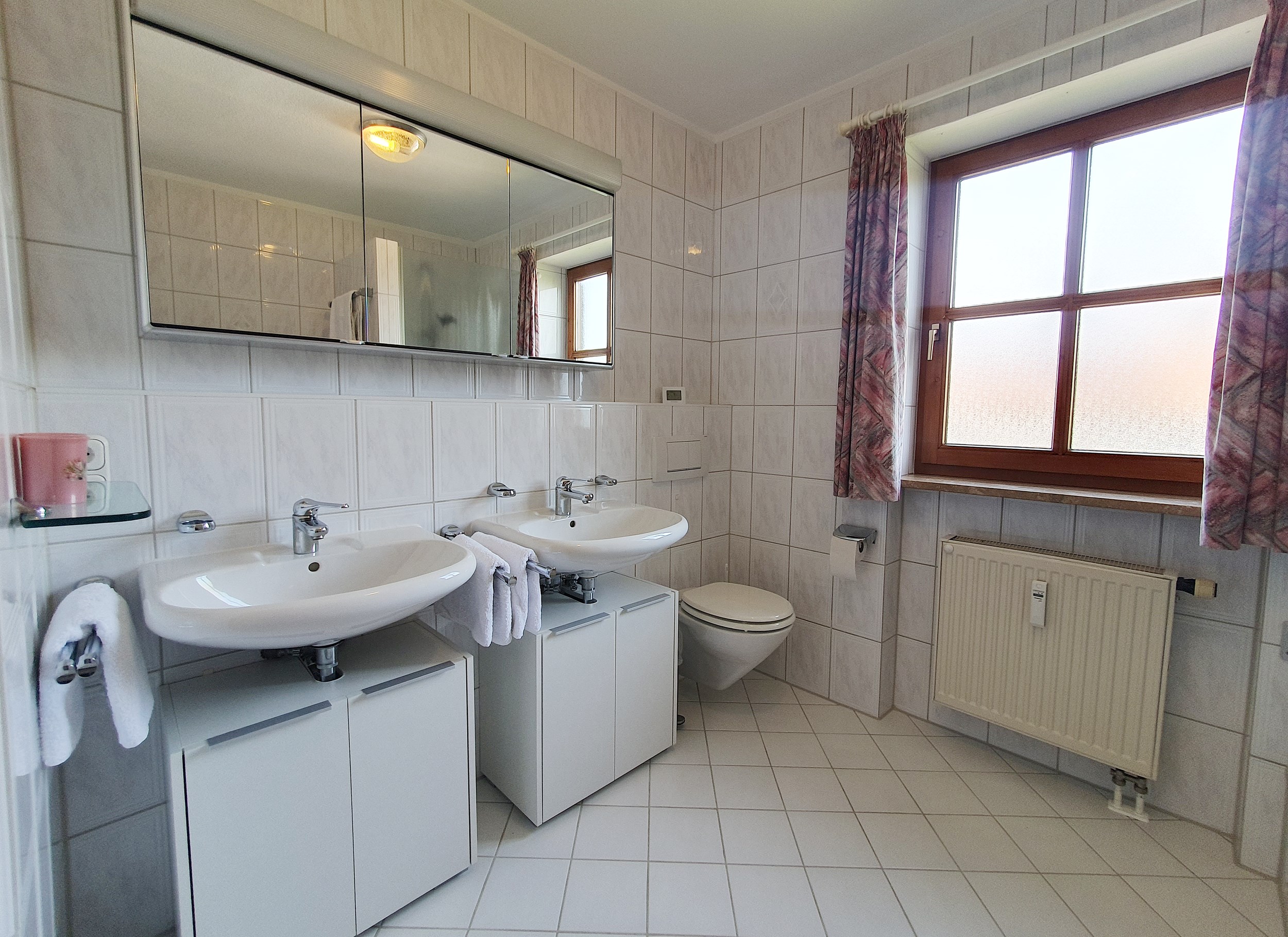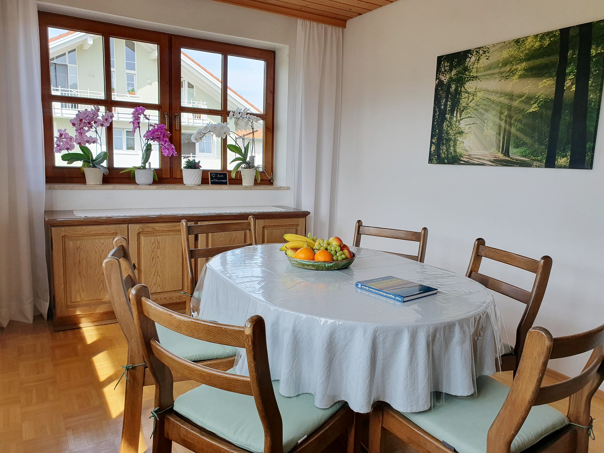 Verbringen Sie ein paar schöne Urlaubstage in der großzügig geschnittenen und lichtdurchfluteten Wohnung mit 120 qm im 1. Obergeschoss. Die Ferienwohnung verfügt über 3 Schlafzimmer, eines davon mit einem Doppelbett, die anderen mit Einzelbetten und einem zusätzlichen Kinderbett. Die 2022 neu eingebaute Küche ist ausgestattet mit einem Herd, Backofen, Kühlschrank, Geschirrspülmaschine, Wasserkocher, Kaffeemaschine, Toaster und einer Mikrowelle. Im Nebenzimmer befindet sich das Esszimmer mit Platz für die ganze Familie und Blick auf die Berge. Das Wohnzimmer mit der großen Eckcouch verfügt über einen SAT-TV. Vom Wohnzimmer und den Schlafzimmern haben Sie Zugang auf den Ost-/Südbalkon mit Blick auf die Chiemgauer Alpen. Das Badezimmer verfügt über eine Badewanne/Dusche, zwei Waschbecken und ein WC. In der Wohnung befindet sich noch ein zusätzliches WC. Ein Hauseigener Parkplatz wird Ihnen kostenfrei zur Verfügung gestellt. Kostenfreies WLAN ist in der Wohnung vorhanden. Haustiere sind nicht erlaubt. Für mitgebrachte Fahrräder steht Ihnen eine abschließbare Garage zur Verfügung.