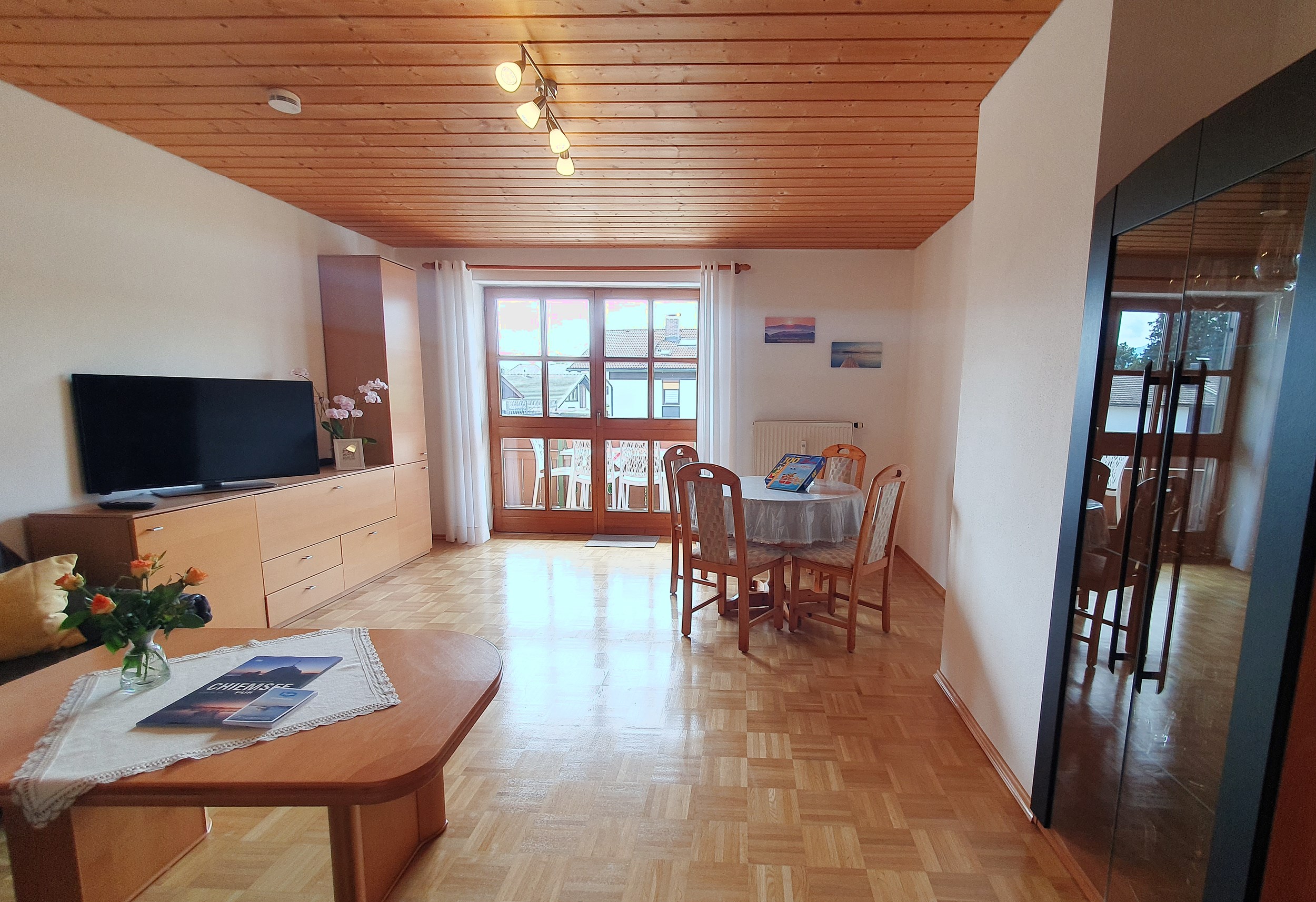 Die Ferienwohnungen sind ruhig gelegen, dennoch ist alles fußläufig erreichbar. Zum Badestrand Chiemseepark Felden spazieren Sie den Wanderweg entlang der Bernauer Ache und der Birkenallee. Im Chiemeepark Felden ist für jedes Alter etwas geboten, Spielplatz für die Kleinen, Volleyballplatz, Strandbad mit Kiosk und Bootsverleih. Die Bernauer Ortsmitte mit Restaurants und Einkaufsmöglichkeiten erreichen Sie ebenfalls schnell zu Fuß oder mit dem Rad. Von der Unterkunft aus können Sie direkt Radl- oder Bergtouren starten. Das Schloss auf der Herreninsel erreichen Sie im Sommer mit der Chiemseeschifffahrt direkt vom Chiemseepark Felden aus. Der Bahnhof ist ebenfalls fußläufig erreichbar. Es verkehren stündlich Züge in Richtung Salzburg oder München.