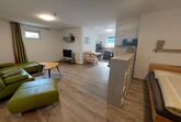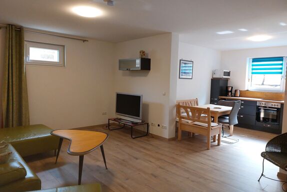 Die Ferienwohnung ist 62 m² groß, hat eine Küche mit Elektroherd, Spülmaschine, Microwelle, Kaffeemaschine, Toaster, Wasserkocher und Kühlschrank.