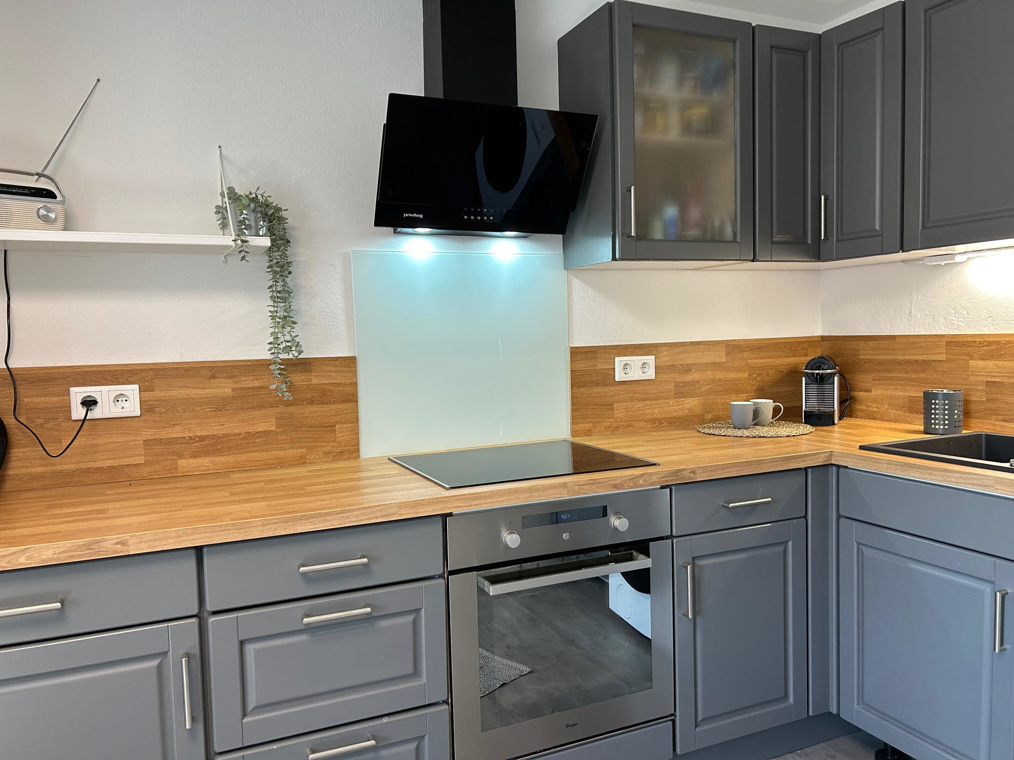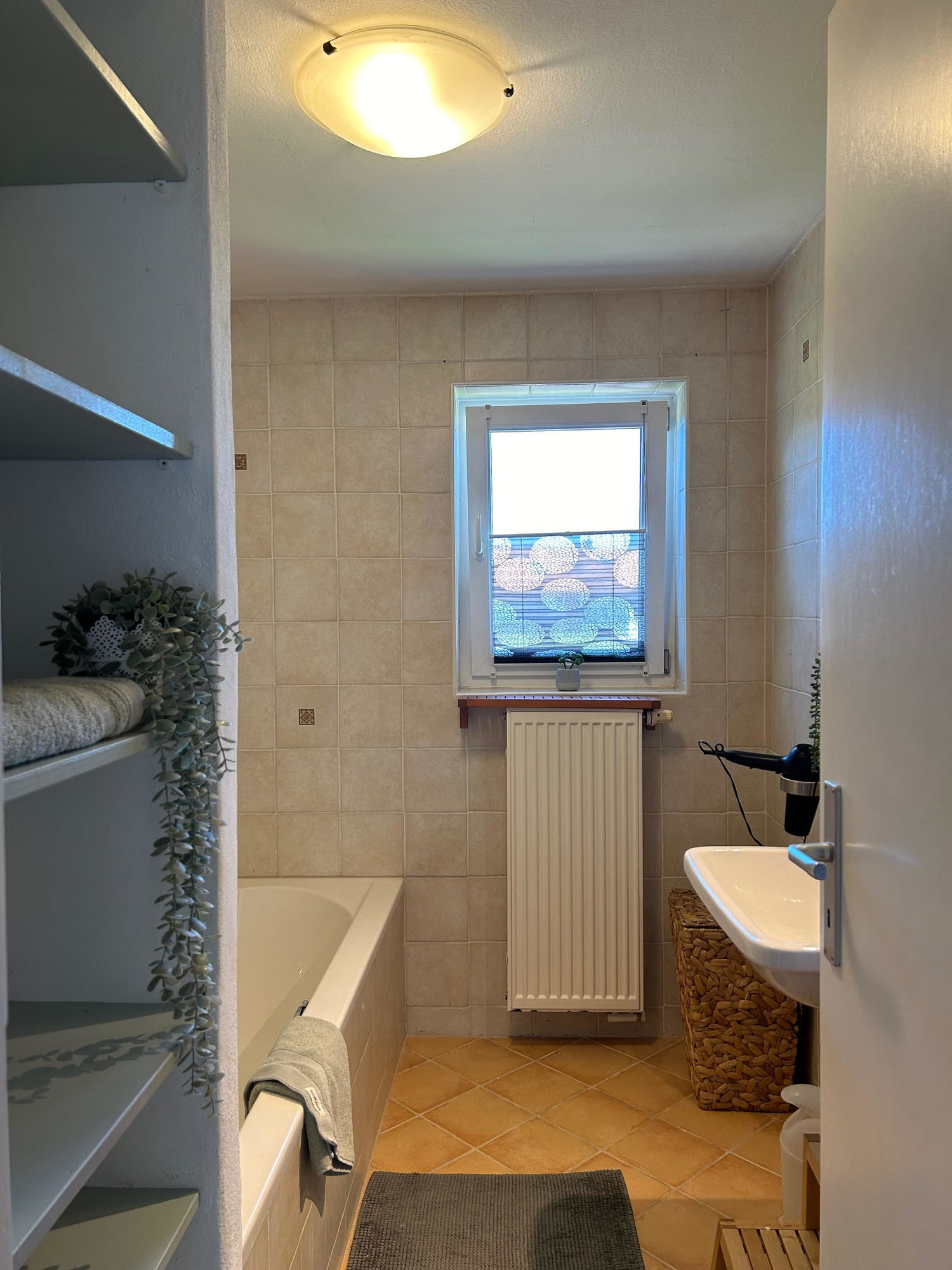 Auf der Wohnfläche von 103qm im 1. Stock befindet sich eine moderne und großzügige Küche, ein Bad mit Badewanne und ein separates WC, weshalb diese Ferienwohnung perfekt für Ihren nächsten Familienurlaub oder Ausflug mit Freunden geeignet ist.