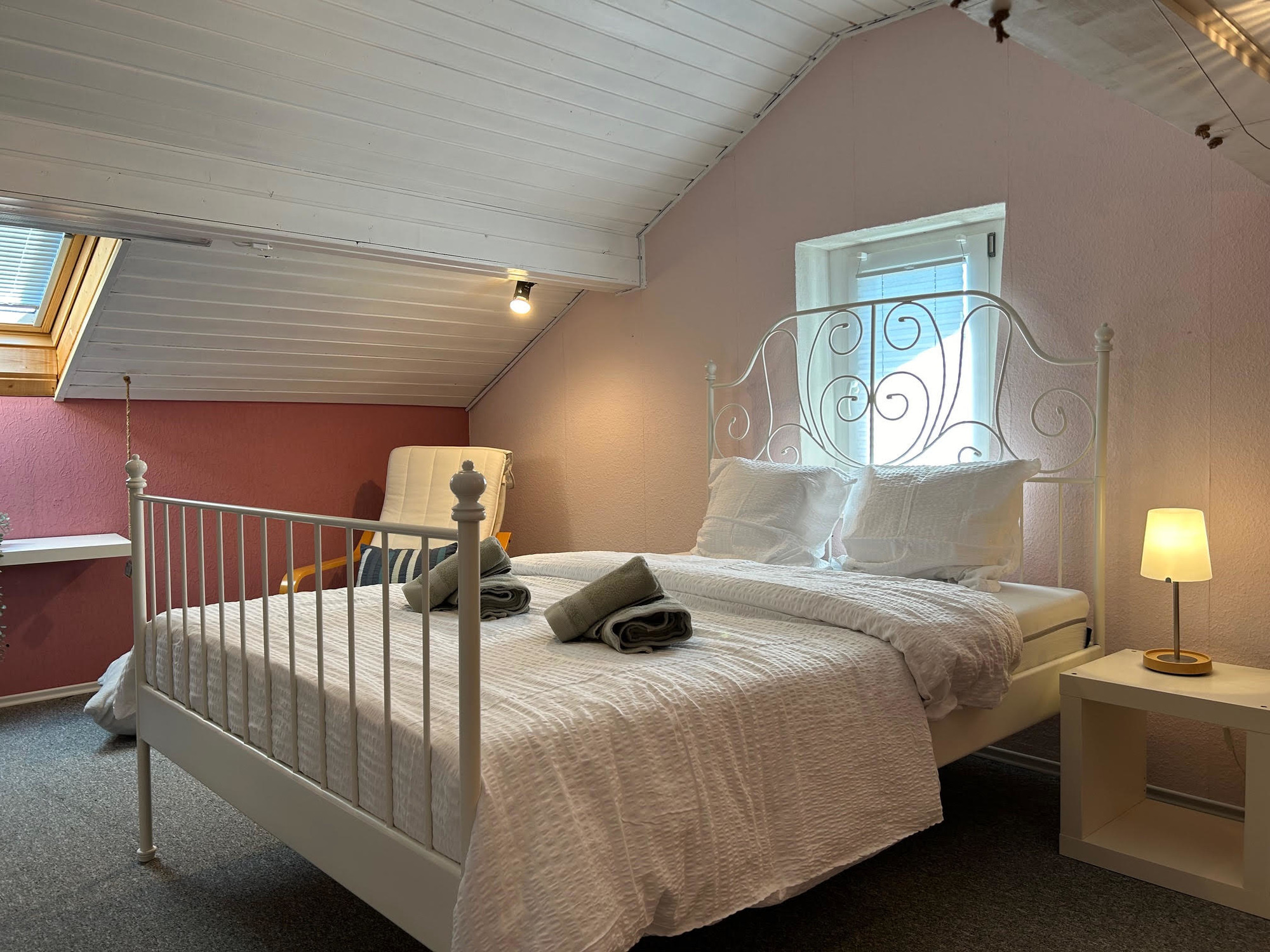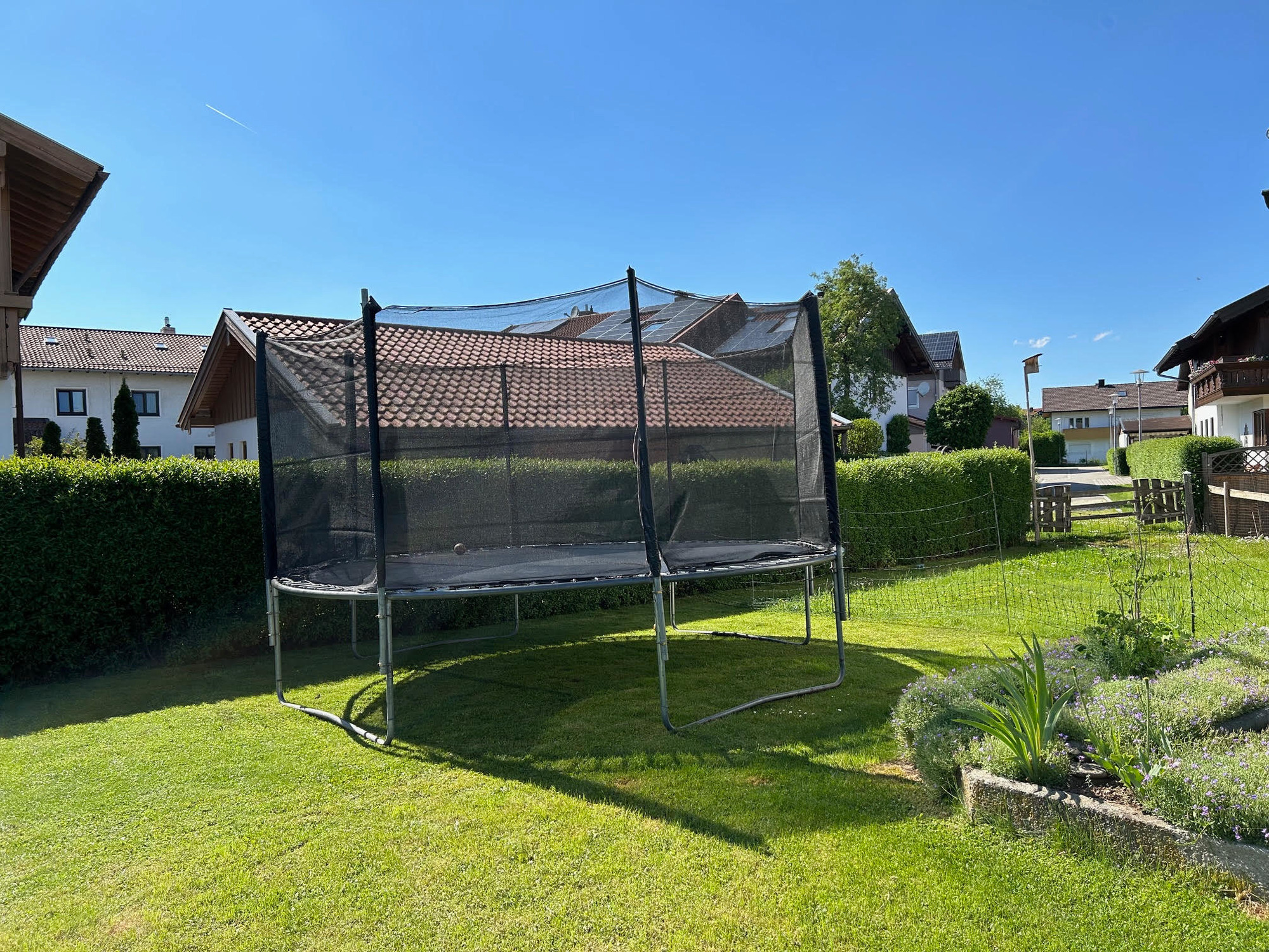 Auf der großen Veranda mit Esstisch können Sie gemütliche Mahlzeiten im Freien genießen, während die Kinder sich auf dem Trampolin im Garten, welcher zur Mitbenutzung ist, austoben. Bis zu 3 Hunde sind herzlich willkommen und es stehen zwei kostenlose Parkplätze zur Verfügung. Bettwäsche und Handtücher sind im Preis inbegriffen, und eine Waschmaschine sowie ein Trockner stehen für zusätzlichen Komfort bereit.