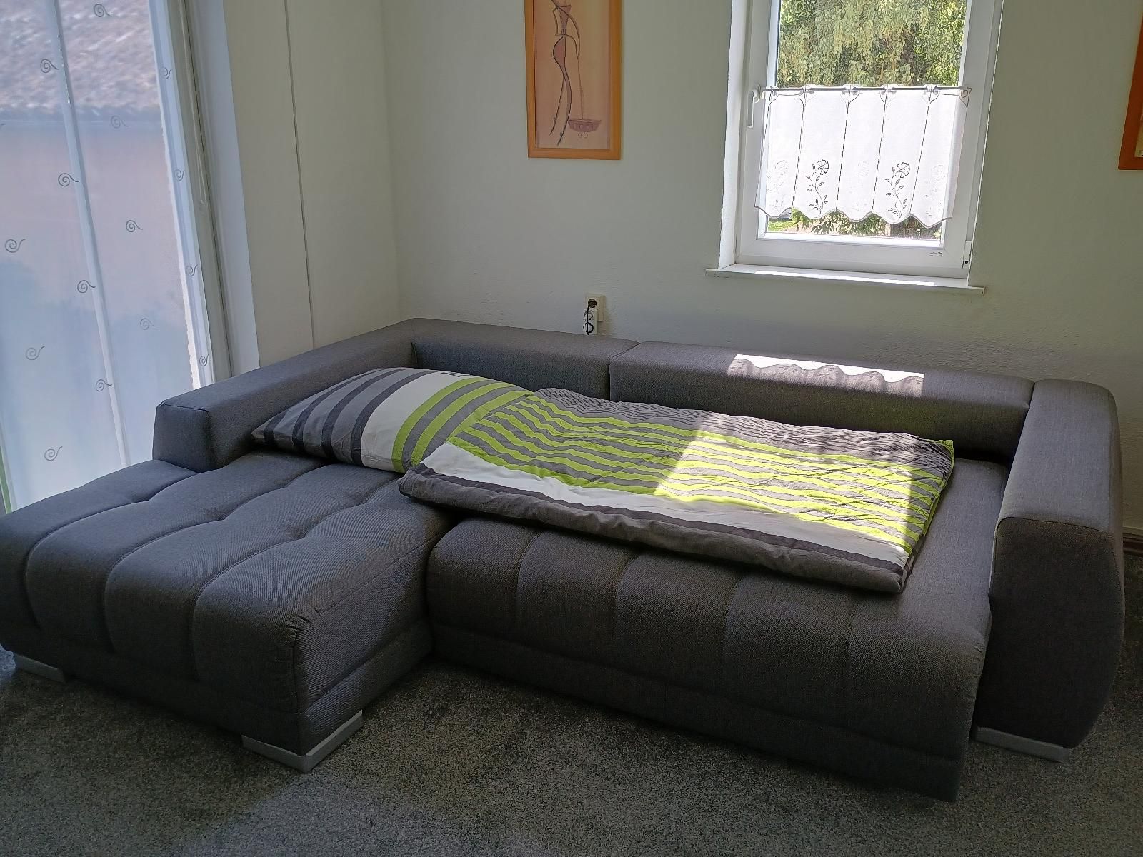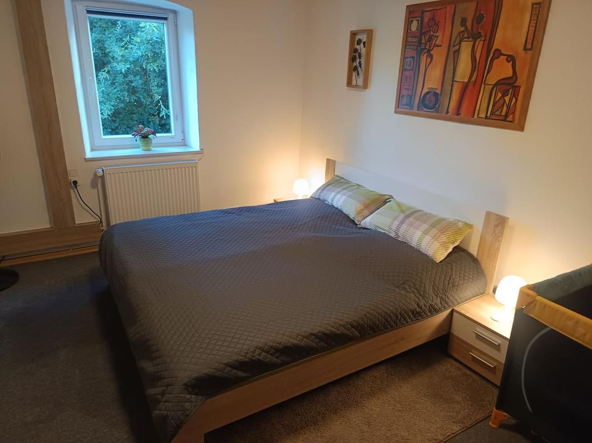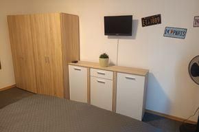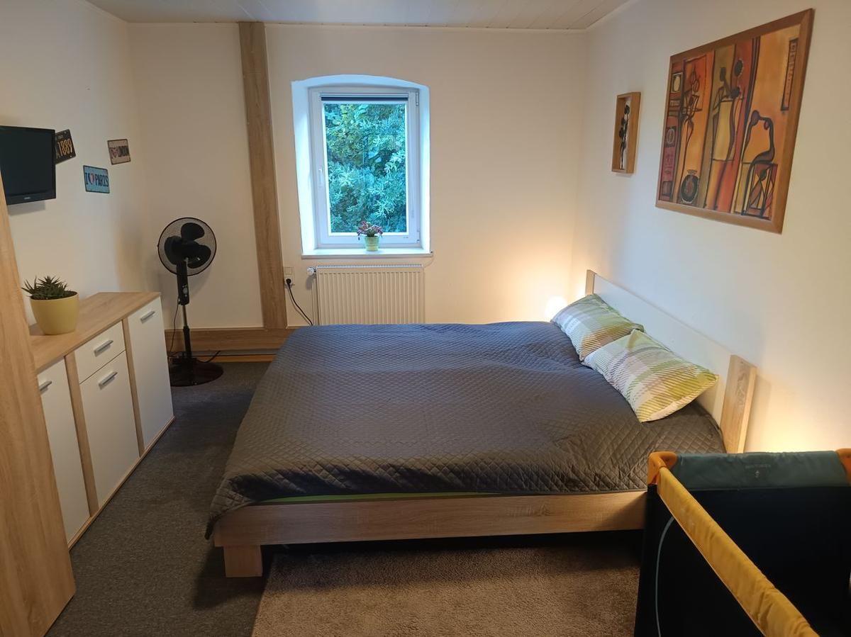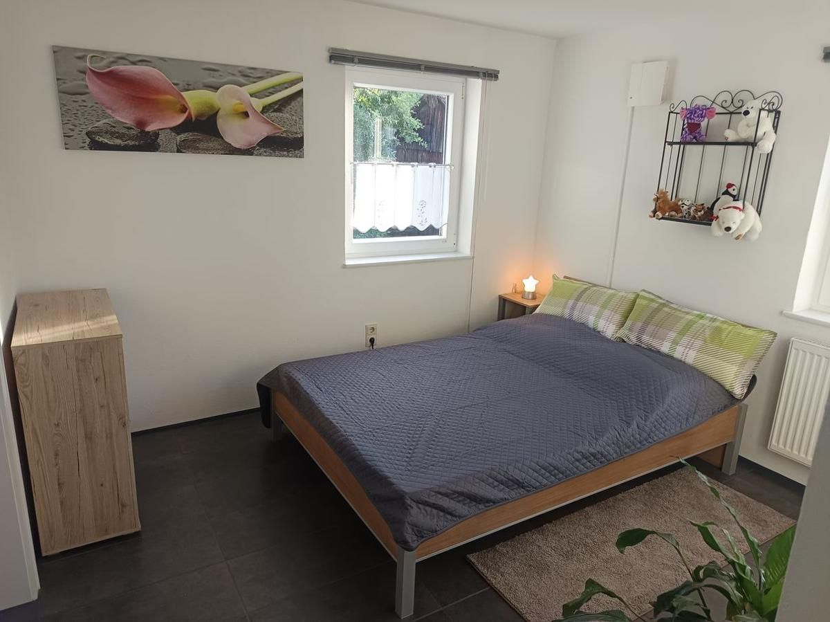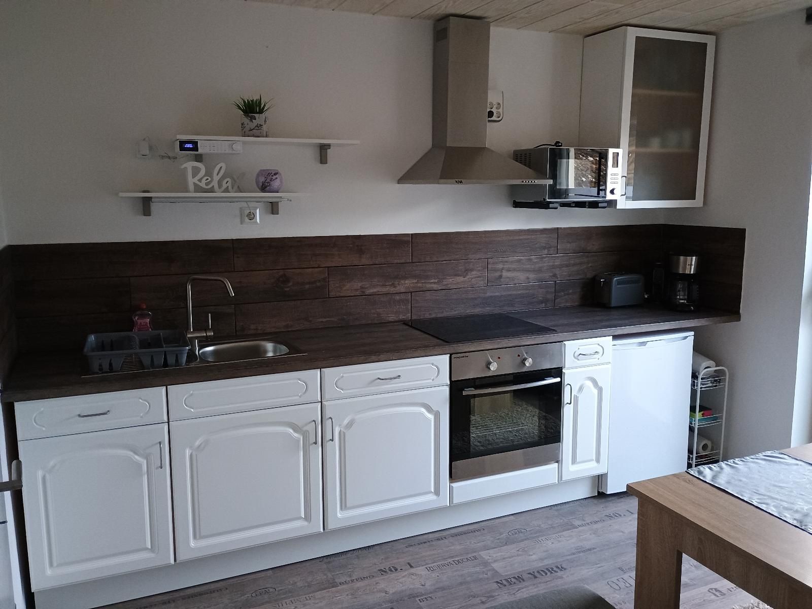 Die Ferienwohnung Zur Wacht ist 65qm groß und befindet sich im 1. Stock, ist für 5 Erwachsene Personen und ein Kleinkind ausgelegt. Im Schlafzimmer befindet sich ein Doppelbett + Babybett(Babybettdecke muss selbst mitgenommen werden) mit TV. Ein gemütlich eingerichtetes Wohnzimmer mit Schlafsofa auf dem die dritte Person schläft, mit SAT-Flachbild-TV , WLAN . Die gemütliche Wohnküche ist mit einem Esstisch, Hochstuhl für Kleinkinder, Backofen, Mikrowelle, Rührgerät, Wasserkocher, Milchaufschäumer, Kaffeemaschine, Toaster Radio Kühlschrank mit Gefrierfach und allen nötigen Küchenutensilien ausgestattet. Das Bad ist mit Dusche, (WC separat ) Fön, Waschmaschine und Handtüchern ausgestattet. Eine Kinderspielecke ist ebenfalls vorhanden mit Spielzeug. Außerdem hat die Wohnung einen eigenen Balkon mit Sitzgruppe, Sonnenschirm, und einen Gasgrill, zugleich Eingangsbereich auf dem Sie die Sonne und Ruhe genießen können. Der Haustür Eingang ist NICHT Barriere Frei, Zugang erfolgt über eine Außentreppe.