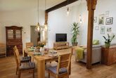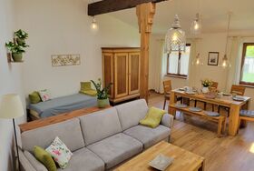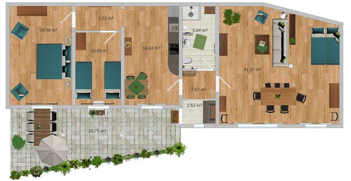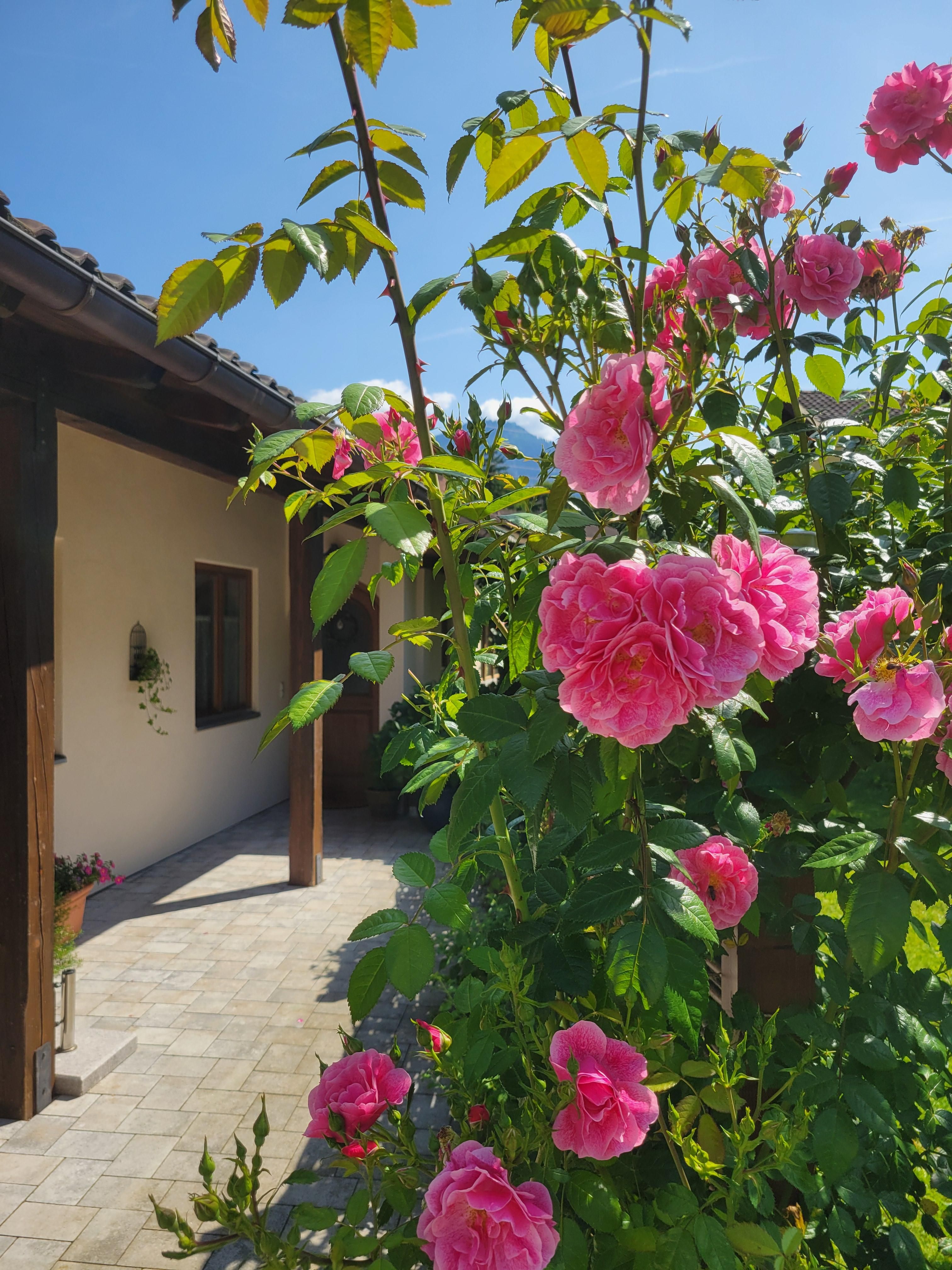 Das neu renovierte Ferienhäuschen ist mit viel Liebe zum Detail eingerichtet, voll ausgestattet und bietet viel Platz und Komfort für eine erholsame Auszeit. Den privaten Eingang erreichen Sie über die eigene teilüberdachte Terrasse mit Bergblick. Hier können Sie gemütlich Kaffee trinken, die Sonne genießen oder nach einem schönen Ausflug den Tag ausklingen lassen. Im geräumigen Wohnzimmer ist ein großer Esstisch, eine bequeme Couch und Flachbild-TV mit Satellitenanschluss. Im großen Schlafzimmer mit einem gemütlichen Doppelbett (200 x 200 cm), Kuscheldecken und Verdunkelungsvorhängen lässt es sich wunderbar träumen und entspannen. In einem weiteren Schlafzimmer befinden sich zwei Einzelbetten (90 x 200 cm). Zwei Zusatzbetten (80 x 200 cm) im Wohnzimmer können für Kinder oder Jugendliche genutzt werden. Eine gut ausgestattete moderne Landhausküche mit Essbereich bietet alles für die Zubereitung Ihrer Lieblingsgerichte. Die Kräuter auf der Terrasse können gerne zum Kochen genutzt werden. Das moderne Badezimmer mit Dusche und WC rundet die Ferienwohnung ab. Durch die Echtholzmöbel entsteht ein ländliches, natürliches Ambiente mit Wohlfühlatmosphäre. Das Ferienhaus ist ausgestattet mit Fußbodenheizung, einer steuerbaren Wohnraumlüftung sowie gratis WLAN. Ein Kinderreisebett und Hochstühle stehen bei Bedarf gerne zur Verfügung. Ihr Auto können Sie vor dem Haus auf den öffentlichen Parkplätzen gratis abstellen.