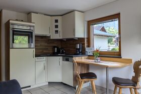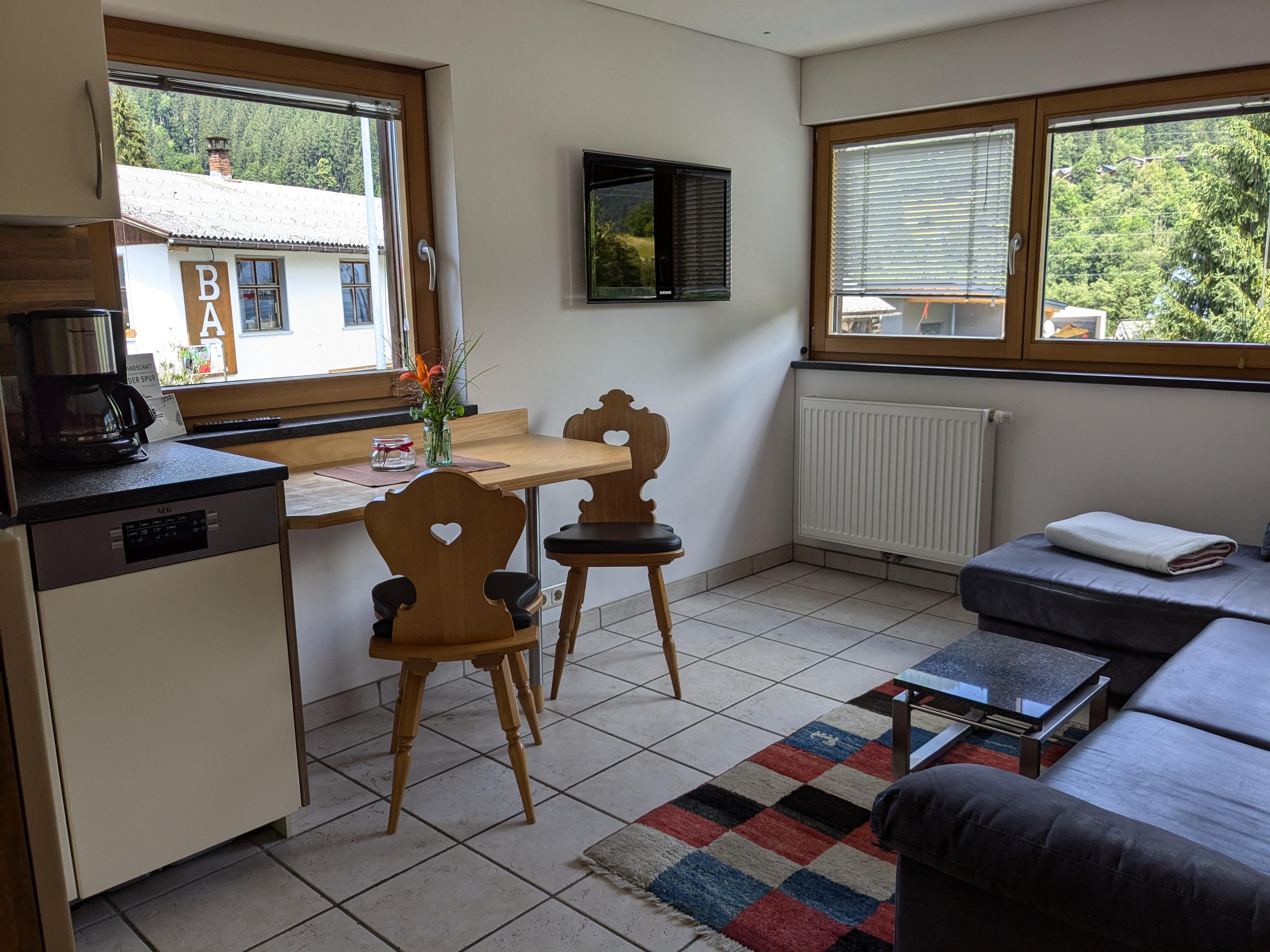 Modernes Apartment für max. 2 Personen. Ideal für ein Paar evtl. auch mit Baby, bietet dieses Aparmtent mit einem Schlafzimmer, Du/WC und Wohnküche (mit Ausziehcouch) ausreichend Platz. Die vollausgestattete, moderne Küche lässt keine Wünsche offen. Auf dem Balkon genießt Du einen herrlichen Blick auf unseren Hausberg Gweil und in unseren Garten.