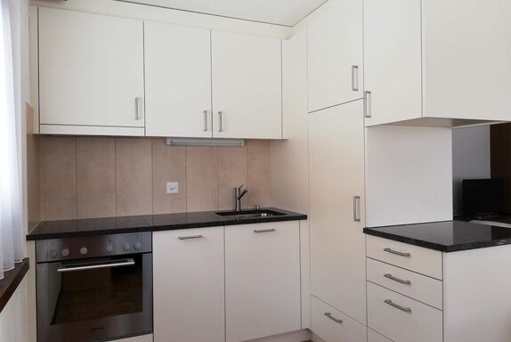 Sehr schöne 3.5-Zimmerwohnung (60 m2), 2. Stock, 2 Doppelschlafzimmer, 1 Wohn-Schlafzimmer mit 1 Bett, Flachbildschirm mit Kabel-TV, Radio, gratis WLAN, modernes Badezimmer mit Dusche/WC und Haartrockner, offene Küche mit Geschirrspüler, Backofen, Keramik Kochherd, Kühlschrank mit Gefrierfach, Wasserkocher, Essecke, Süd- und Ost-Balkon mit freier Aussicht auf die Bergwelt und Gletscher.