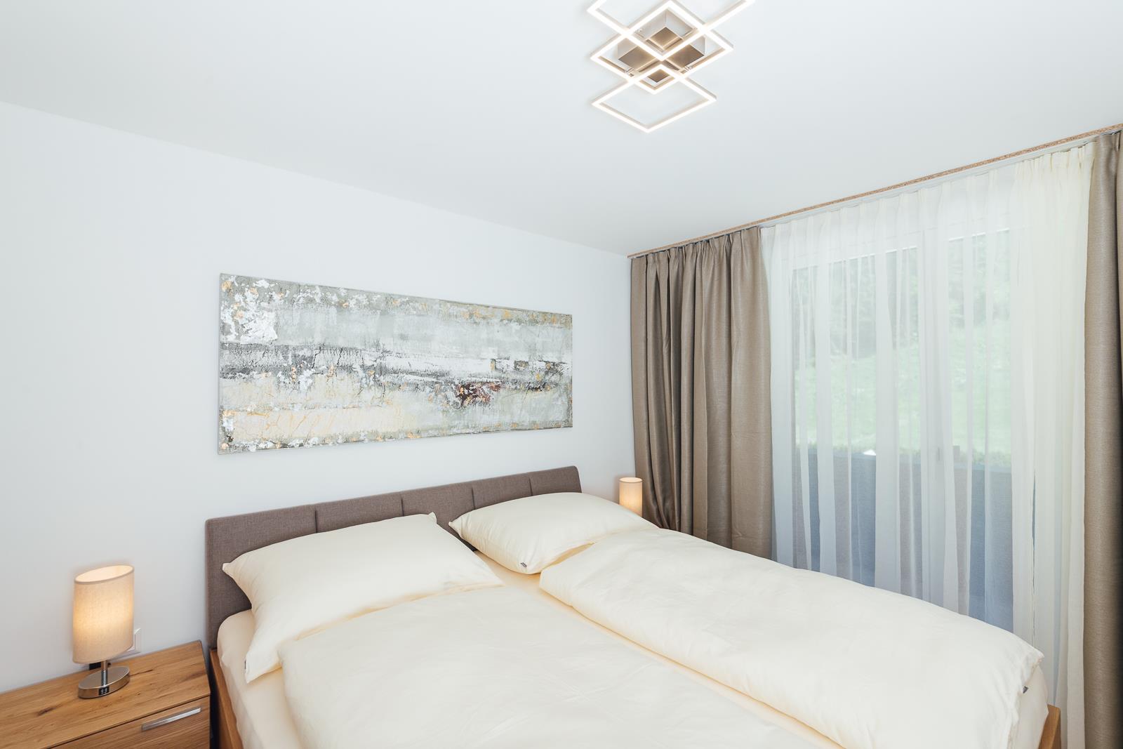 Modern eingerichtetes Appartement für 2 bis 4 Personen, Wohnzimmer mit Schlafcouch, Schlafzimmer, Badezimmer und Küchenzeile