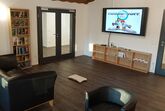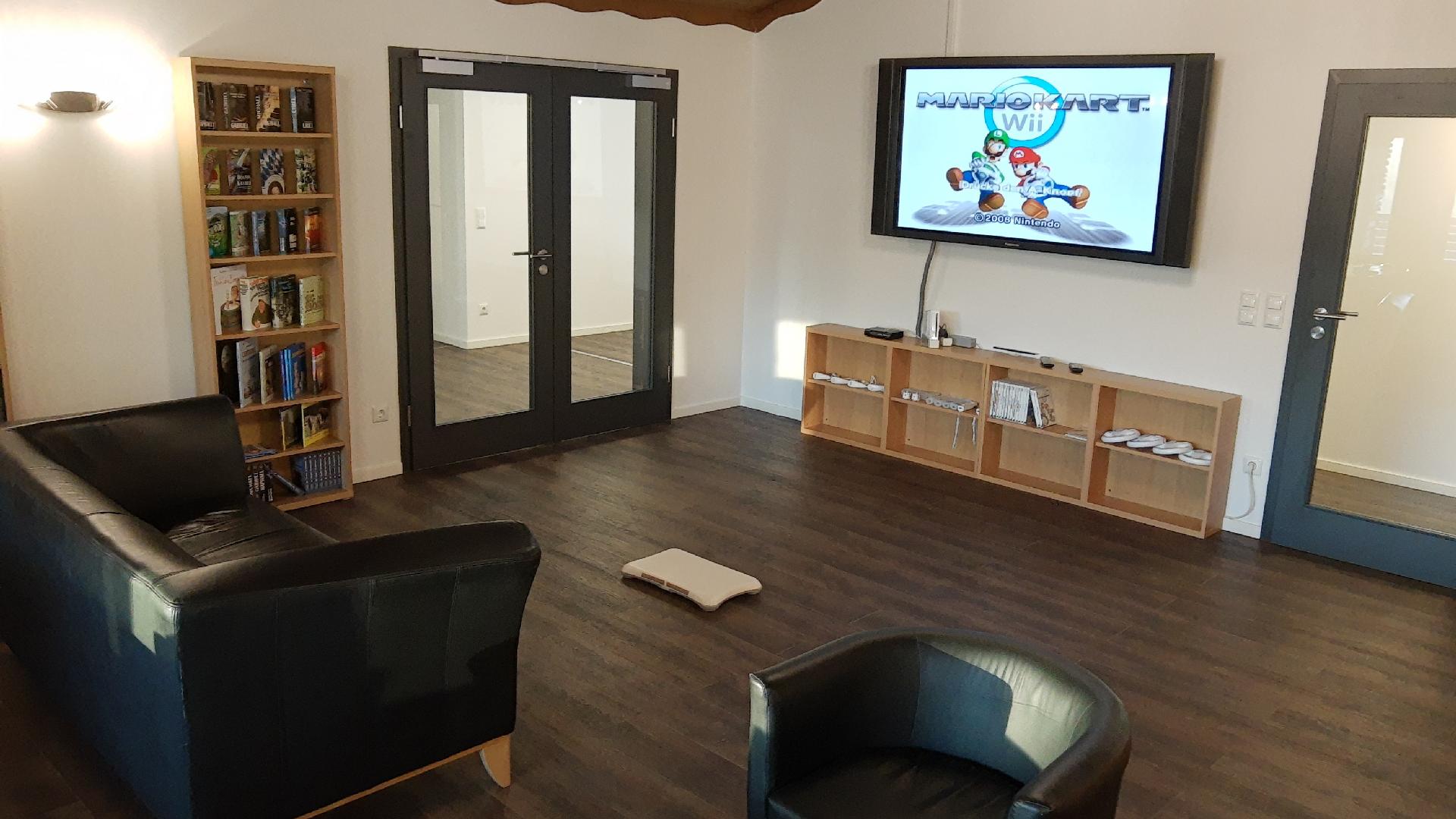 Bei schlechtem Wetter, nach einsamen Wanderungen, wenn´s draußen saukalt ist oder einfach aus Lust, nicht in den eigenen vier Wänden hocken zu wollen und lieber andere Gäste kennen zu lernen, bietet unsere Buch- und Spiel-Bar ein paar Möglichkeiten. Eine Wii mit Spielen und Zubehör, einen 65 Zoll Flatscreen TV, einige Gesellschaftsspiele und ca. 300 Bücher laden ein, zu schmökern, zu spielen, sich zu treffen. Auch für Treffen befreundeter Gäste bei gemeinsamen Aufenthalten bietet sich der Raum an - gern auch zum gemeinsam Essen (gekocht und vorbereitet wird in der eigenen Ferienwohnung).