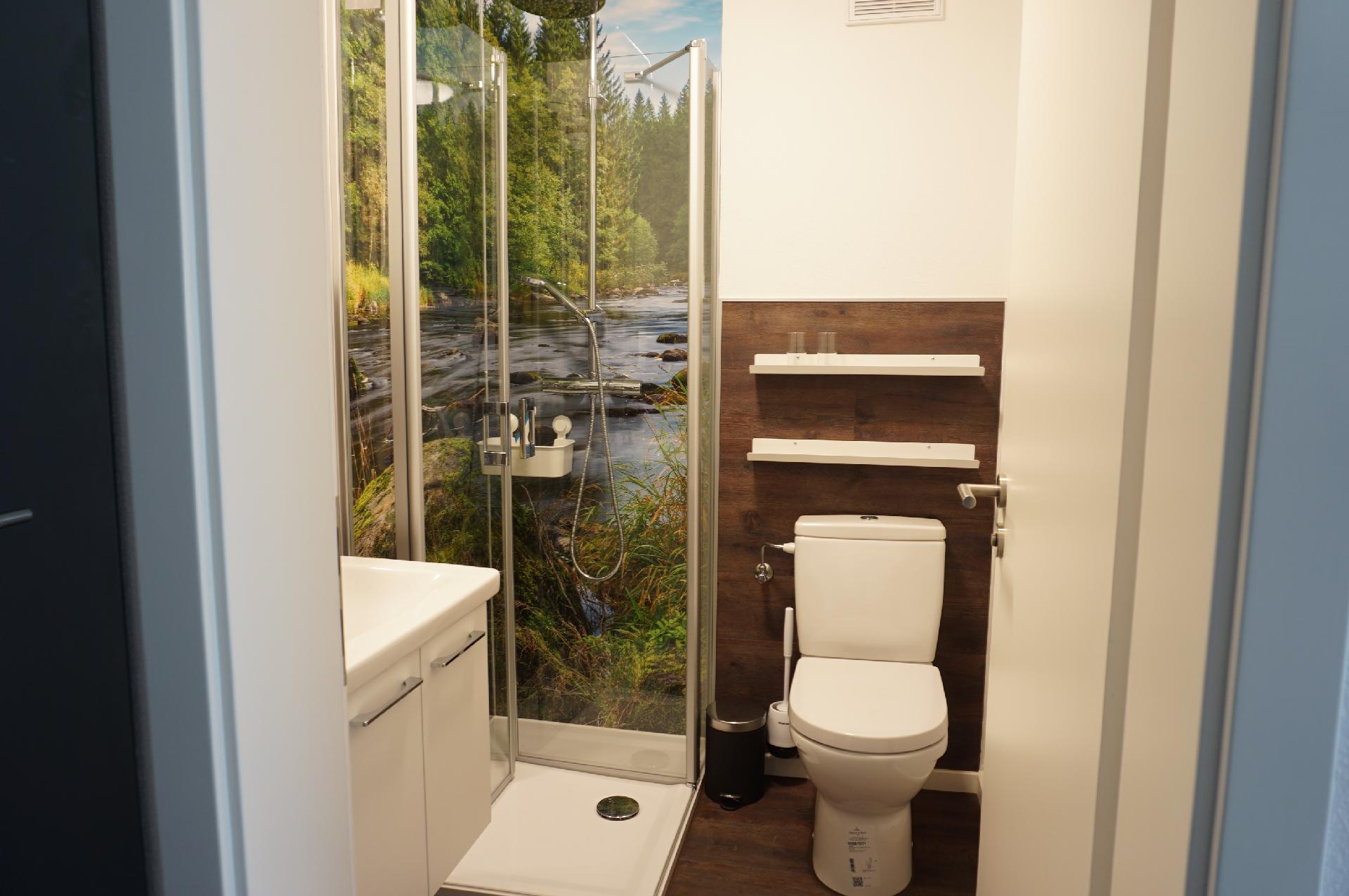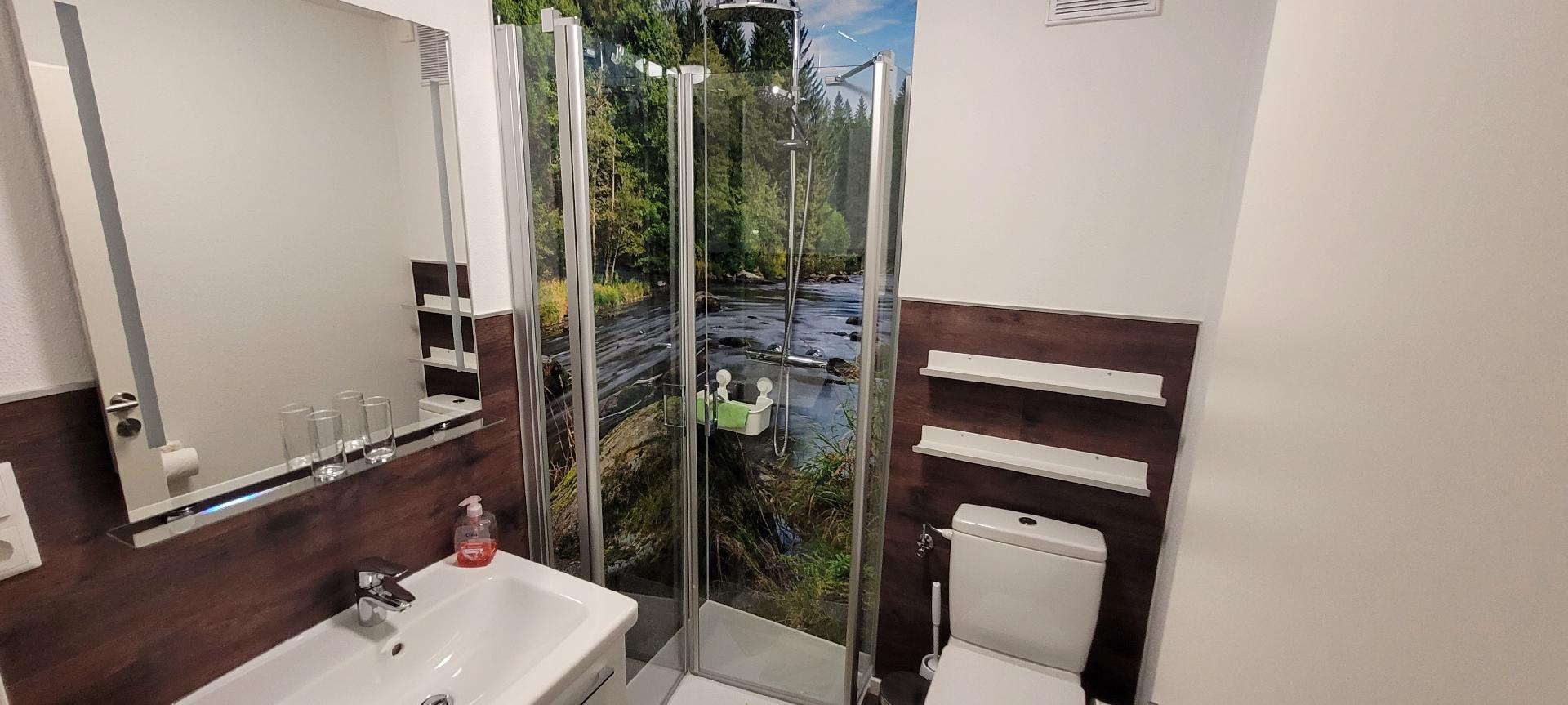 Bad/WC: Dusche; Föhn; Toilette; Waschbecken