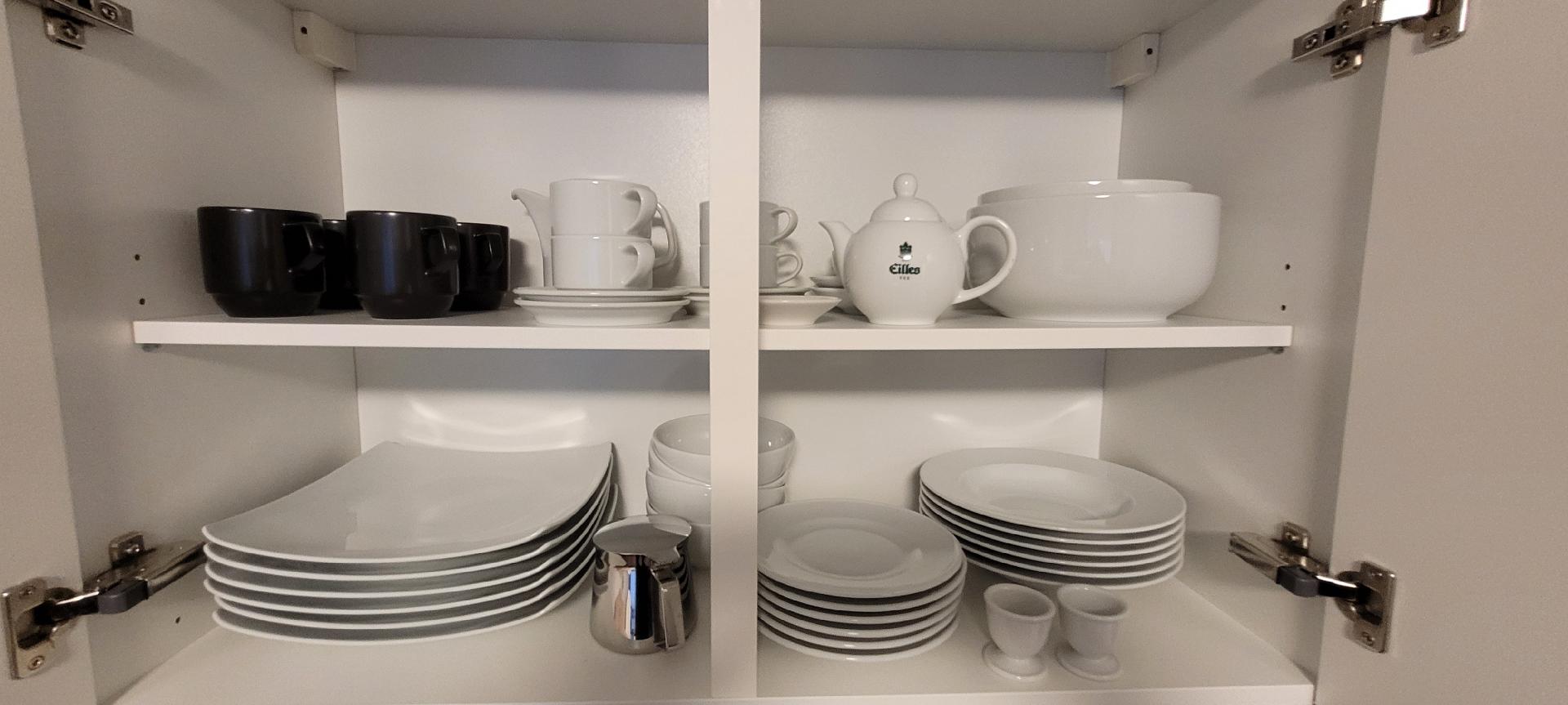 Die Küchenzeilen sind mit allem, was man braucht ausgestattet, inklusive Kühl-/Gefrierschrank und Microwelle mit Grill, in den 1-Zimmer-Studios ein 2-Platten-Kochfeld und in allen 2-Zimmer Apartments ein 4-Platten-Kochfeld und zusätzlich eine Spülmaschine. In der Familienwohnung auch einen Backofen. In allen Wohnungen finden Sie Toaster, Wasserkocher, Senseo-Pad-Kaffeemaschine, Microwelle mit Grillfunktion, Geschirr, Besteck, Töpfe, Pfanne, Nudelsieb, scharfes Kochmesser, Brotmesser, Schneidebrett, Topflappen, Dosenöffner, Korkenzieher, Wasser,- Rotwein- und Biergläser, Spüli, Spültabs, Geschirrtücher, -Bürste und -Lappen, Kehrbesen und Schaufel ...
