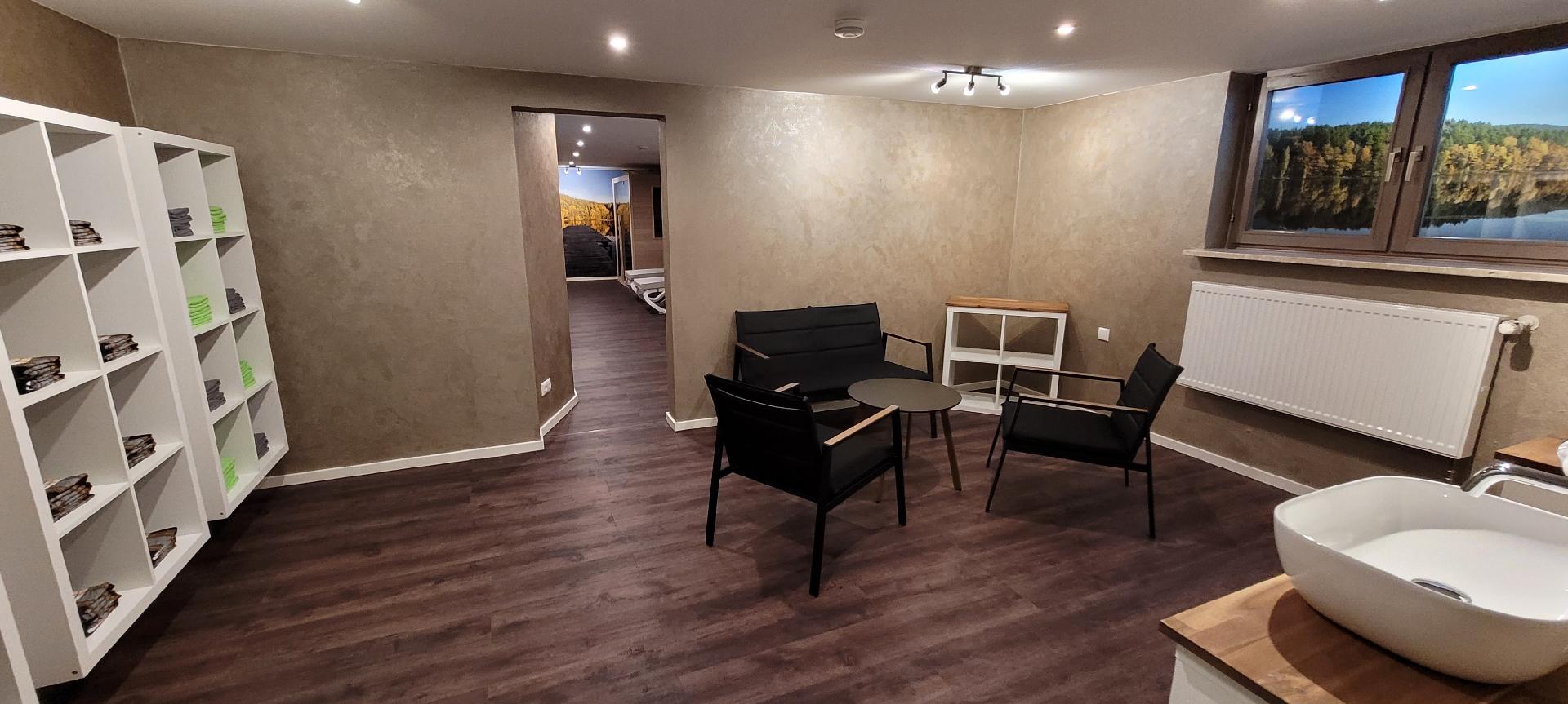 Ende 2021 wurde unser Saunabereich endgültig fertig gestellt. Der 75 Quadratmeter große Bereich lädt mit zwei großzügigen Duschen, einem kleinen Aufenthaltsbereich und sechs bequemen Ruheliegen zum Aufwärmen und Entspannen ein. Neben der klassischen finnischen Sauna gibt es eine tolle Infrarot-Kabine für zwei Personen. Heißwasser und Tee gibt´s kostenfrei, Saunatücher ebenfalls. Mitzubringen sind Bademäntel und Badeschläppchen.