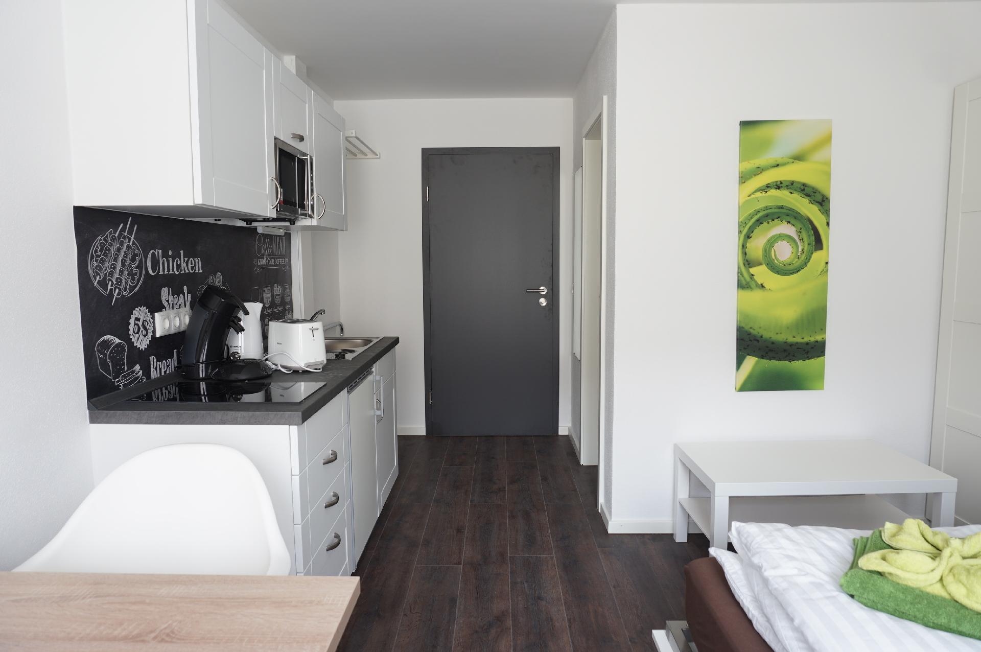 Kochen: 2-Plattenherd; Ceranherd; Gefrierfach; Herd; Kaffeemaschine; Kaffeepadmaschine; Kühlschrank; Mikrowelle; Wasserkocher