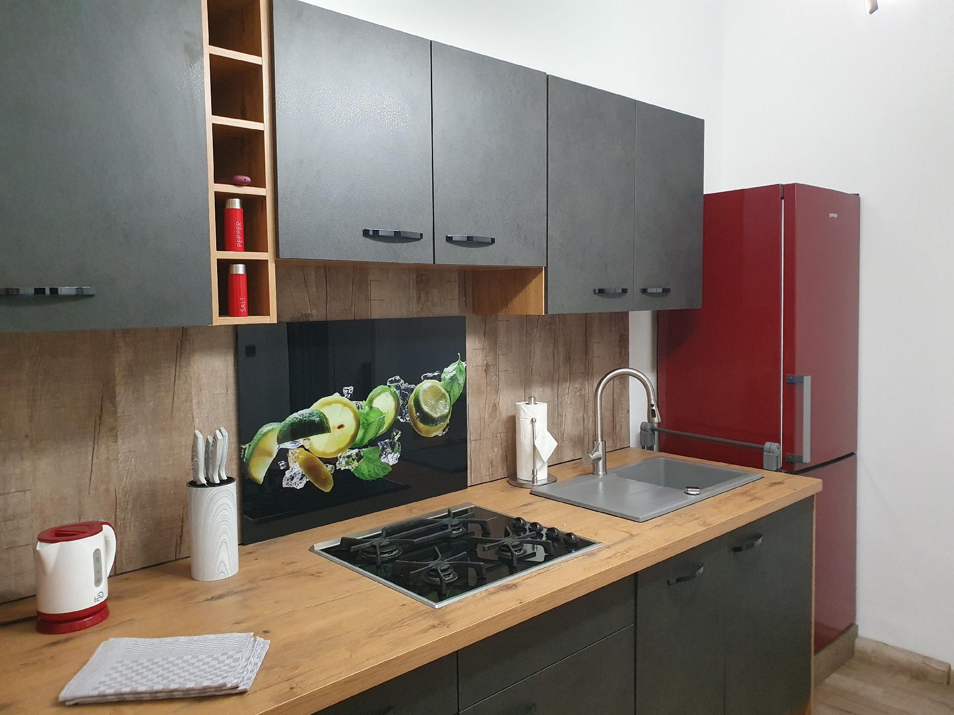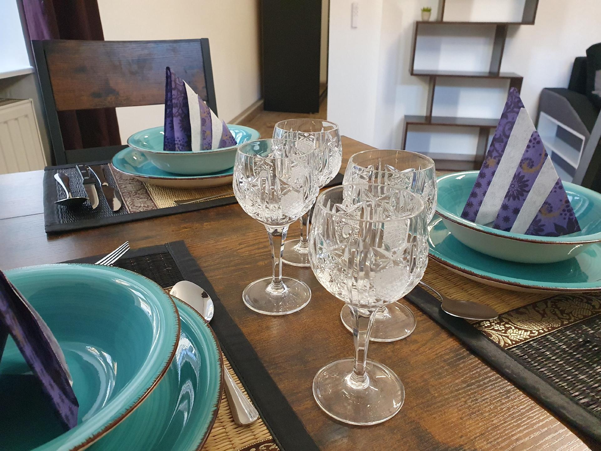 Voll ausgestattete Wohnung für 4 Personen, mit Herd, 20l Mini-Backofen/ Airfryer, Mikrowelle, Toaster, Fön, TV, Geschirrspüler, Waschmaschine mit Trockner, Bügeleisen, Babybett, Geschirr, Besteck, Bettzeug, Handtüchern, Shampoo, Erste Hilfe Set usw.