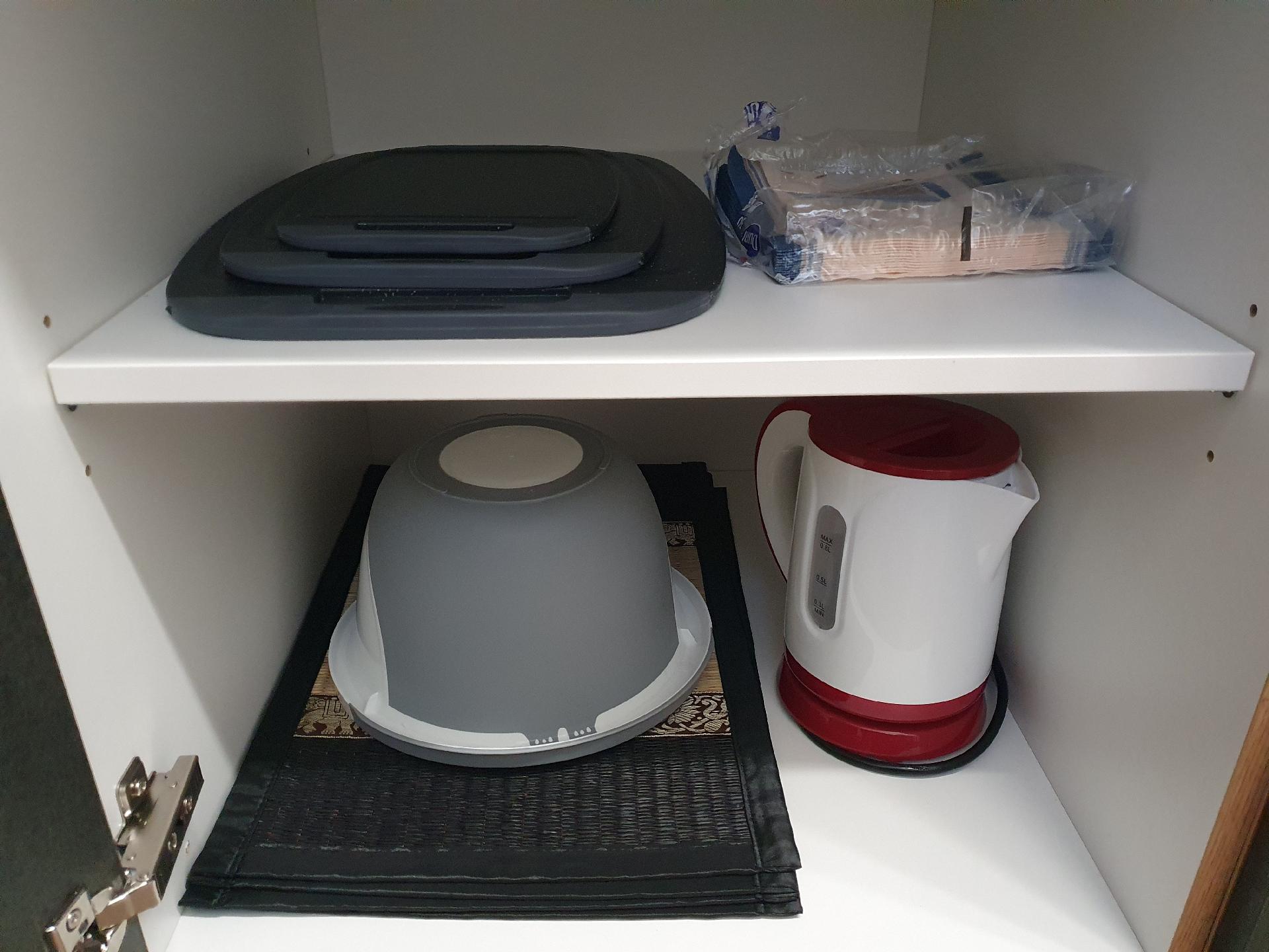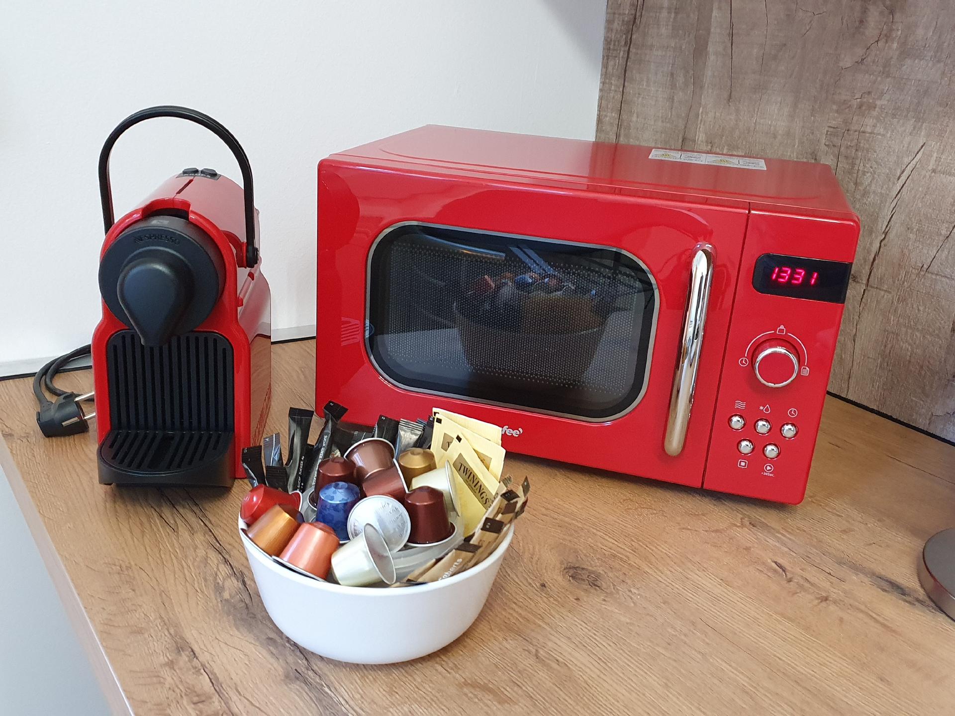 Kochen: Gasherd; Gefrierfach; Kaffekapselmaschine; Kühlschrank; Mikrowelle; Minibackofen; Spülmaschine; Tiefkühlschrank; Toaster; Wasserkocher