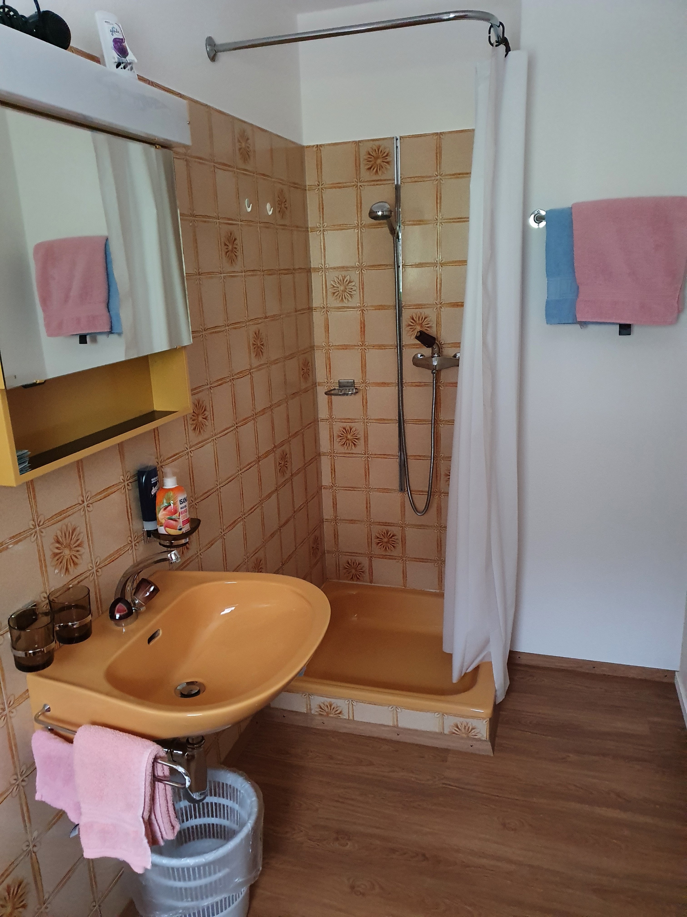 1 Doppelzimmer mit Dusche, Lavabo und WC im Zimmer.