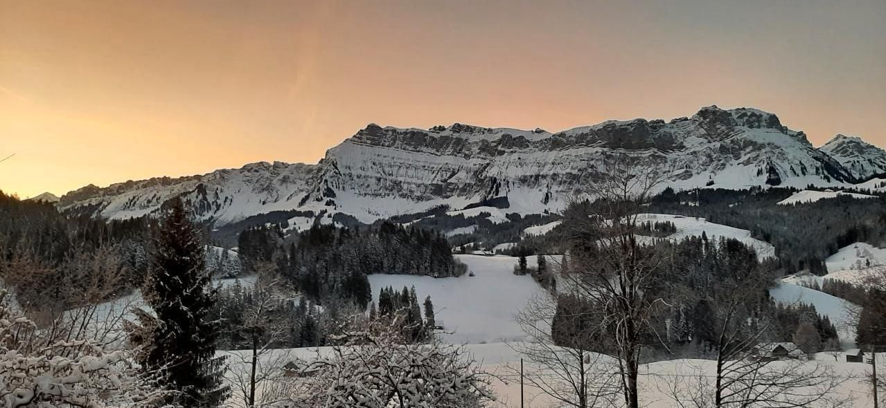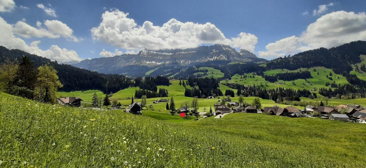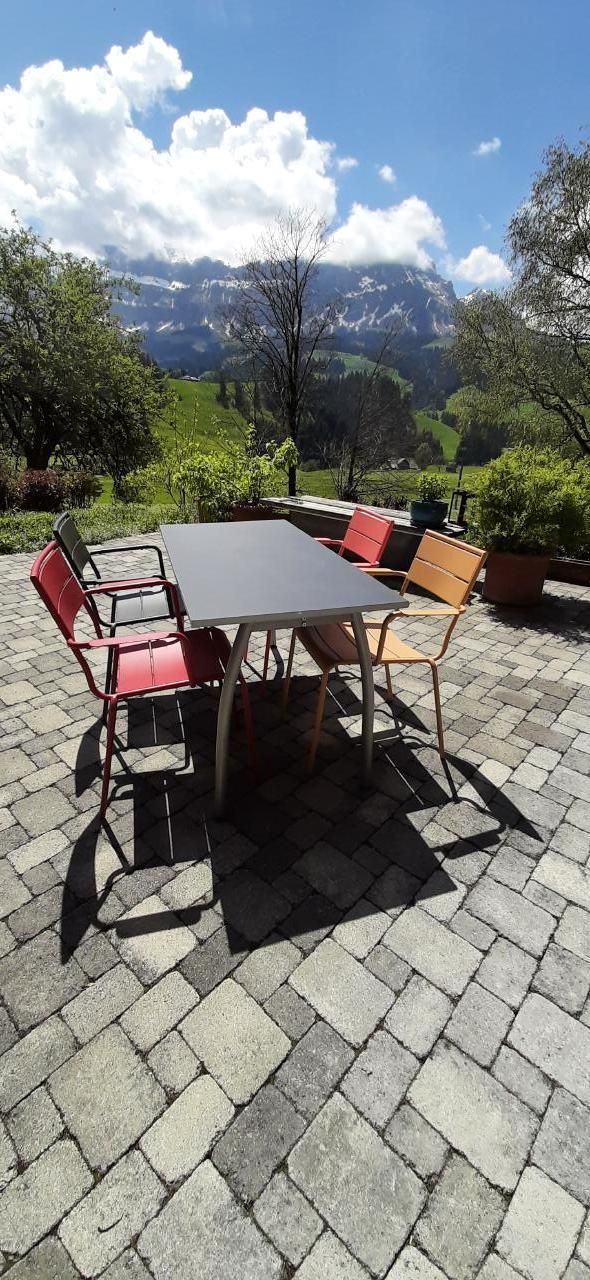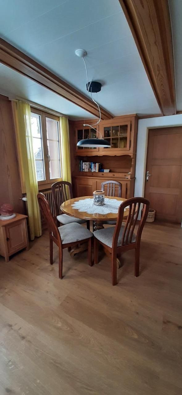 Im Außenbereich wartet eine große Sonnenterrasse mit direktem Blick auf das beeindruckende Voralpengebirge, den Hohgant auf Sie. Die umliegenden Wiesen und die Umgebung des Hauses laden zum Verweilen und Ausruhen in der idyllischen Landschaft ein. Da können Sie die Ruhe vollends auf sich wirken lassen.