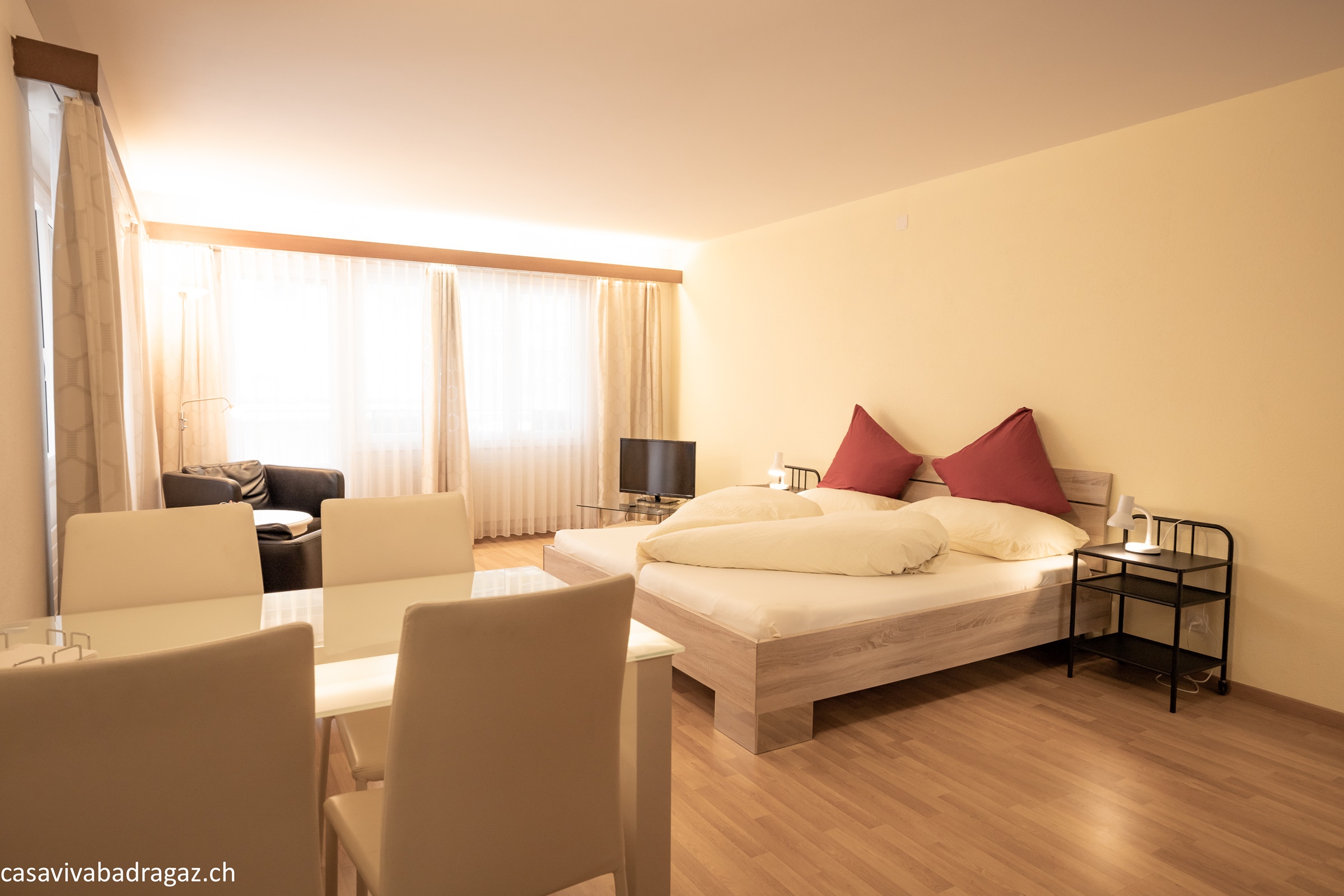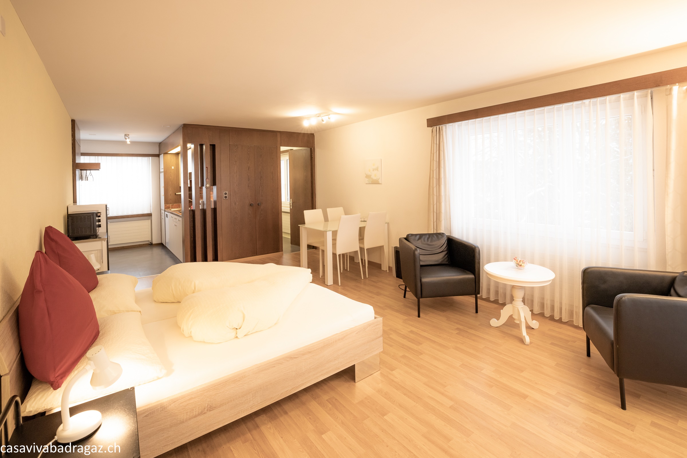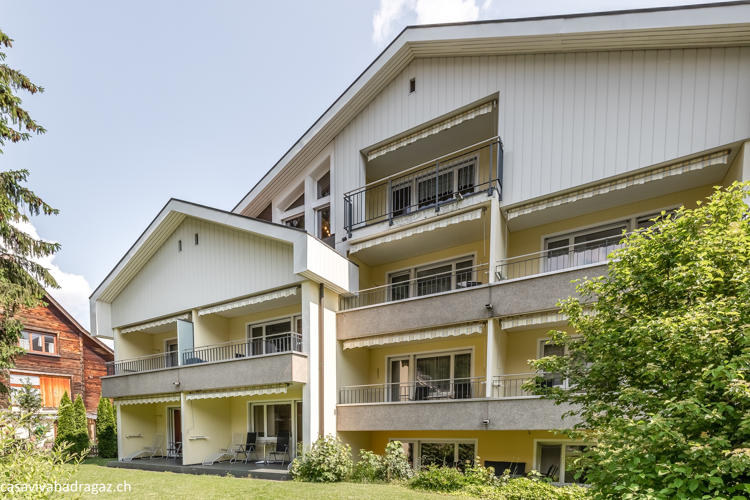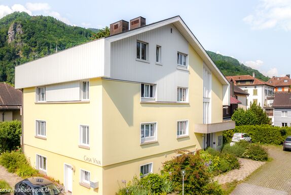 Das Casa Viva mit seinen 8 Wohnungen befindet sich in der Fläscherstrasse 21B im Dorfzentrum von Bad Ragaz. Das ruhig gelegene Mehrfamilienhaus verfügt über einen wunderschönen Garten. Die Thermalbäder, diverse Einkaufsmöglichkeiten sowie der Bahnhof SBB sind nur wenige Gehminuten entfernt. Parkplätze stehen Gästen kostenlos zur Verfügung. Waschmaschine und Tumbler stehen Ihnen ebenfalls zur Verfügung. Haustiere sind auf Anfrage tails zu den einzelnen Wohnungen:6x Studios (ca. 40 m2)2x Apartments (ca. 60 m2)Inneneinrichtung