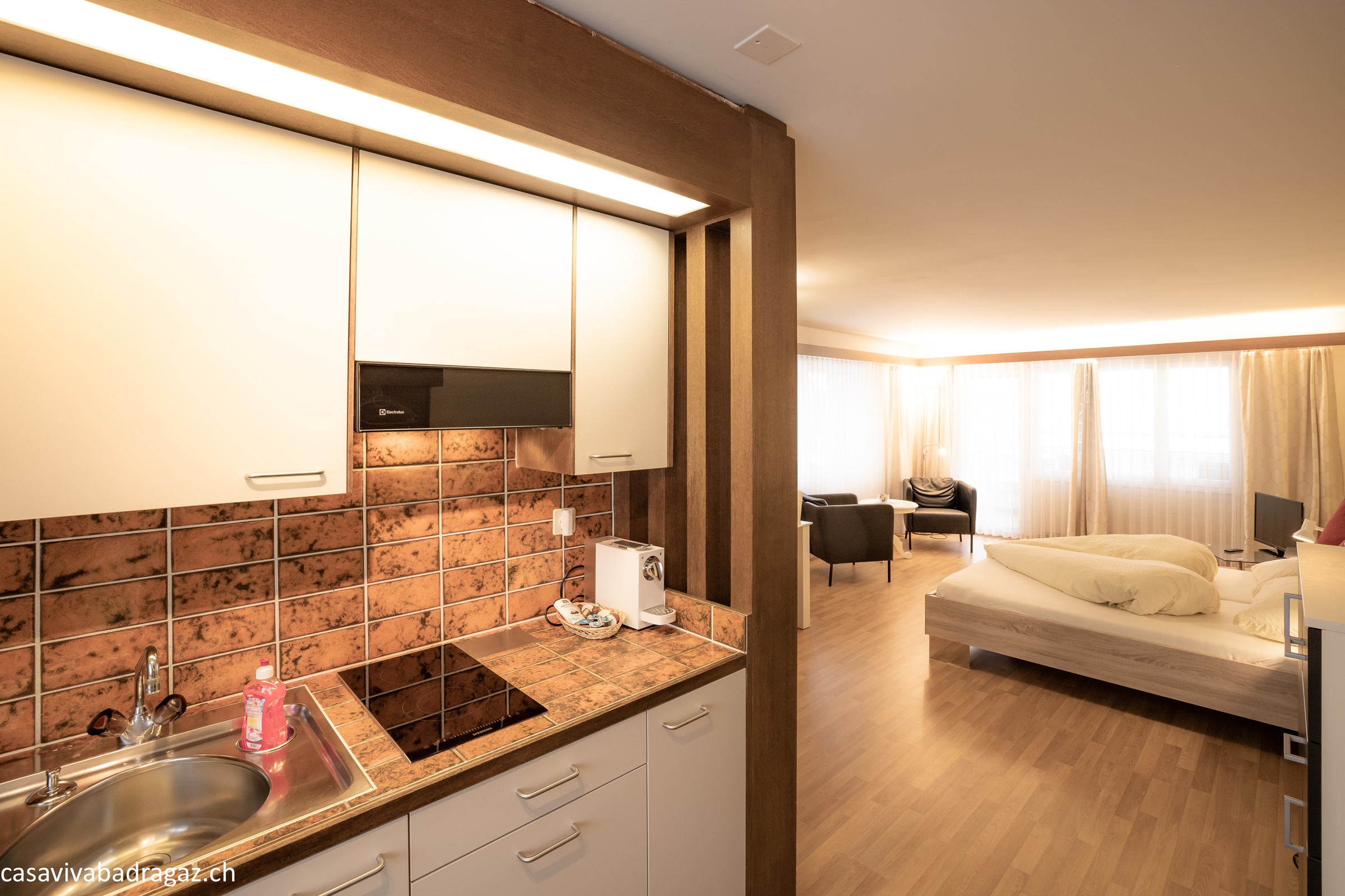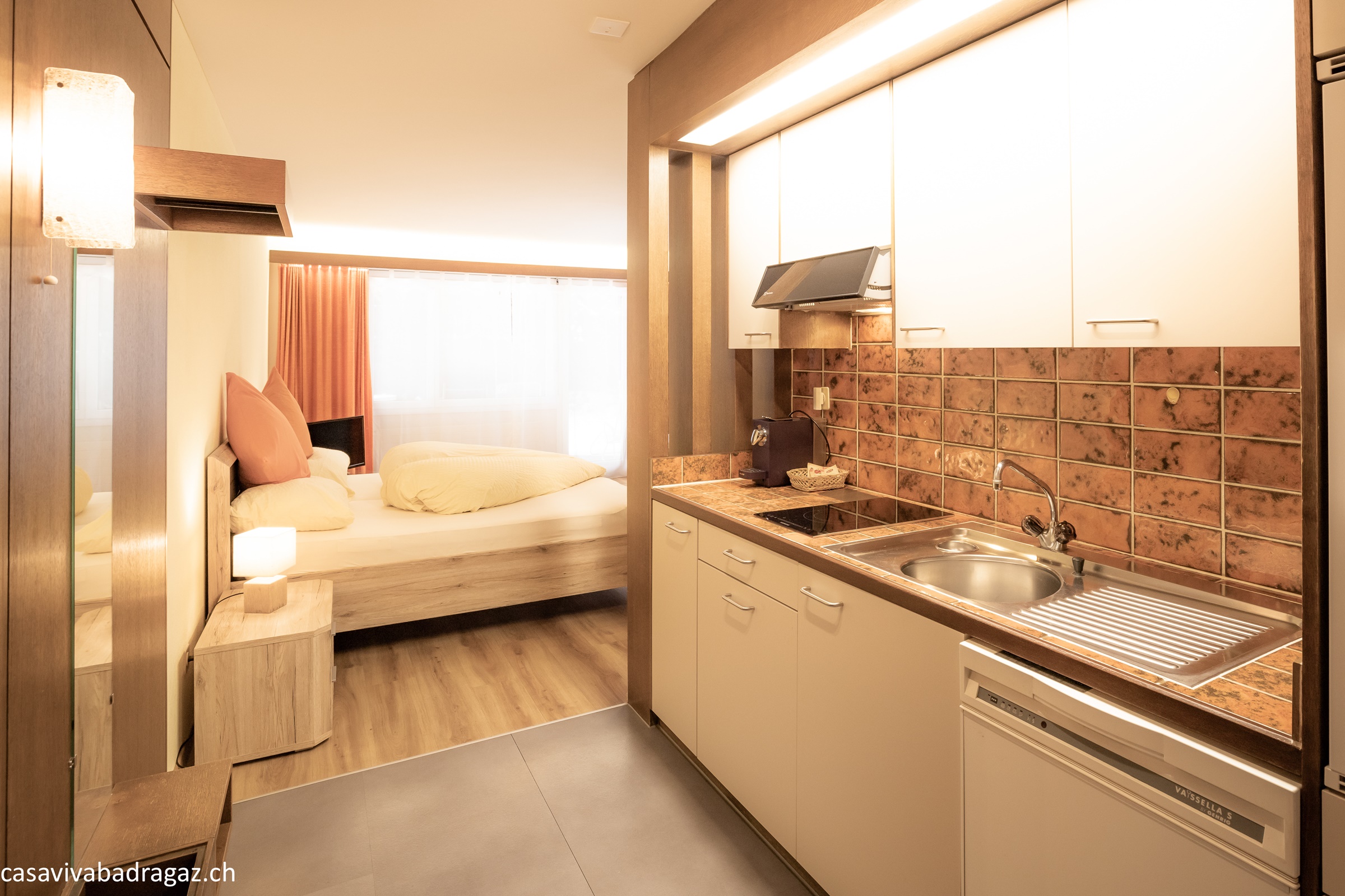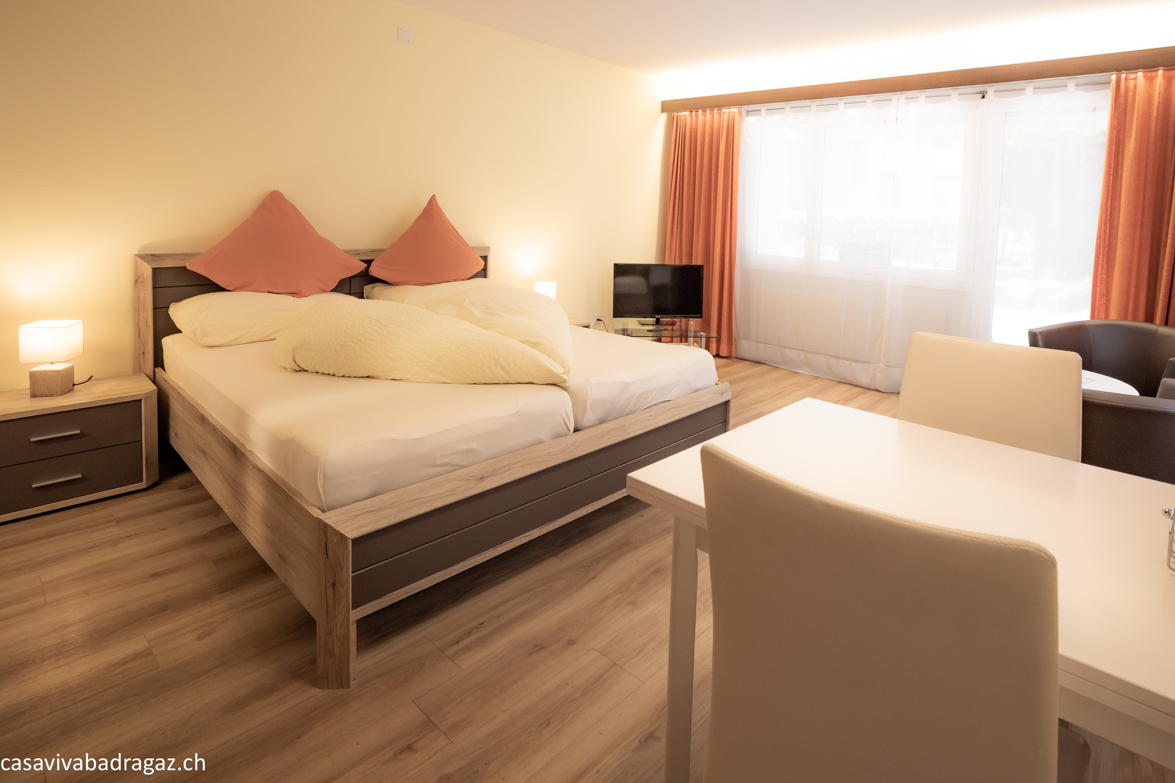 Das Casa Viva mit seinen 8 Wohnungen befindet sich in der Fläscherstrasse 21B im Dorfzentrum von Bad Ragaz. Das ruhig gelegene Mehrfamilienhaus verfügt über einen wunderschönen Garten. Die Thermalbäder, diverse Einkaufsmöglichkeiten sowie der Bahnhof SBB sind nur wenige Gehminuten entfernt. Parkplätze stehen Gästen kostenlos zur Verfügung. Waschmaschine und Tumbler stehen Ihnen ebenfalls zur Verfügung. Haustiere sind auf Anfrage tails zu den einzelnen Wohnungen:6x Studios (ca. 40 m2)2x Apartments (ca. 60 m2)Inneneinrichtung