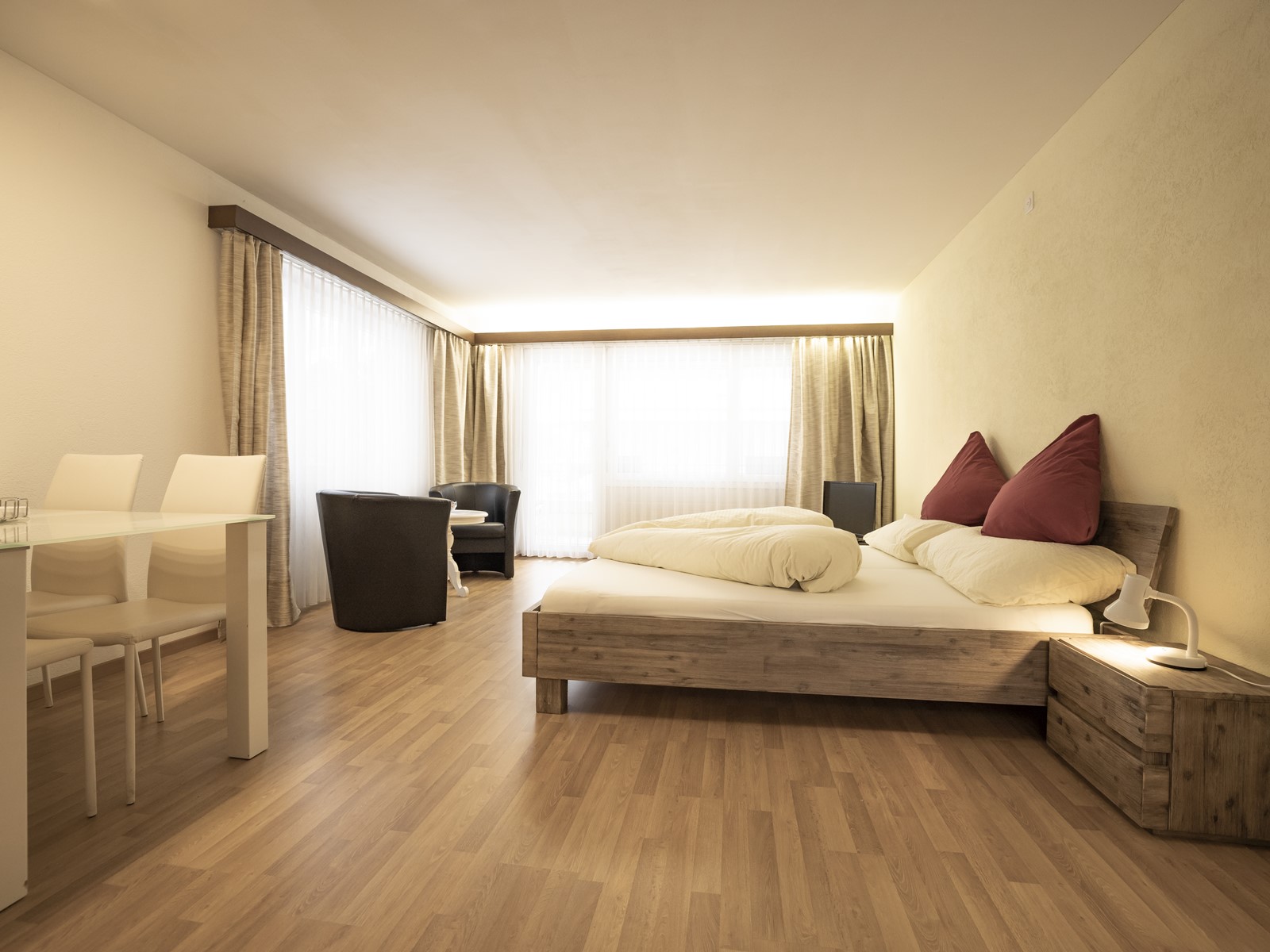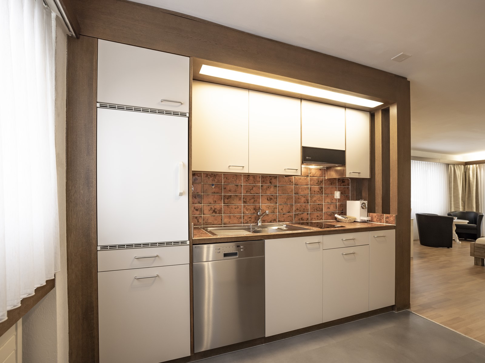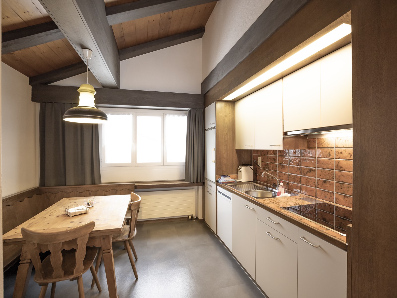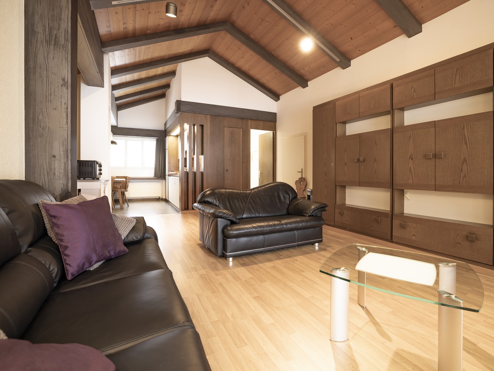 Die beiden Zwei-Zimmer-Wohnungen sind sehr geräumig und für längere Aufenthalte ausgerichtet. Neben einer Küche gibt es einen Ess- und Loungebereich. Es können maximal vier Personen übernachten. Die beiden Wohnungen haben einen Fernseher und freies Wi-Fi. Die Möblierung ist etwas für Nostalgiker, stammt sie doch mehrheitlich aus den 70er und 80er Jahren. Wir werden das Haus im Jahr 2025 komplett sanieren und dann die Möblierung den neuesten Ansprüchen anpassen. Geniessen Sie also noch etwas Nostalgie.