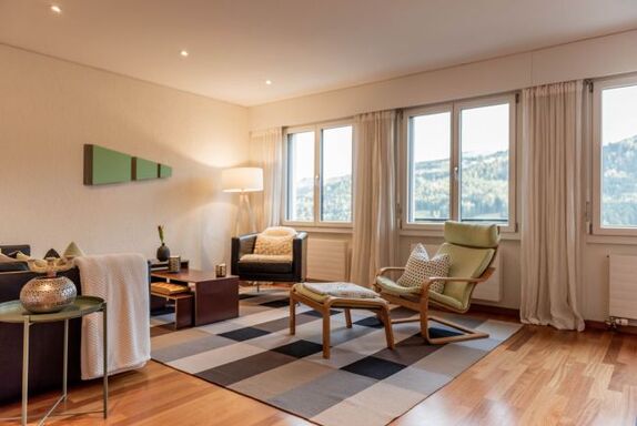 Die grosszügige 5.5-Zimmer-Wohnung liegt im Herzen von Wildhaus, nur rund 100 Meter hinter dem Hotel Sonne. Ideal für Wintersportbegeisterte: Der Skibus hält praktisch direkt vor der Haustür. Auch im Sommer ist die Wohnung ein hervorragender Ausgangspunkt für Wanderungen und Ausflüge ins Toggenburg.
