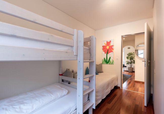 Die helle Wohnung bietet viel Platz für Familien und Gruppen. Drei Schlafzimmer, zwei Badezimmer – ausgestattet mit Waschmaschine und Tumbler – sowie ein grosszügiges Wohnzimmer stehen Ihnen zur Verfügung. Für Kinder gibt es ein separates Spielzimmer mit zahlreichen Spielsachen, Büchern, DVD-Player und TV.