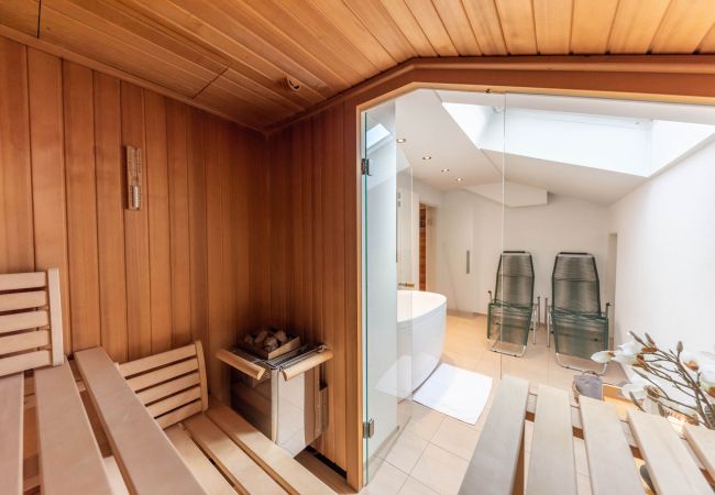 Ein besonderes Highlight ist der Wellnessbereich mit Sauna, Ruheraum und grosser Badewanne – ideal, um nach einem aktiven Tag auf der Piste zu entspannen. Abends sorgt das Cheminée im Wohnzimmer für eine gemütliche Atmosphäre.