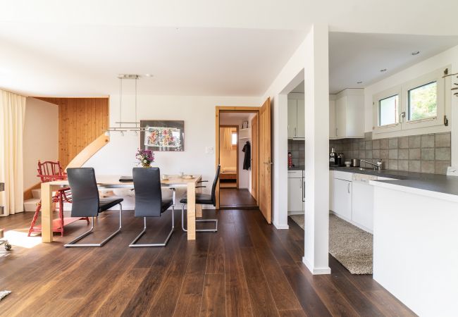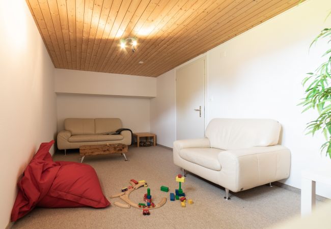 Keine direkte Zufahrt: Der Weg zum Haus führt über eine Wiese (ca. 50m), die im Sommer gemäht und im Winter geräumt ist. Den Gepäckverlad können Sie direkt am «Mittelweg» vornehmen. Parkgelegenheiten gibt es bei der Mehrzweckhalle «Chuchitobel». Detaillierte Informationen erhalten Sie vor der Anreise. Anreise im Winter bei schneebedeckter Fahrbahn: Bitte stellen Sie sicher, dass Ihr Auto über Allradantrieb oder Schneeketten verfügt. Der Weg zum Objekt ist relativ steil. Fragen Sie bei der Schlüsselübergabe nach den Verhältnissen. Obwohl die Strasse regelmässig geräumt wird, kann die Zufahrt bei heftigem Schneefall nicht gewährleistet werden. Sollte dies der Fall sein, können Sie den Gepäckverlad am Dorfplatz vornehmen und gelangen über den» Mittelweg» zum Haus (ca. 5 Minuten Fussweg).