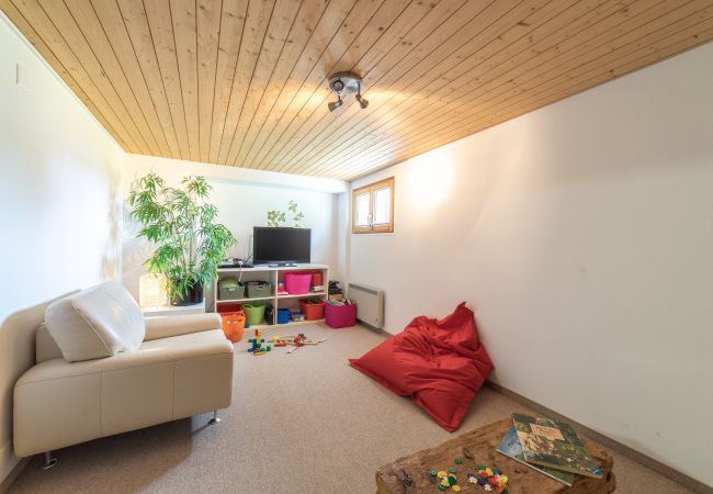 Das 5-Zimmer Ferienhaus liegt im Wildhauser Ortsteil Steinrüti am «Mittelweg» und befindet sich in der Nähe vom Spar-Supermarktes (ca. 400m). Es befindet sich in Hanglage und bietet eine wunderbare Aussicht auf die Churfirsten. Im Sommer lädt der Garten inklusive Feuerstelle zum Grillieren ein. Im Winter sind Sie in ca. 5 Minuten im Dorfzentrum (Dorfplatz), von wo Sie bequem den Skibus zur Talstation der Bergbahnen nehmen können. Im Kellergeschoss befindet sich der Wasch- und Abstellraum, inklusive Waschmaschine, Tumbler und separatem WC. Das Doppelschlafzimmer, welches sich vorher ebenfalls im Kellergeschoss befand, wurde ins Dachgeschoss umgezogen. Der Raum im Kellergeschoss wurde in ein cooles Spielzimmer mit vielen Spielsachen und Unterhaltungselektronik umfunktioniert. Das Ferienhaus wurde im Jahr 2010 grosszügig renoviert. Im Obergeschoss befindet sich der restliche Wohnbereich, inklusive Kinderschlafzimmer. Das Häuschen mit Chalet-Charakter eignet sich ideal für Familien, egal ob im Winter oder im Sommer.