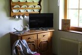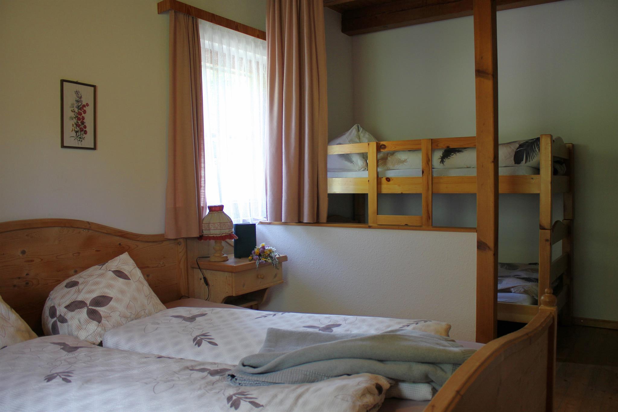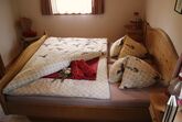 Appartement F ist 45 m2 groß und befindet sich im obersten Stockwerk des Ferienhauses. Die Dachgeschoß Wohnung verfügt über ein großes Bad mit Dusche und WC, Küchenzeile. Wohn-Essraum mit Eckbank und Kommode, sowie einem Schlafraum mit Doppelbett und Stockbett. Der Balkon Richtung mit Blick auf die umliegenden Wiesen und den Waldrand garantieren einen sonnigen und erholsamen Urlaub.