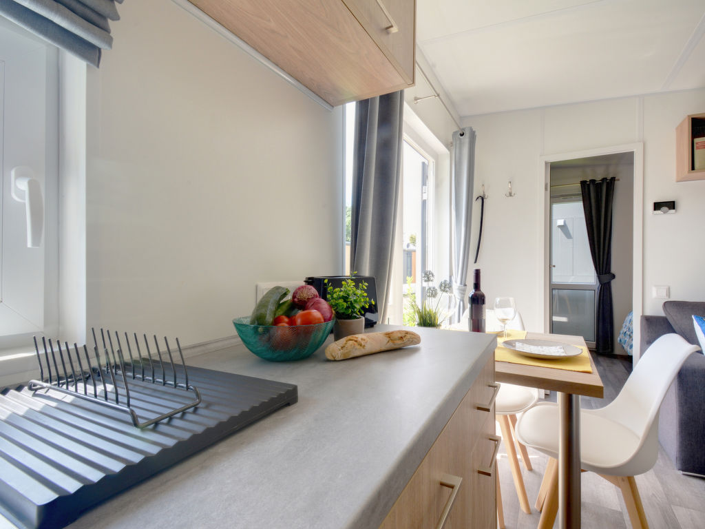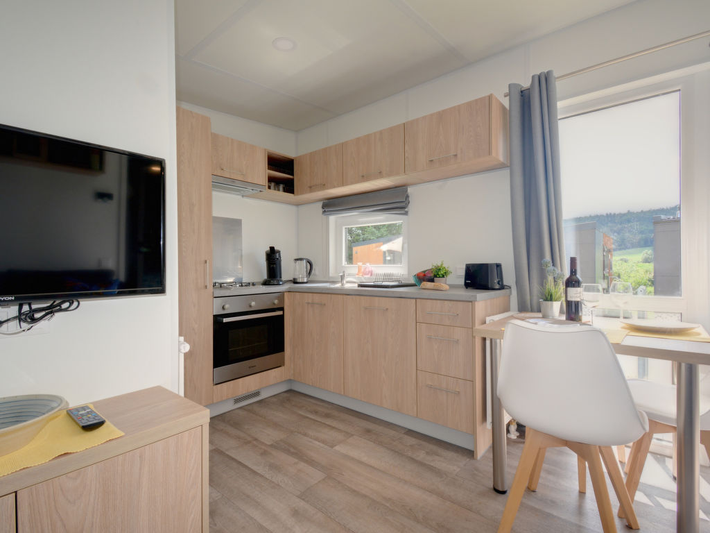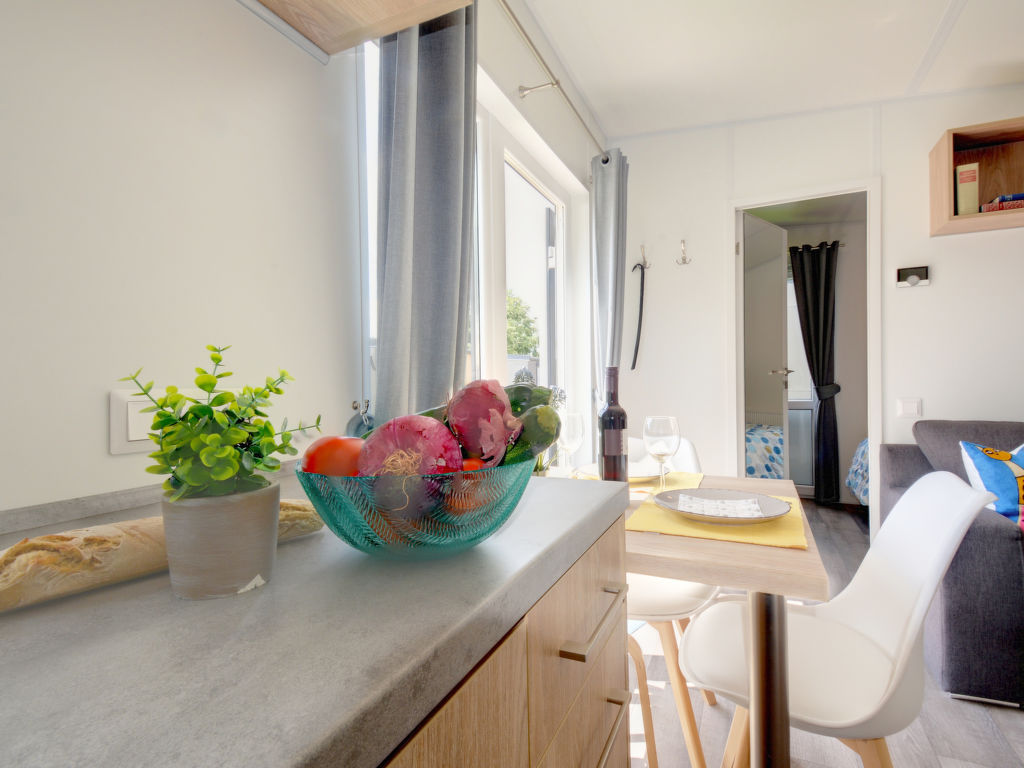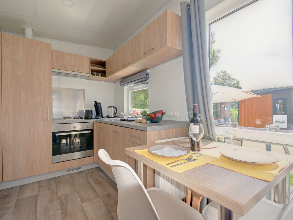 Tiny Haus Selma, 2-Zimmer-Mobilheim 25 m2. Objekt geeignet für 2 Erwachsene + 2 Kinder. Gemütlich eingerichtet: Wohn-/Schlafzimmer mit 1 Diwanbett (120 cm, Länge 170 cm), Sat-TV. 1 Zimmer mit 1 franz. Bett (140 cm, Länge 200 cm). Offene Küche (Backofen, Gasherd, 2 Flammen, Wasserkocher, elektrische Kaffeemaschine). Dusche/WC. G-Heizung. Kleine Terrasse. Terrassenmöbel. Parkplatz in 50 m. Bitte beachten: Nichtraucher-Haus. Maximal 1 Haustier/Hund erlaubt.