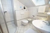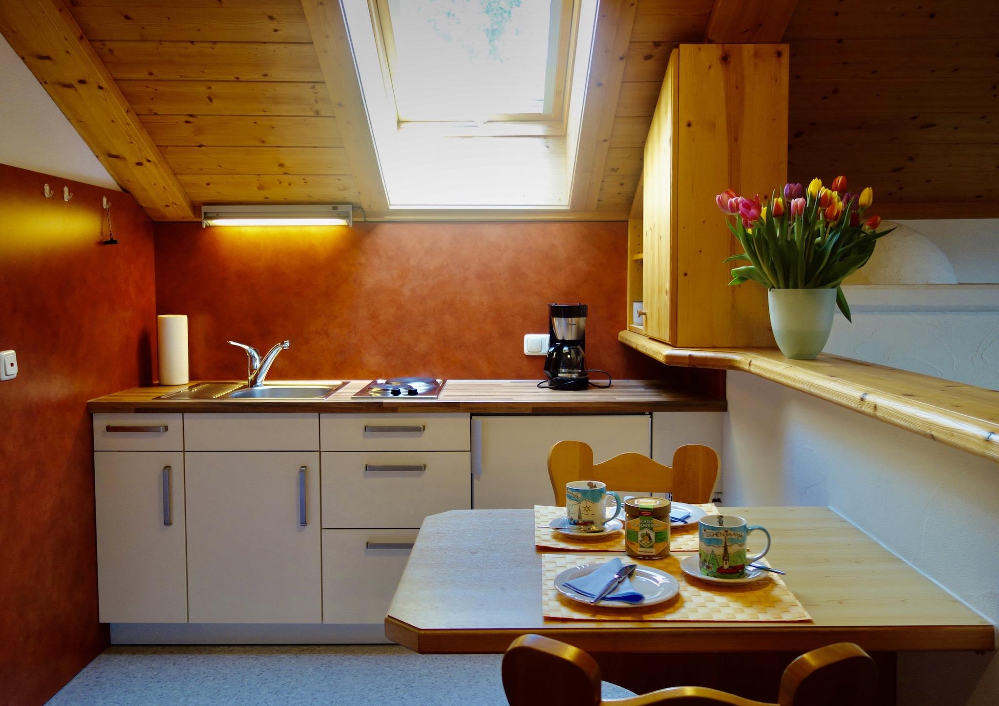 Wohnung 5, ist eine kleine feine FeWo mit einem Schrankbett (gute Matrazen),Sitzgruppe, TV,Küche und Eßplatz,Duschbad mit WC.
