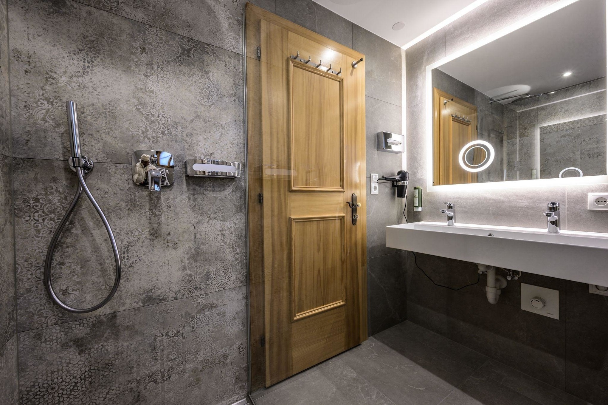 Drei moderne Badezimmer mit Dusche, WC und Waschbecken runden das ganze ab. Ein Gäste-WC ist ebenfalls vorhanden und vermeidet Warteschlangen am Morgen.
