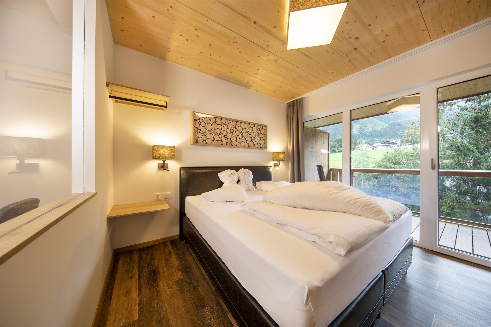 Die im Frühjahr 2019 komplett neu ausgestattete, allergikergerechte Suite (bis zu 6 Personen) verfügt über zwei getrennte Schlafzimmer sowie einen eigenen Wohnraum mit Ausziehcouch und bietet viel Platz im Urlaub. Die natürlichen Materialien im Alpine-Lifestyle-Design verbreiten eine angenehme Wohnatmosphäre und sorgen mit modernster Ausstattung für höchsten Wohnkomfort. Vom eigenen Balkon aus genießen Sie den Panoramablick auf die Krimmler Berge.