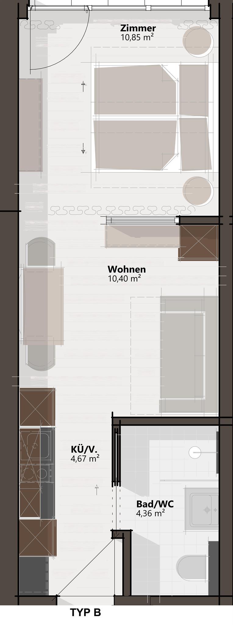 • Wohnraum mit Ausziehcouch