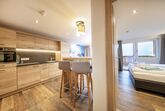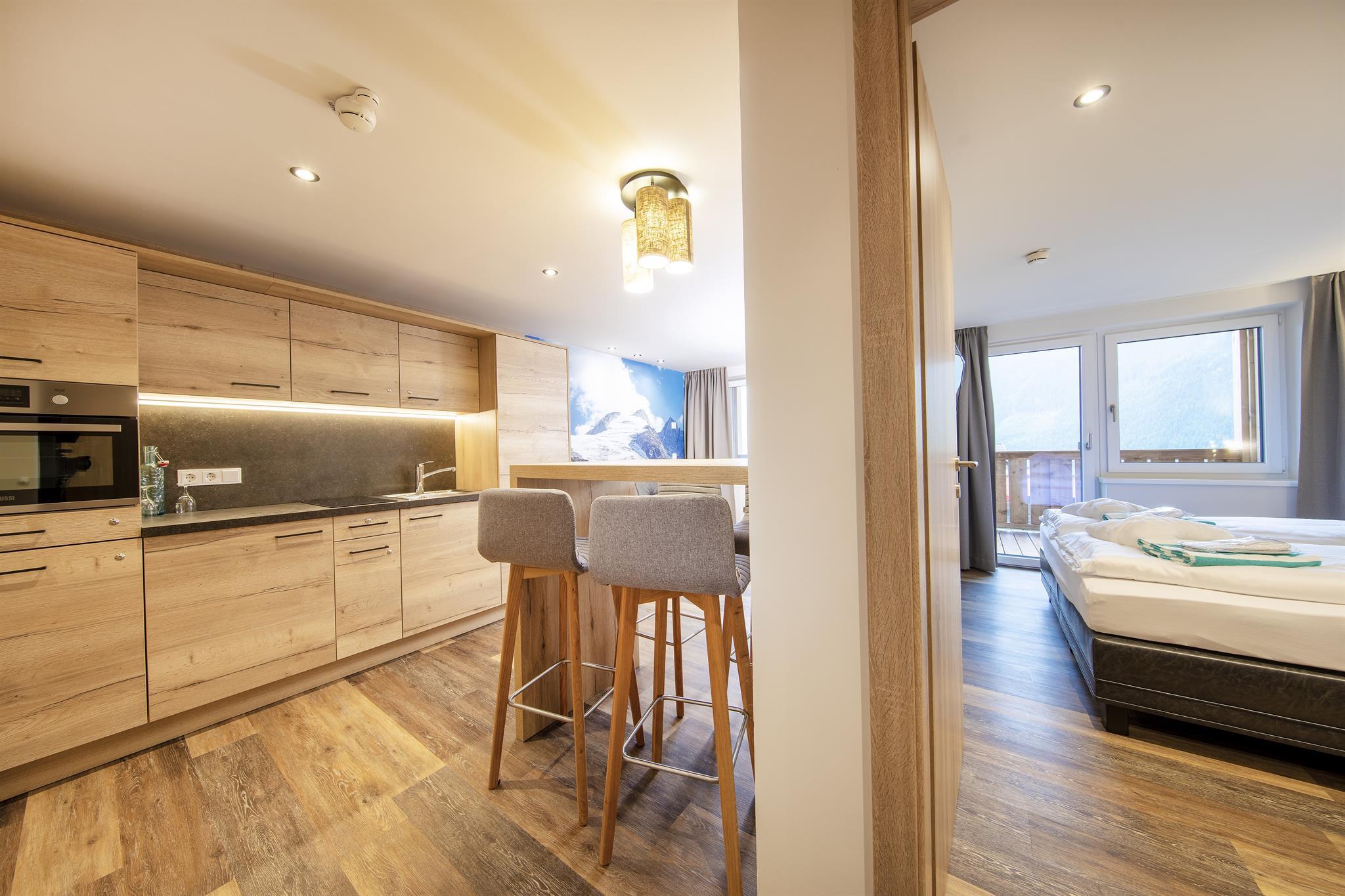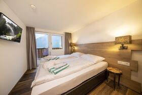 Die im Frühjahr 2019 komplett renovierten Hotelappartements (für 1-4 Pers.) im alpin-modernen Design wurden mit natürlichen Materialien ausgestattet. Die allergikergerechte Ausstattung sorgt für Wohnkomfort mit höchsten Ansprüchen. Dieses Appartement verfügt über ein getr. Schlafzimmer, einem Wohnraum mit Ausziehcouch und getr. WC und Badezimmer. Vom eigenen Balkon genießen Sie den Panoramablick auf die Berge.