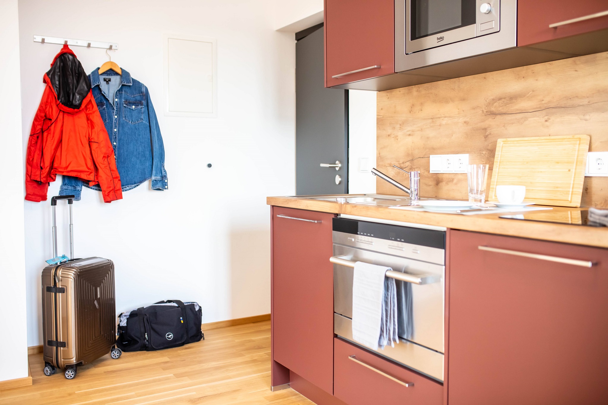 Im Grundpreis enthalten sind die Nutzung von: Handtücher, Bettwäsche, WLAN, Parkplatz, Waschmaschine, Trockner, Terasse, Lounge, Co-Working Räume.