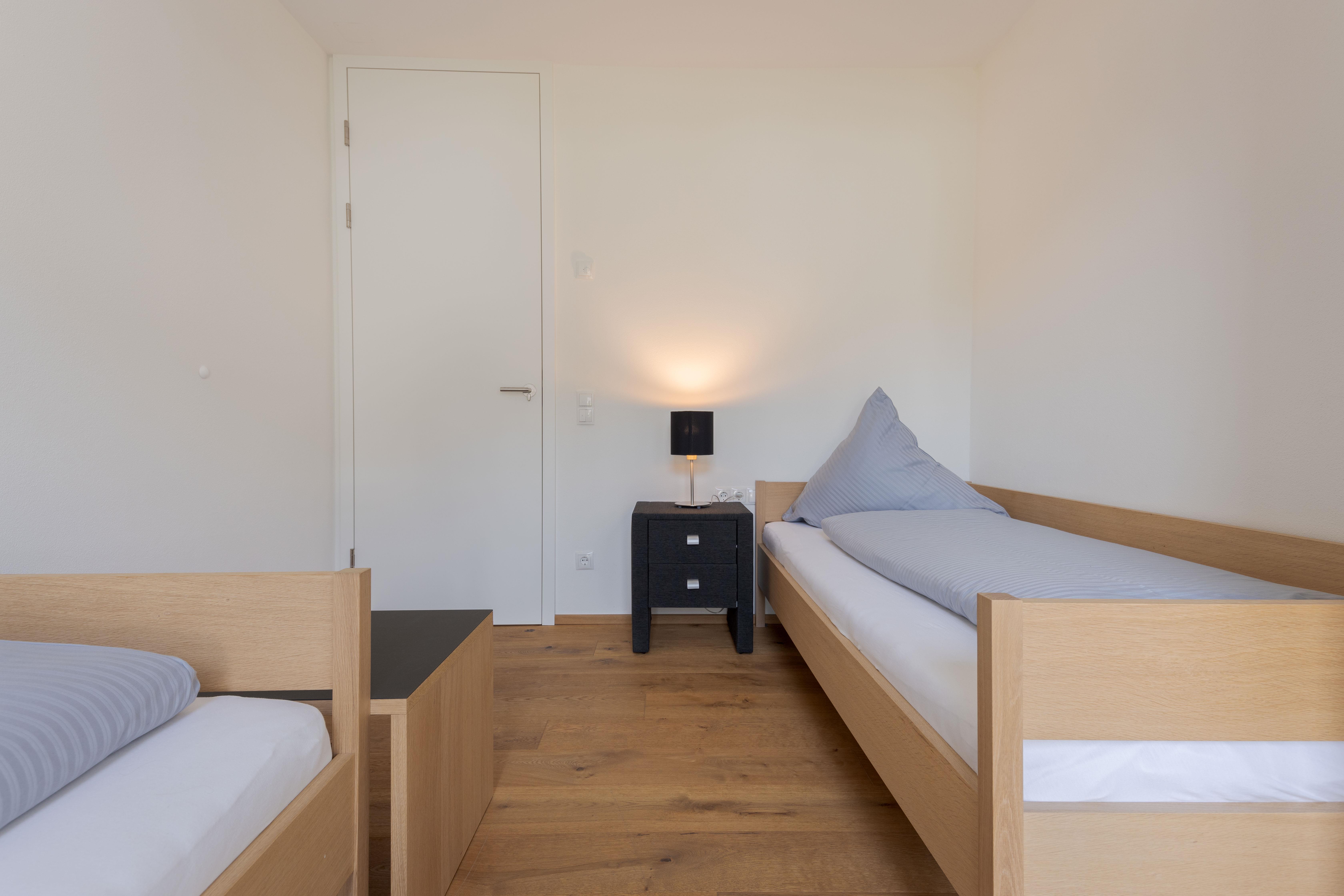 1 Doppelschlafzimmer,1 Schlafzimmer mit 2 Einzelbetten und Schlafsofa im Wohnzimmer