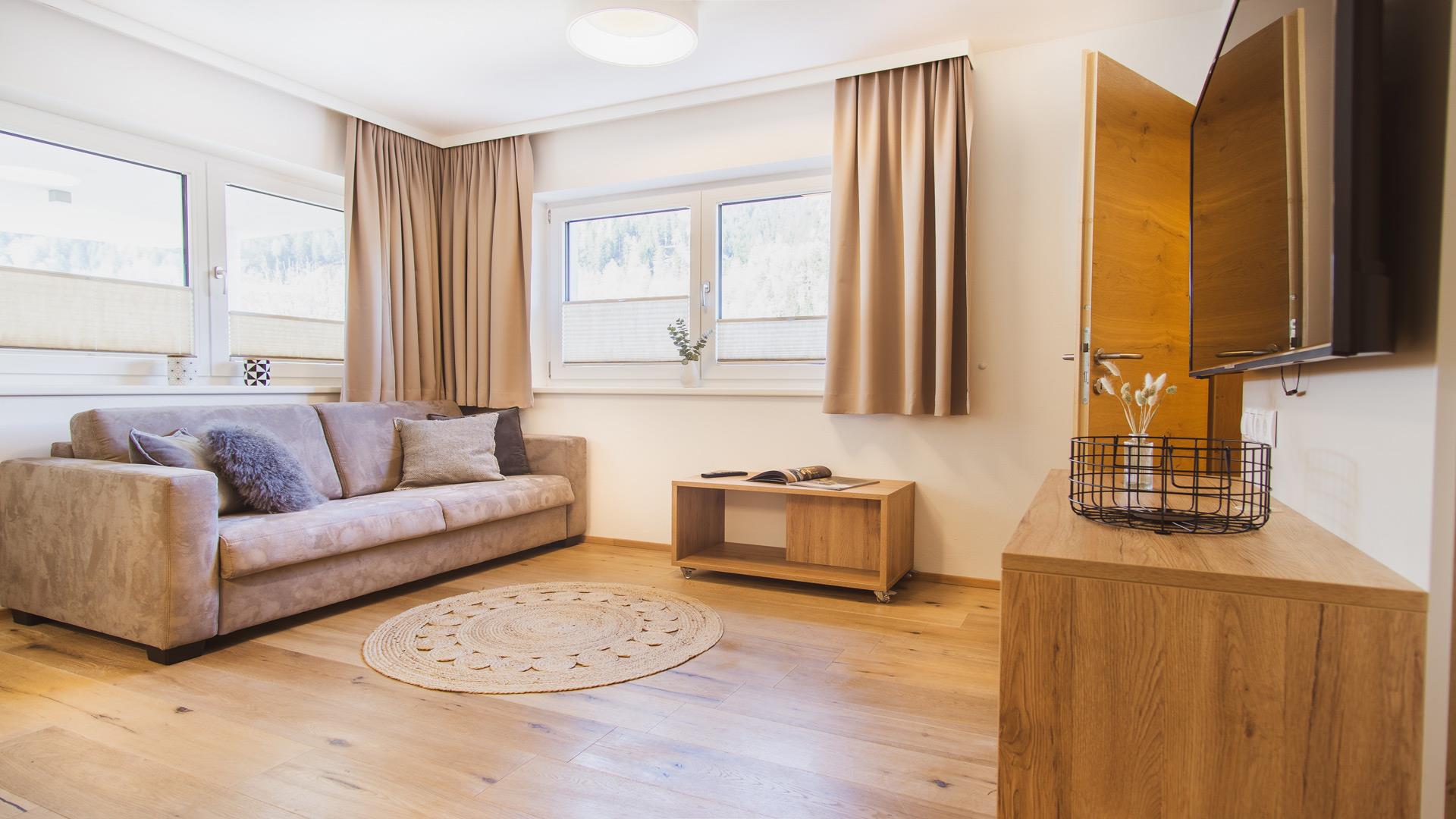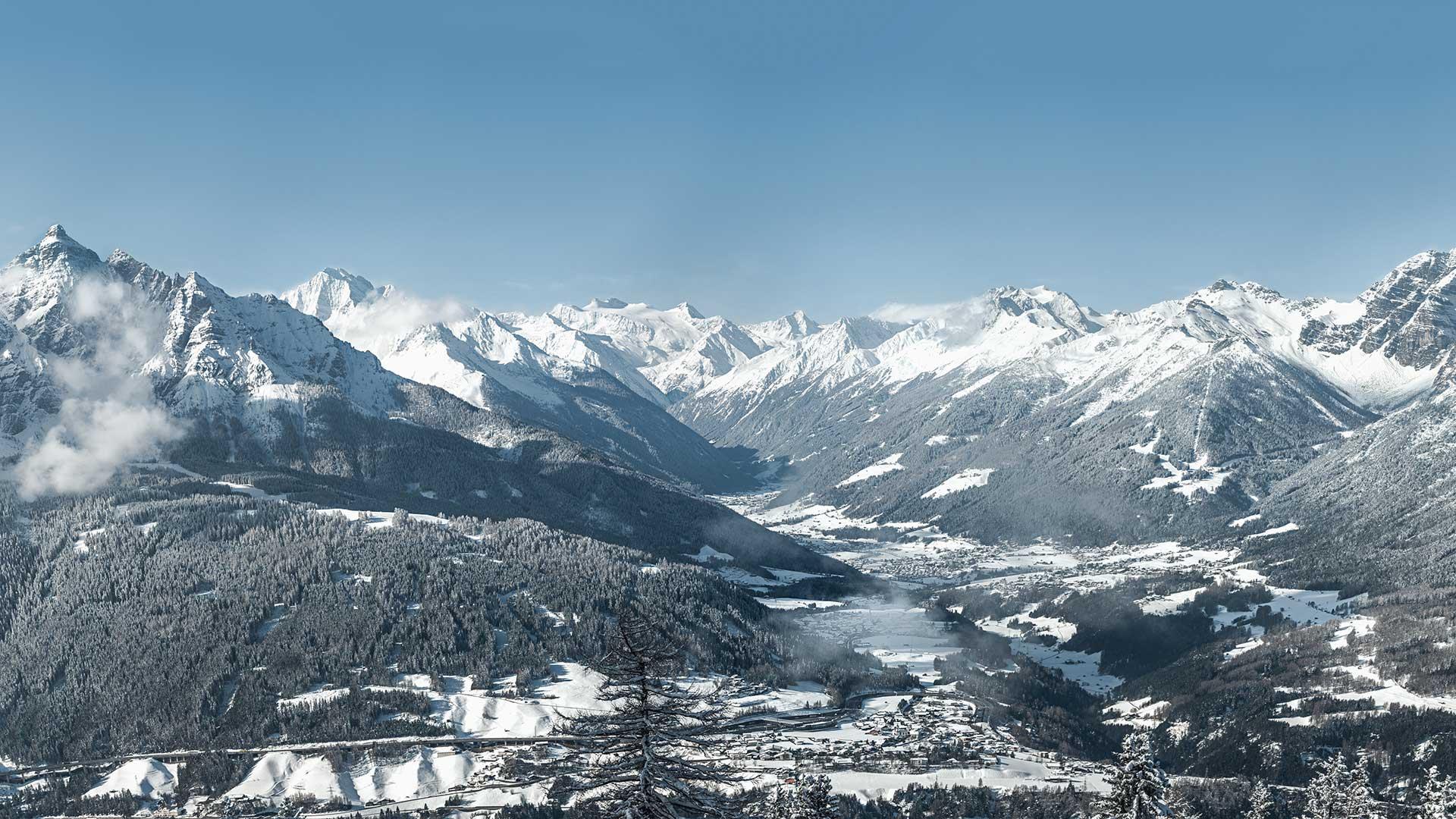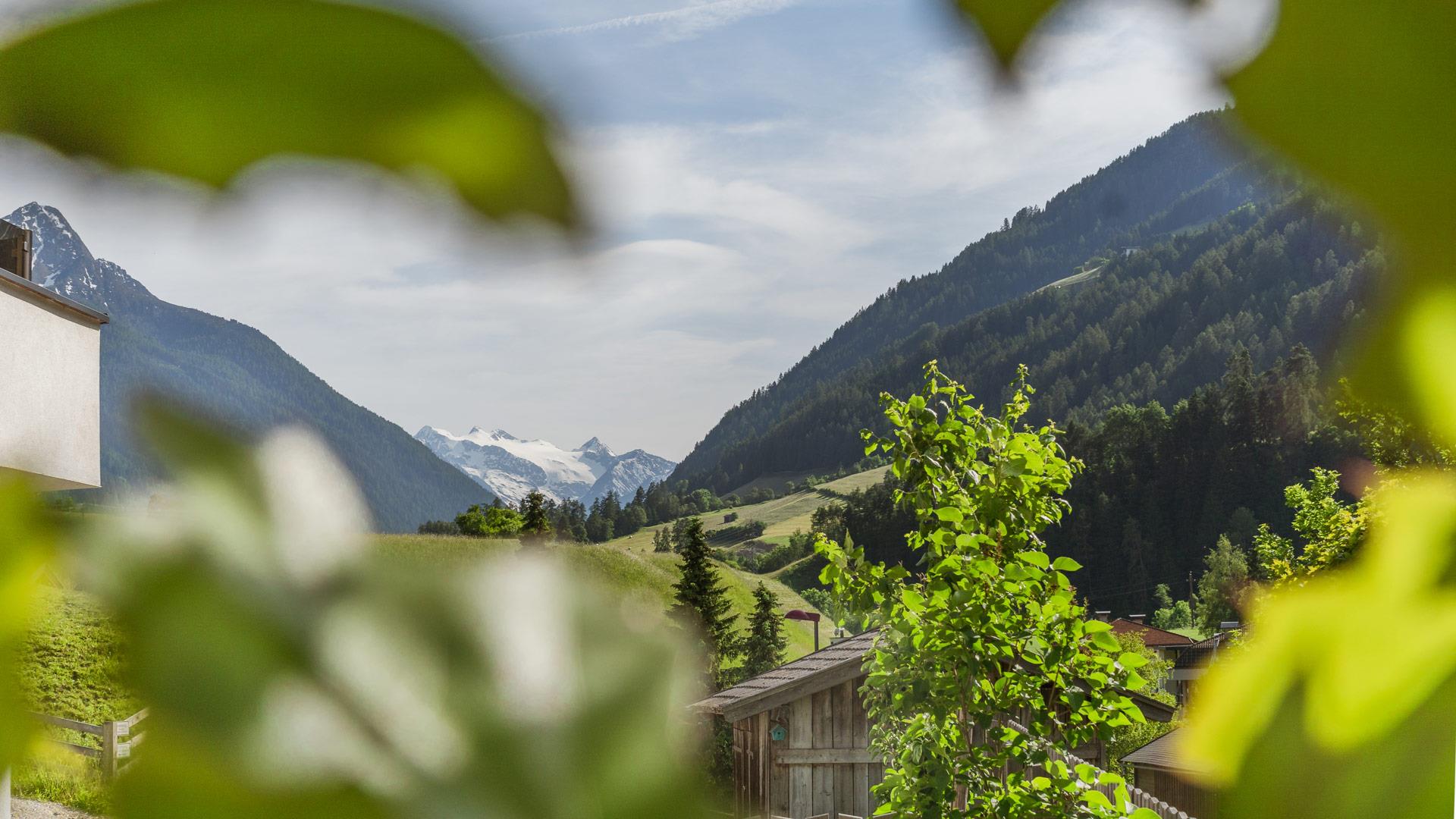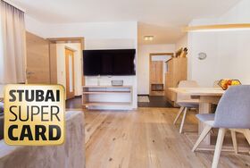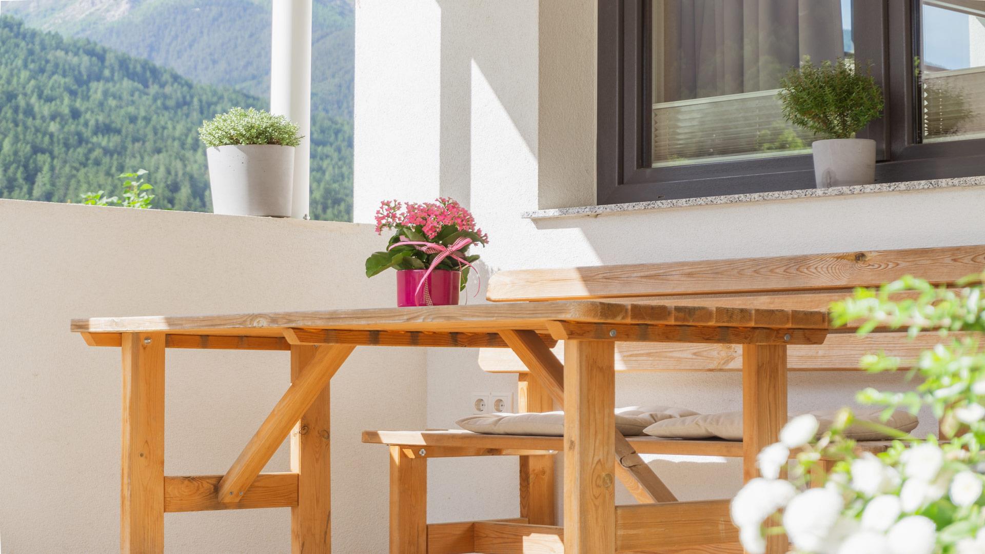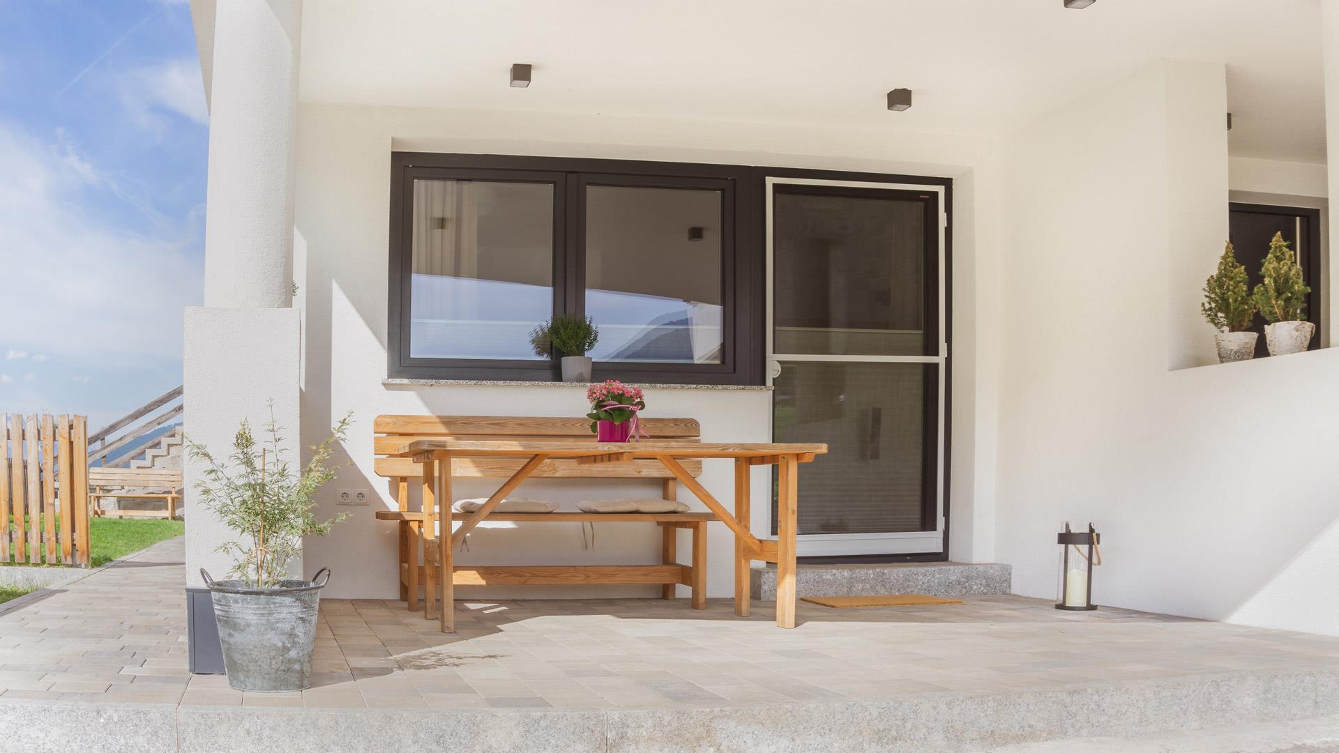 Die möbilierte Terrasse mit direktem Ausblick auf die Stubaier Bergwelt, lädt zum gemütlichen Frühstück, oder entspannten Glas Wein am Abend ein.